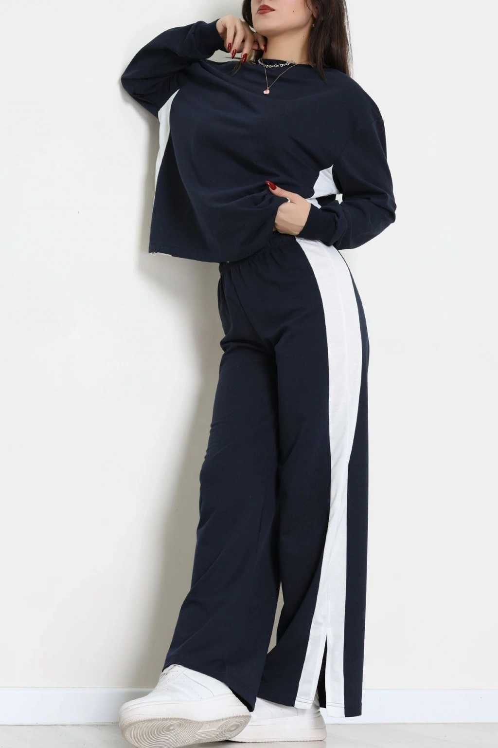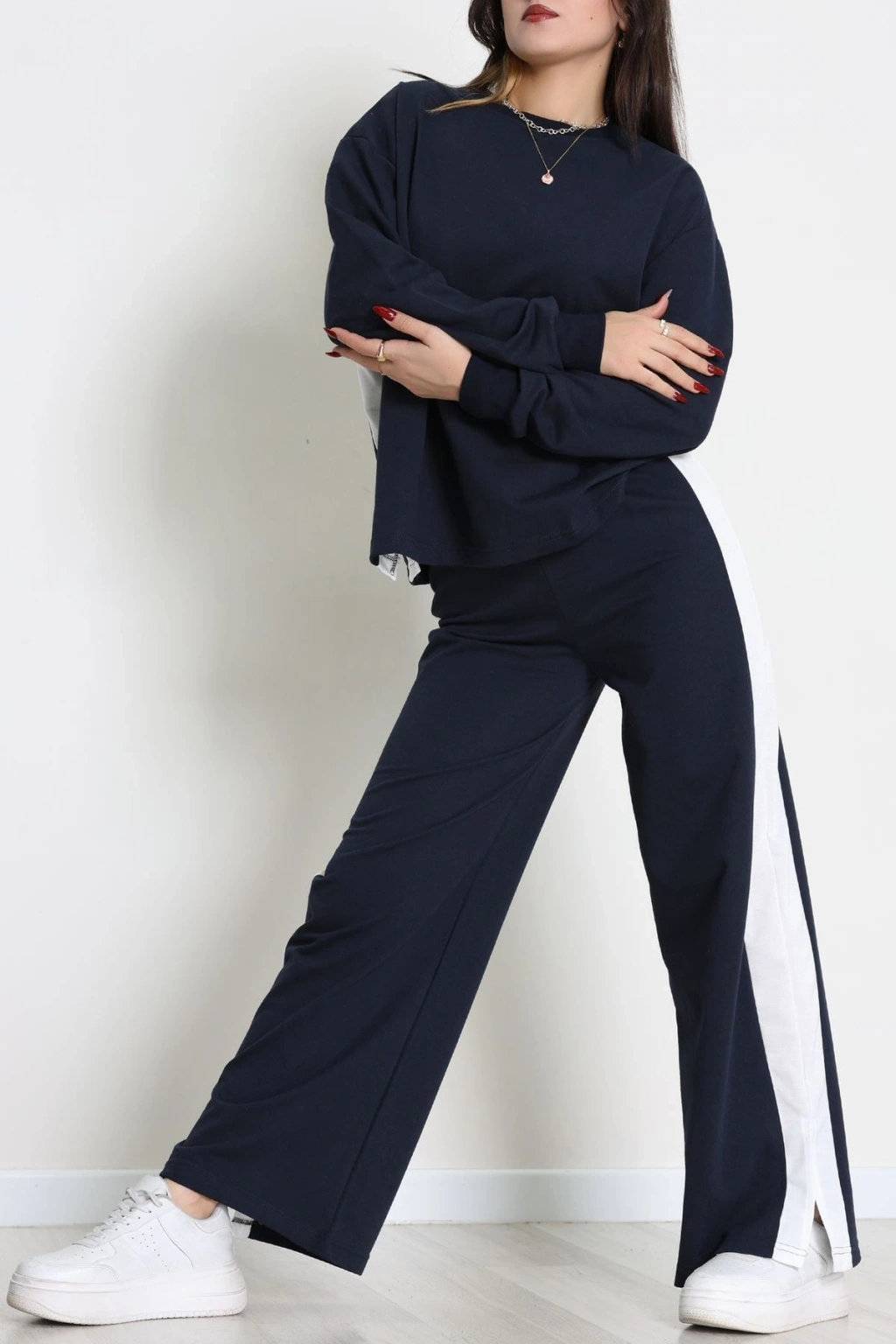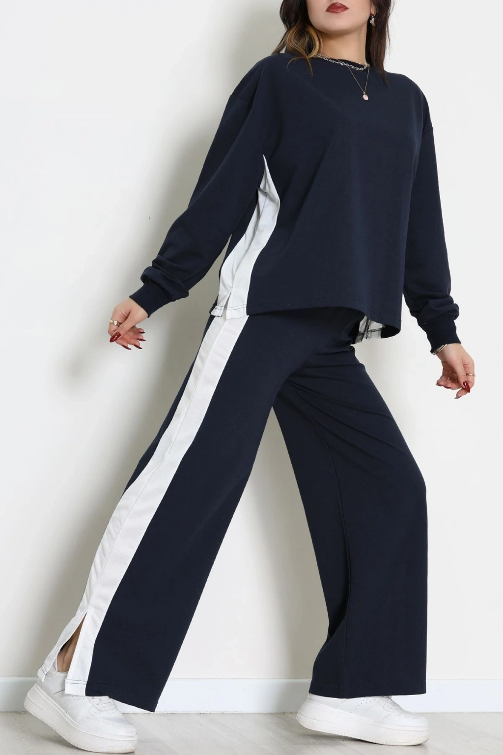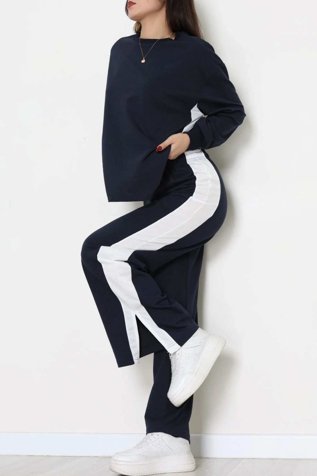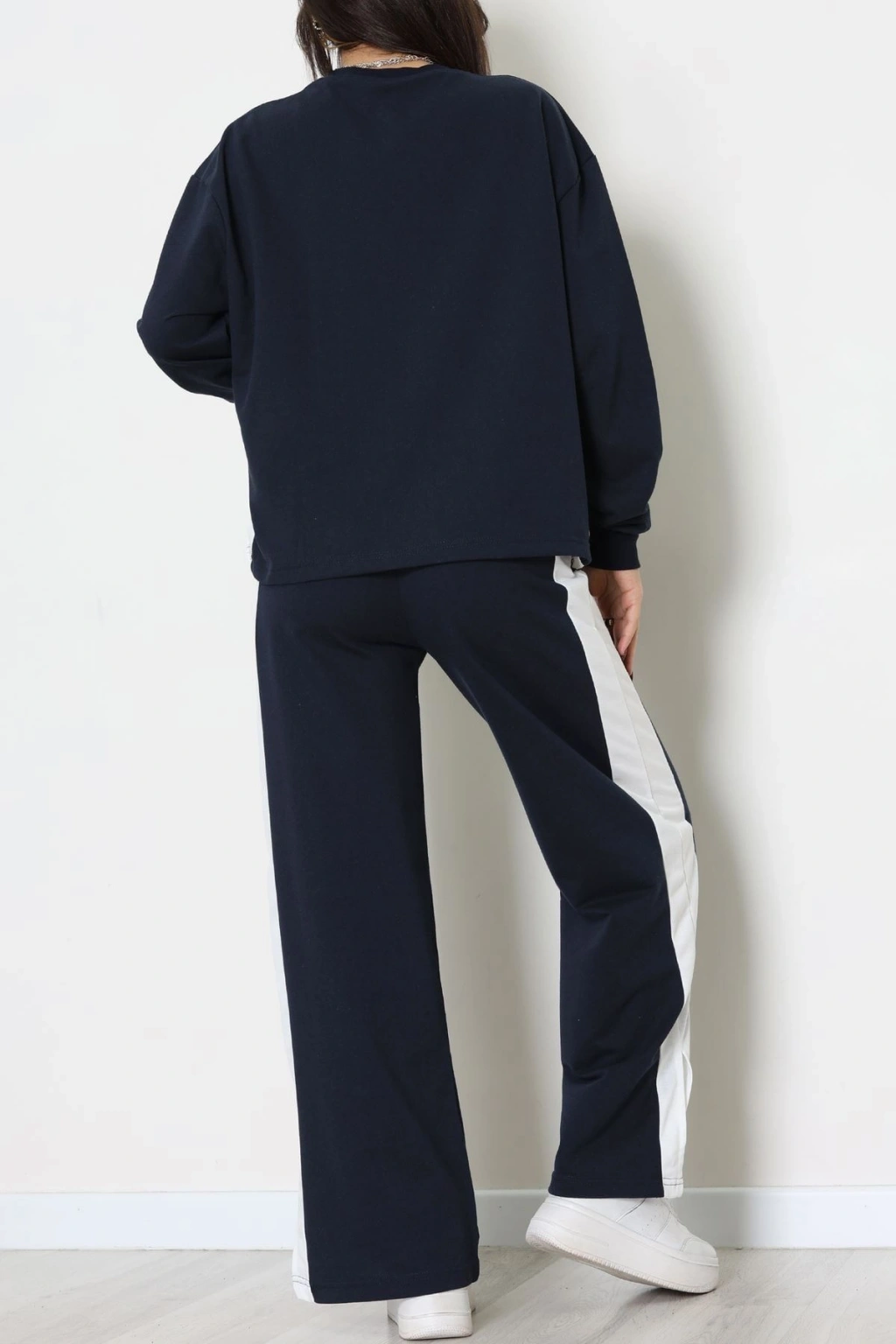 Şeritli 2 İplik Eşofman Takımı Lacivertbeyaz - 52180.1857.