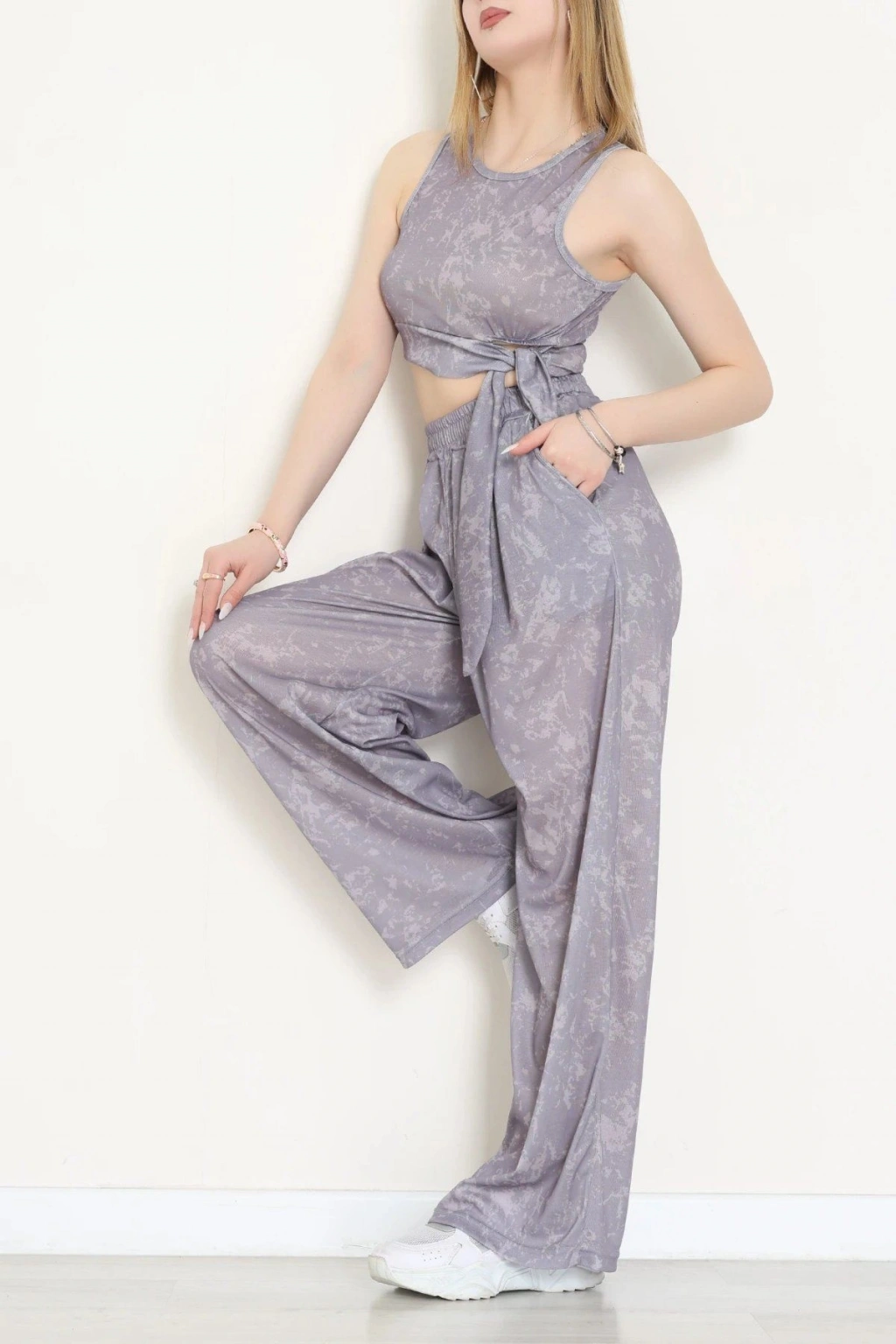 # Desenli Gri Süprem İkili Takım ## Tasarım Özellikleri ve Konfor Hafif yapısı ve desenli dokusuyla öne çıkan **süprem ikili takım** modelimiz, günlük kullanımda yüksek hareket özgürlüğü ve ferahlık vaat ediyor. Gri tonlarındaki zarif desenleri ile bu parça, cilde nefes aldıran yumuşak dokulu süprem kumaştan üretilmiştir. Üst parçanın kolsuz kesimi sıcak havalarda vücut ısısını dengede tutarak konforlu bir kullanım deneyimi sunar. **Sıfır kol takım** arayanlar için modern bir duruş sergileyen bu tasarım, gövdeyi sıkmayan yapısıyla rahat bir form kazanır. Modelimiz, bel kısmındaki kuşak detayıyla estetik bir vurgu yaparken alt parçadaki dökümlü kesim silüeti tamamlar. Alt kısımdaki **geniş paça pantolon** yapısı, adımlara eşlik eden akışkan bir görünüm kazandırır. Kumaşın kaliteli dokusu sayesinde yıpranmalara karşı dayanıklı olan bu **gri desenli takım**, her kullanımda formunu korur. Belde yer alan düğüm detayı ve yan cepler, bu tasarımın işlevsel yönünü ön plana çıkarır. Kaliteli dikiş işçiliğiyle hazırlanan bu set, fiyat performans açısından avantajlı ve ekonomik seçenek arasındadır. Satın almak için sepete ekleyin.