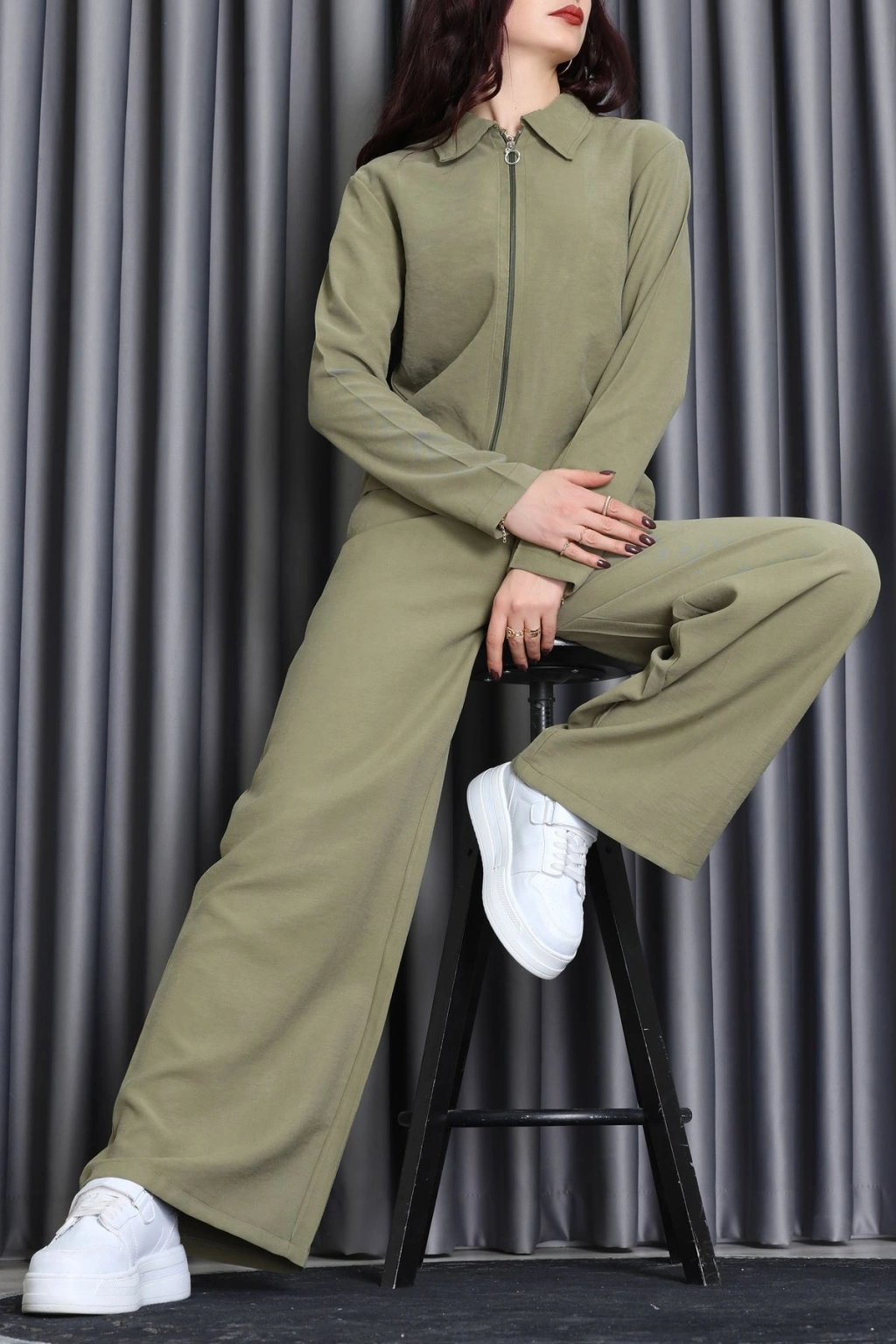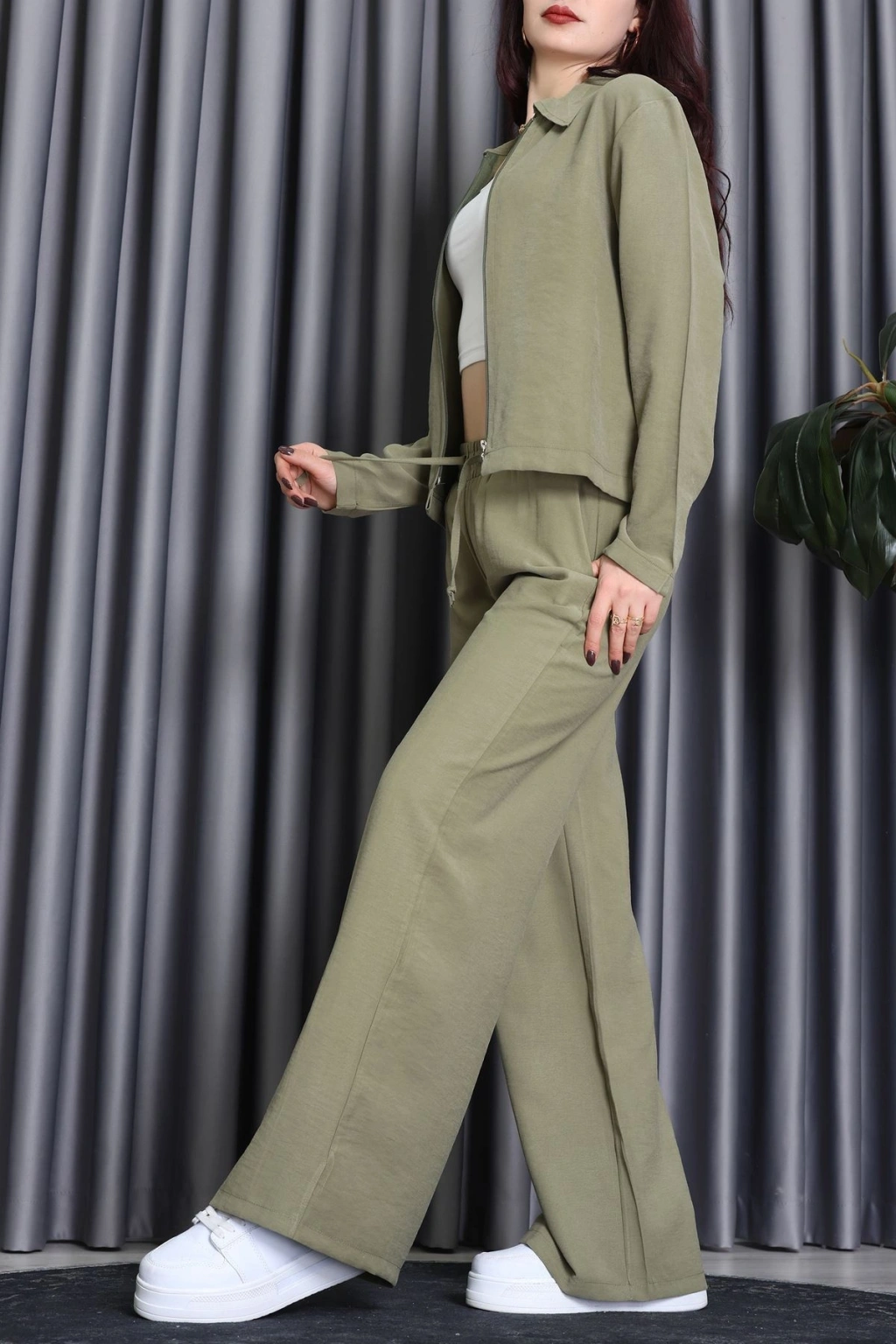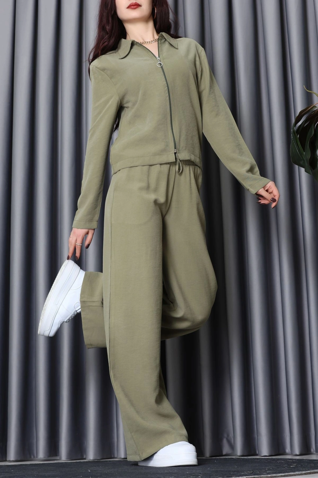 Soft Touch Dokuma Modal Fermuarlı İkili Takım Haki - 55012.1837.