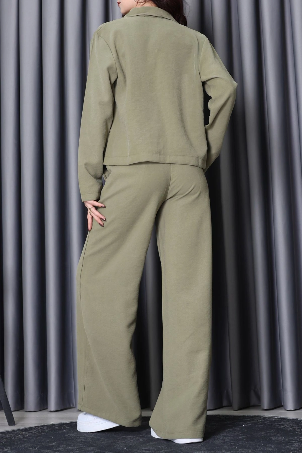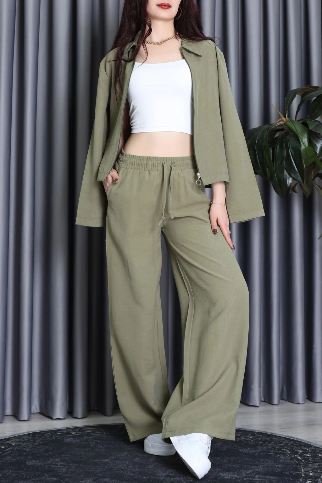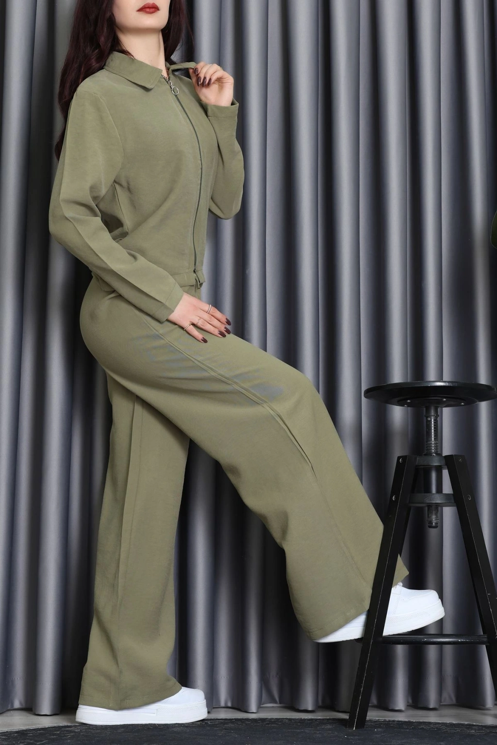 Soft Touch Dokuma Modal Fermuarlı İkili Takım Haki - 55012.1837.