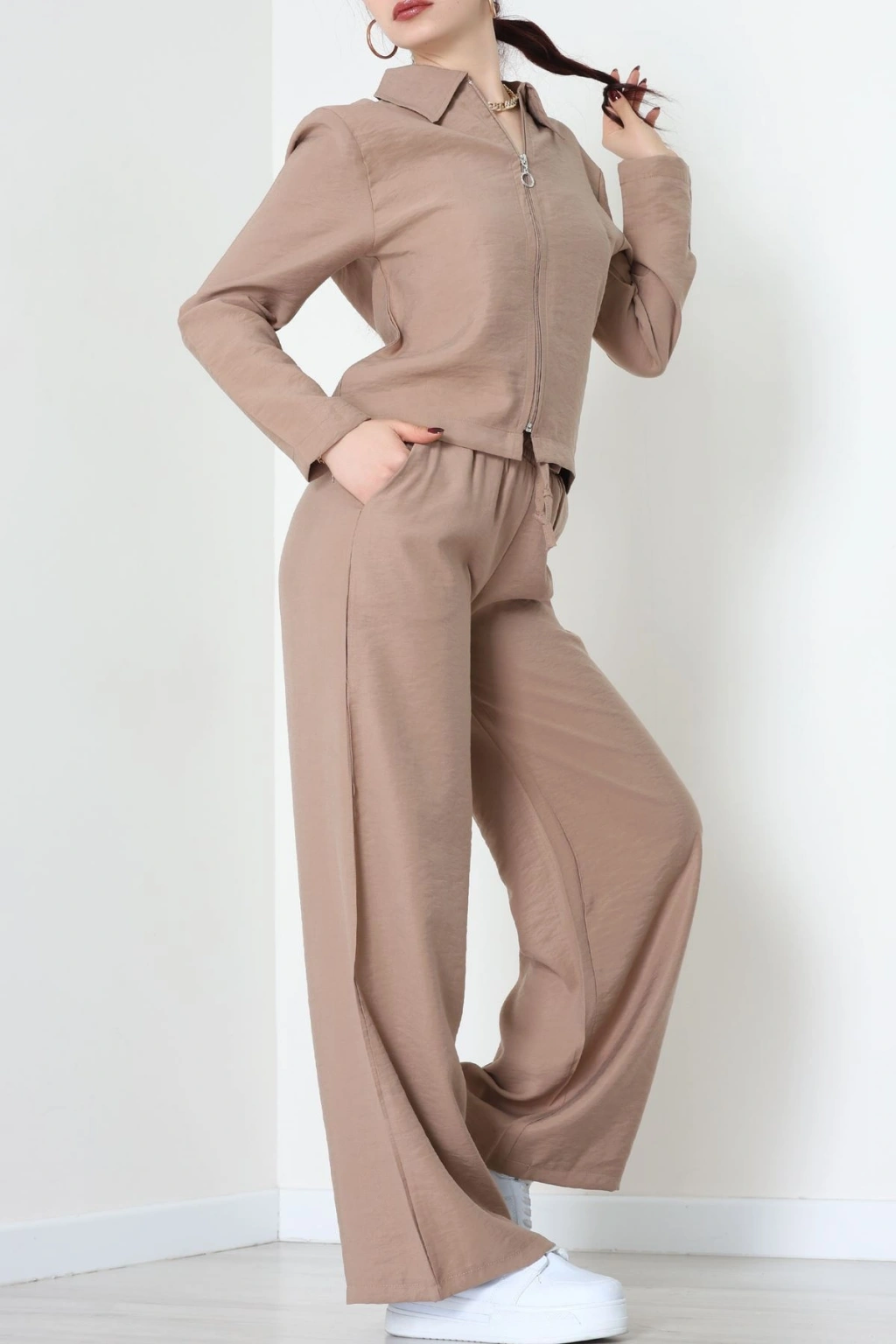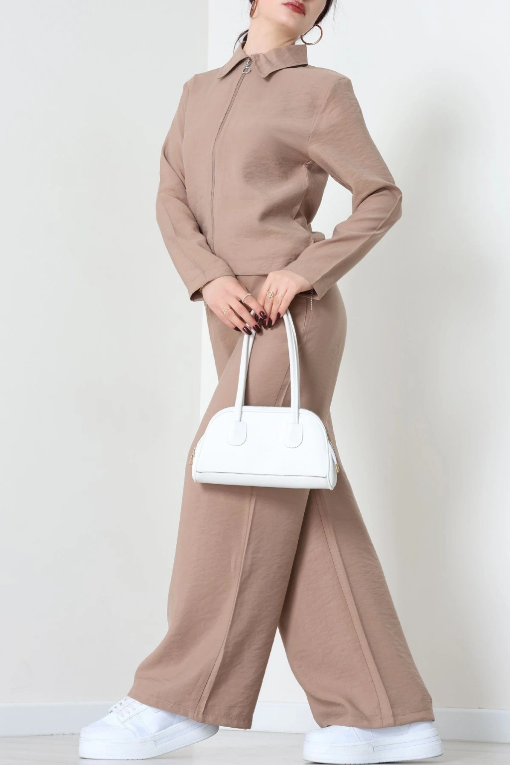 Soft Touch Dokuma Modal Fermuarlı İkili Takım Sütlükahve - 55012.1837.