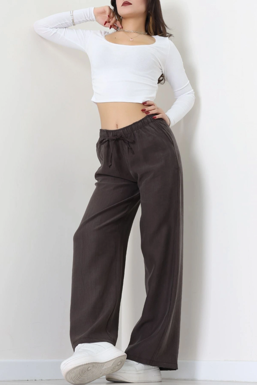 Dabıl Kumaş Beli Bağcıklı Pantolon Kahve - 51615.683.