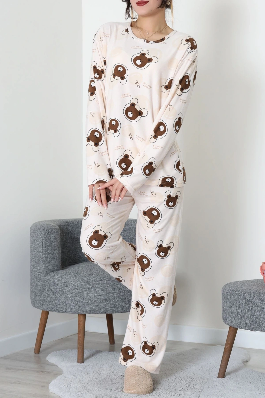 Süet Alt Üst Aynı Pijama Takımı Bejkahve1 - 118.1287.