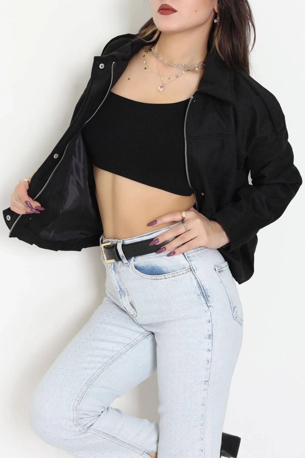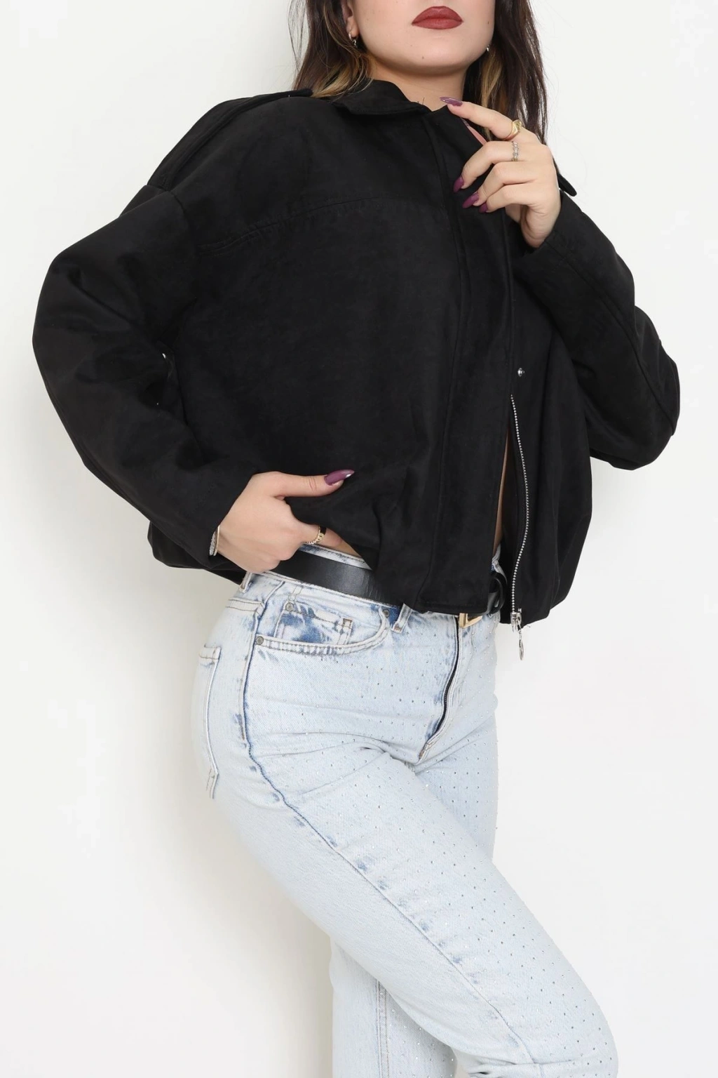 Fermuarlı Kürklü Ceket Siyah - 8780.179.