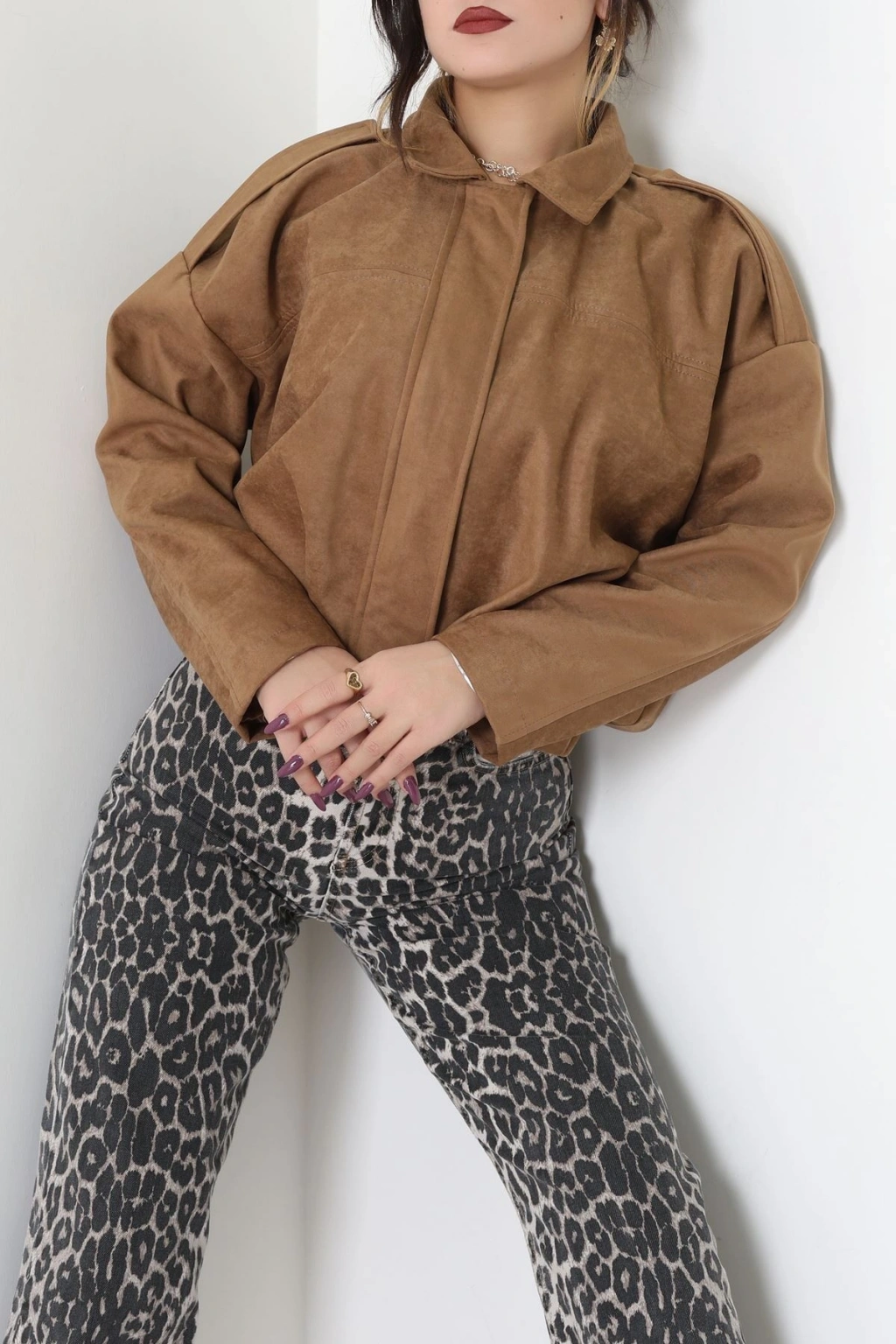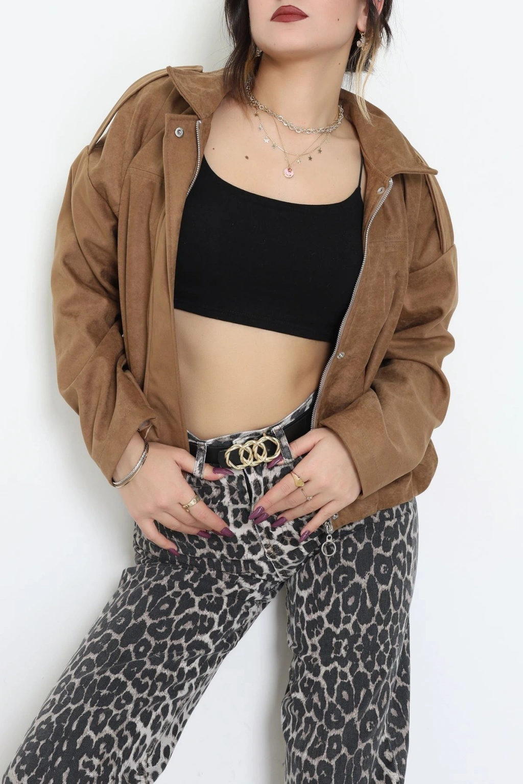 Süet Bomber Ceket Vizon - 8777.179.