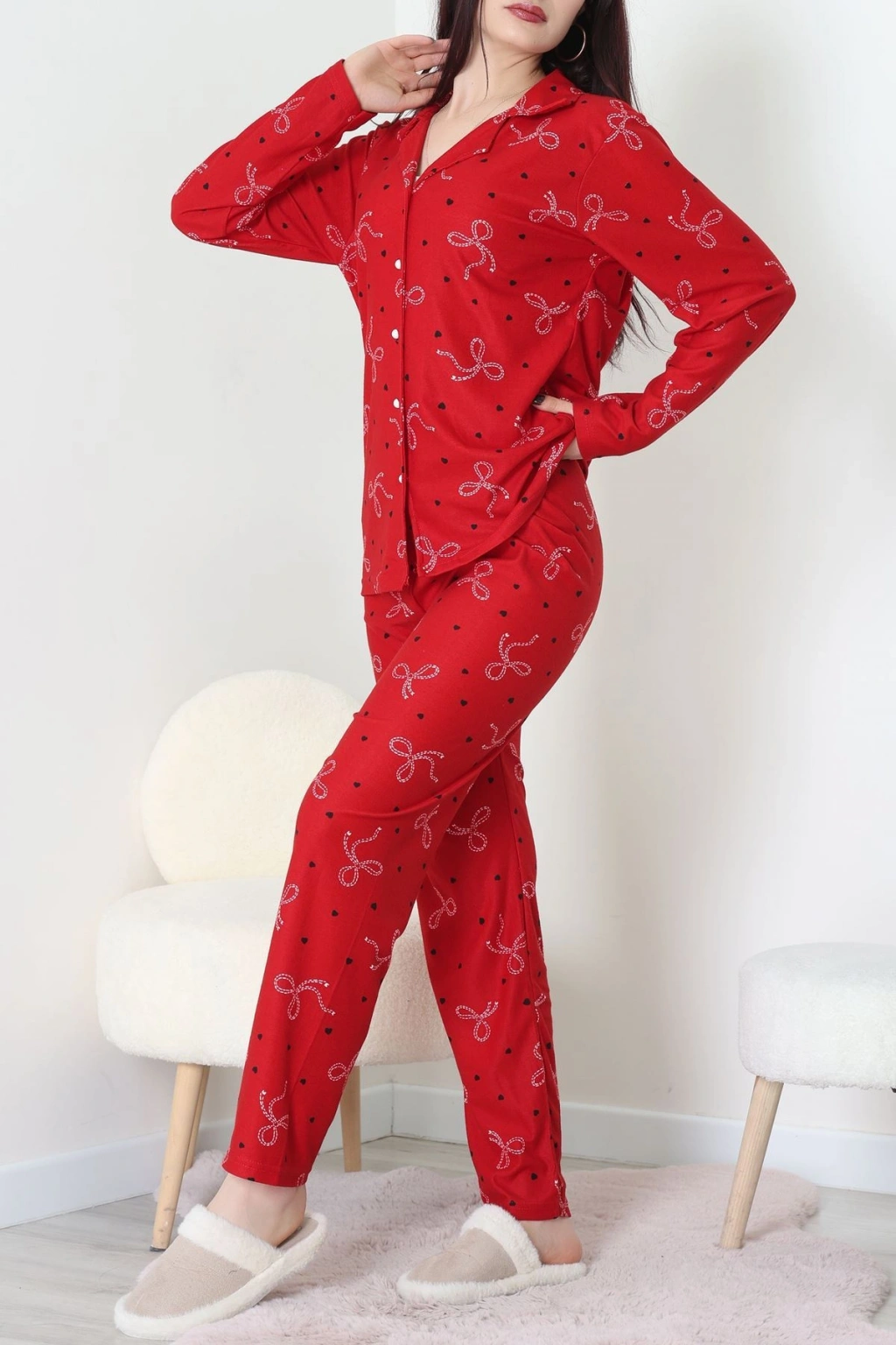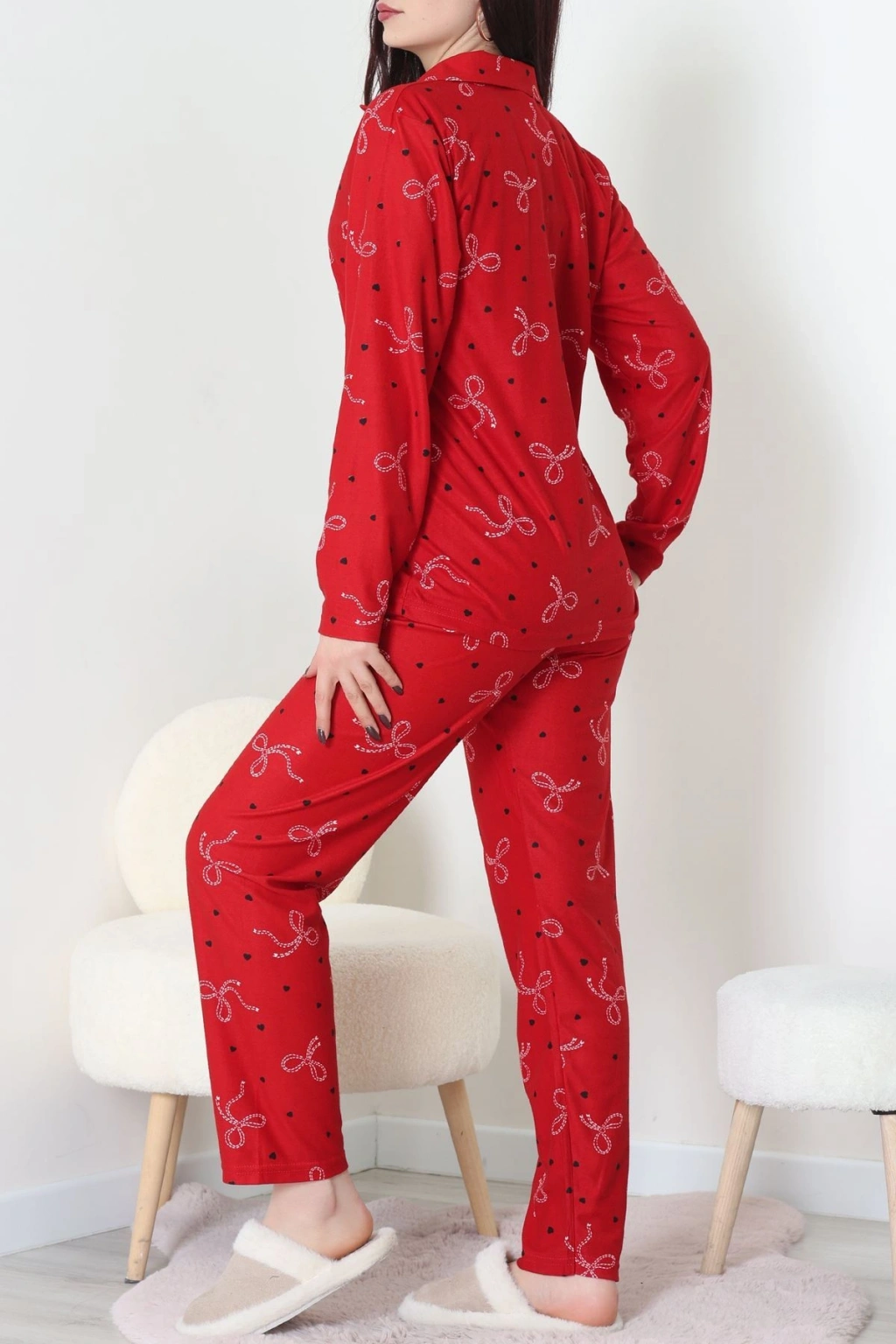 Süet Düğmeli Pijama Takımı Kırmızı - 31876.1049.