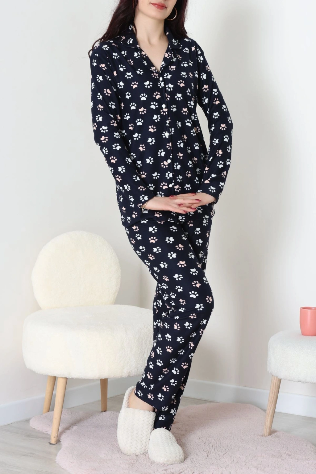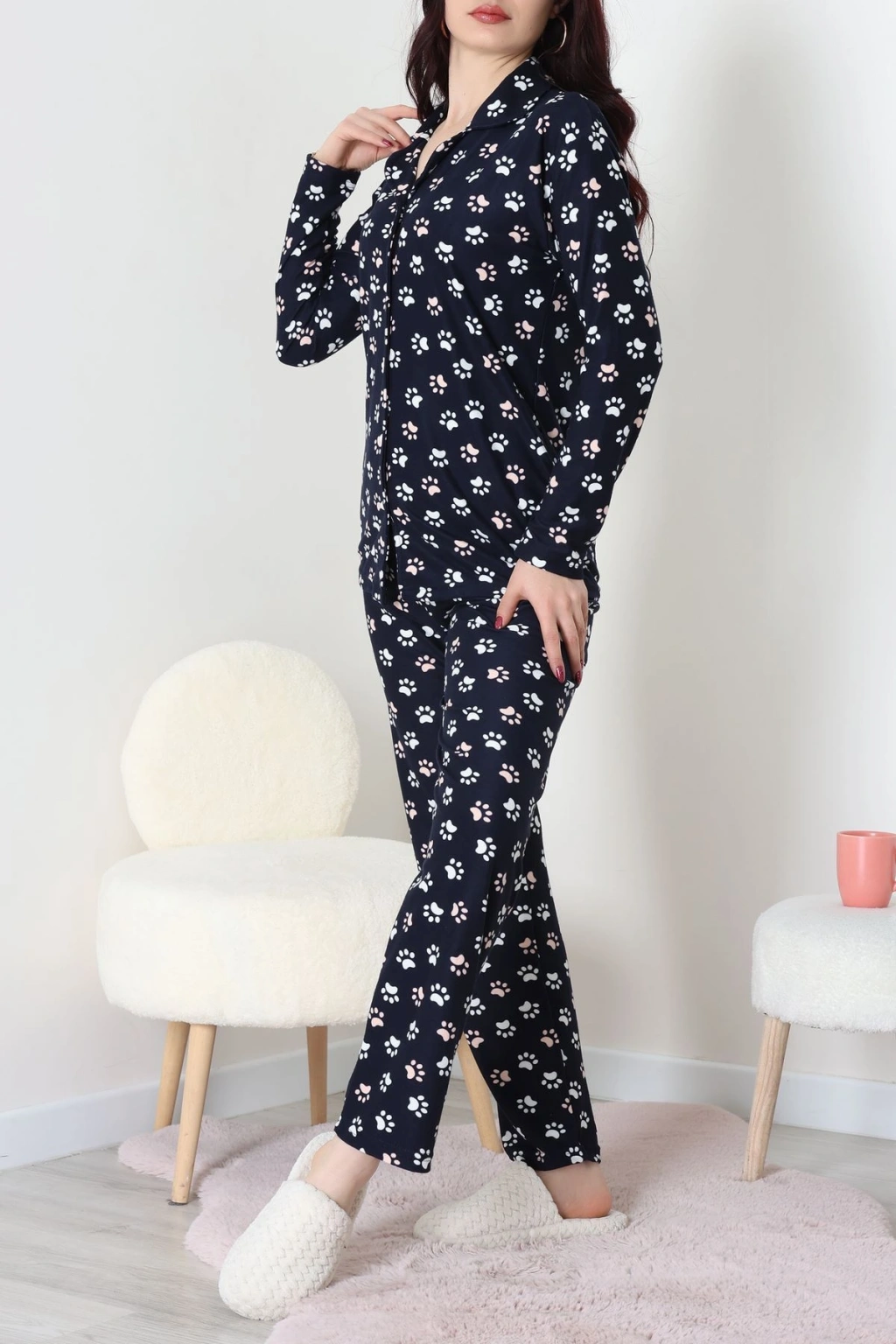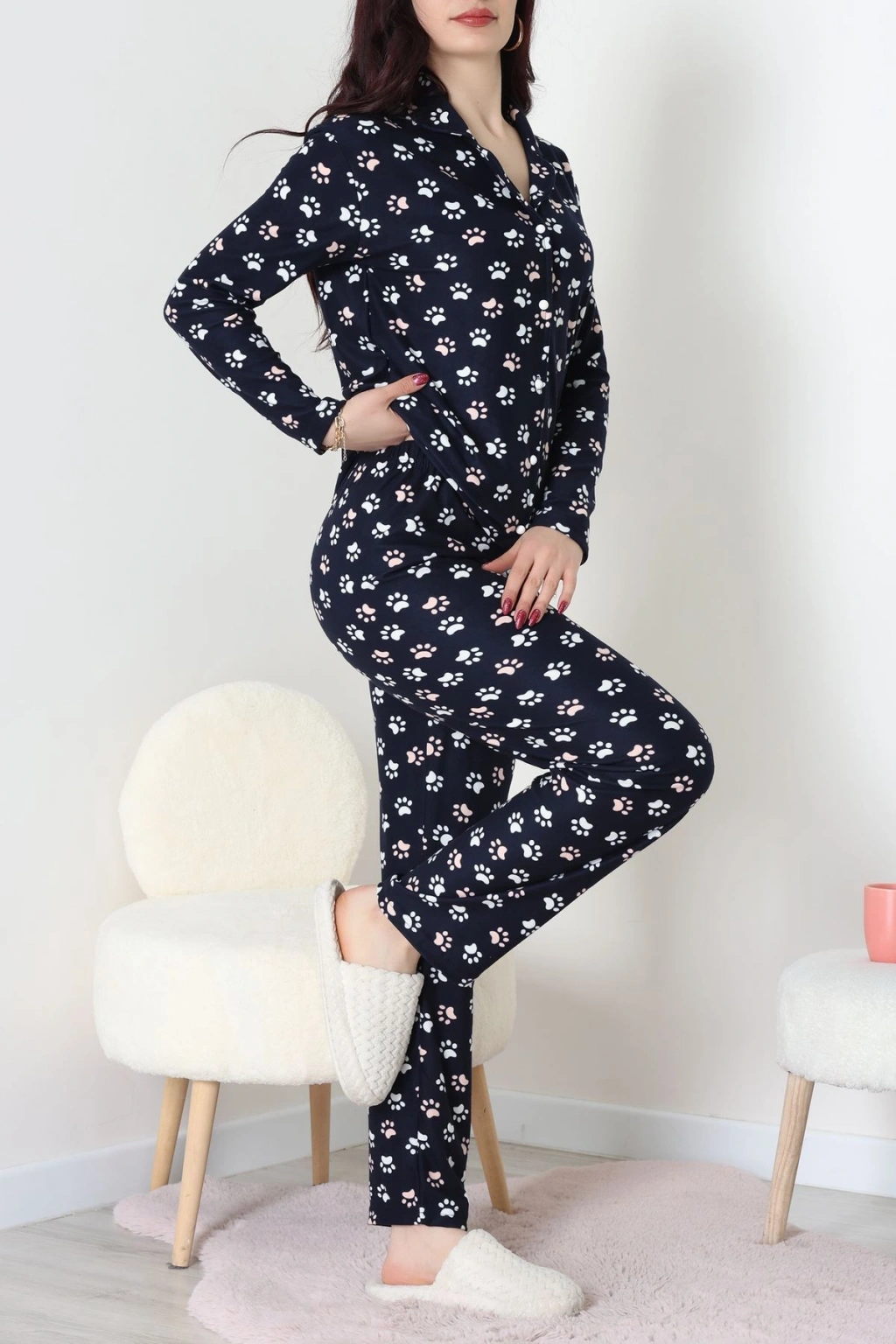 Süprem Kumaş Kısa Kollu Pijama Takımı Lacivert - 31860.2123.