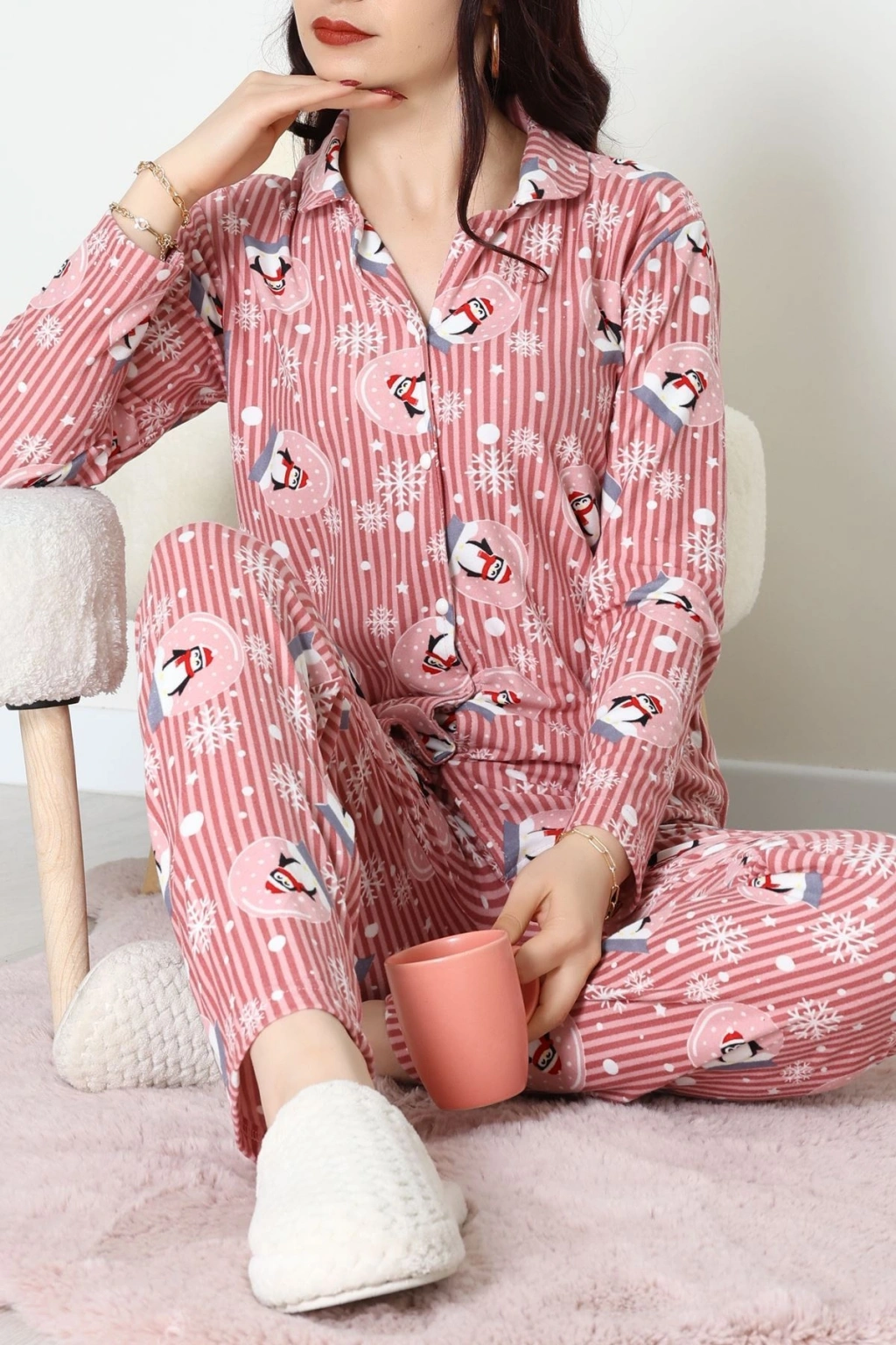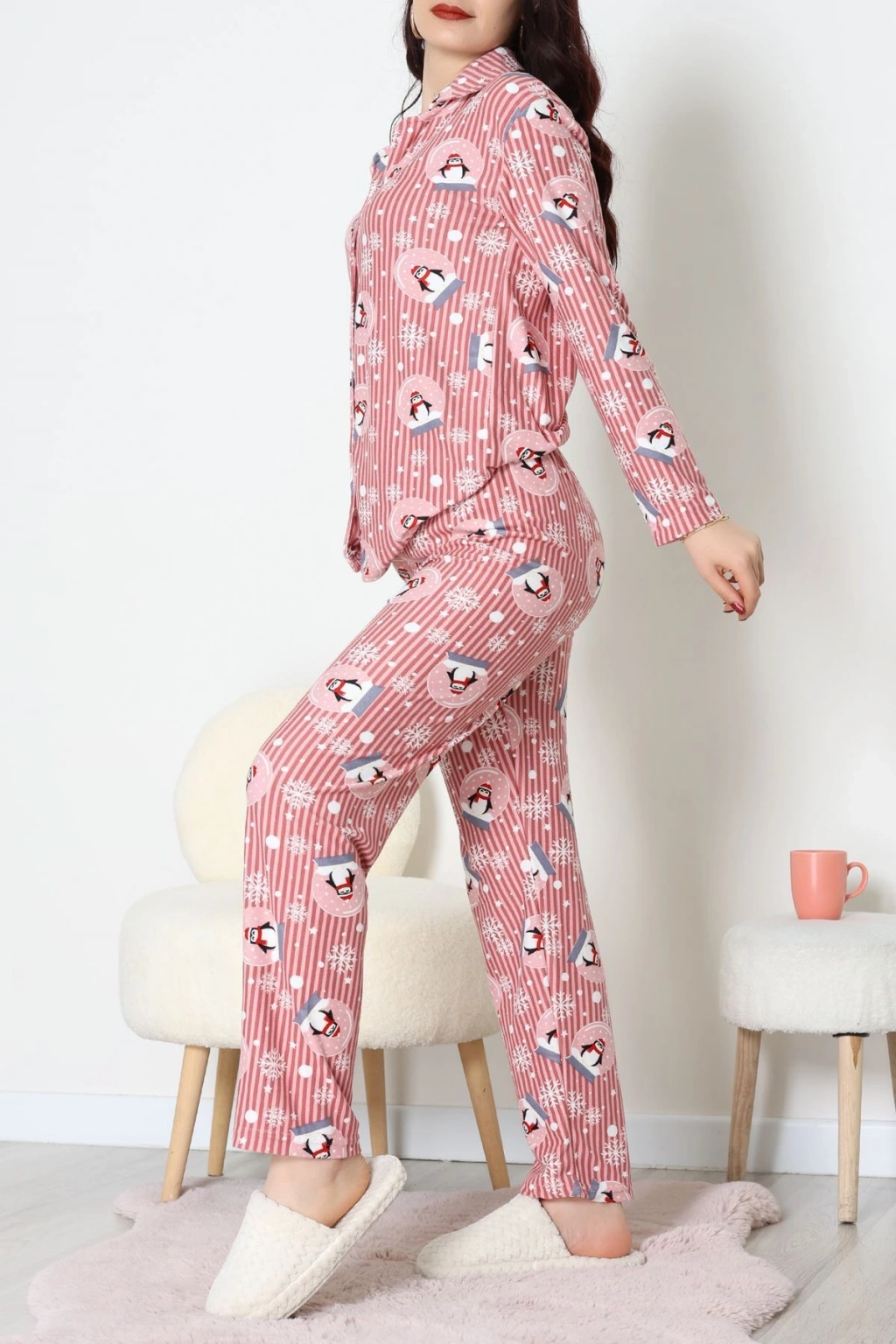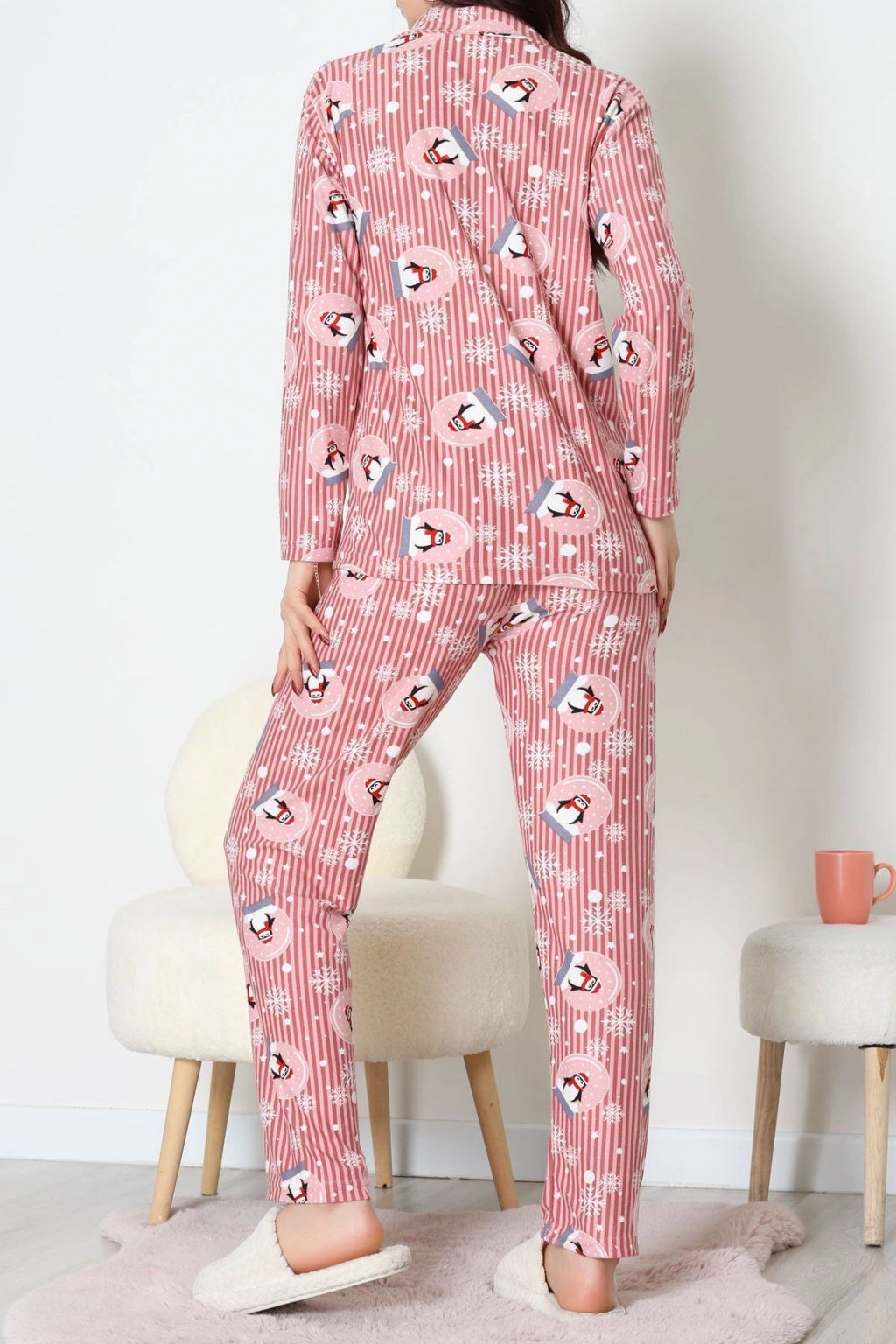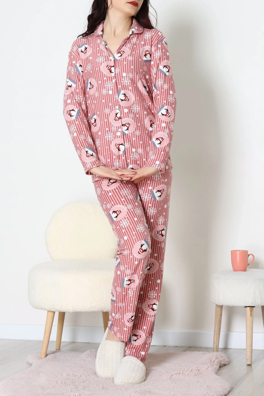 Süet Düğmeli Pijama Takımı Pembedesenli1 - 55014.1048.