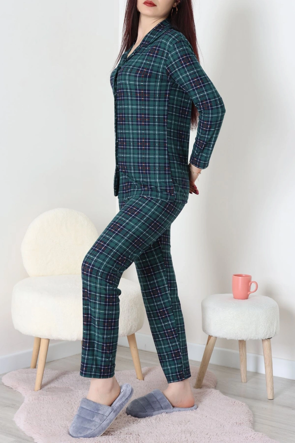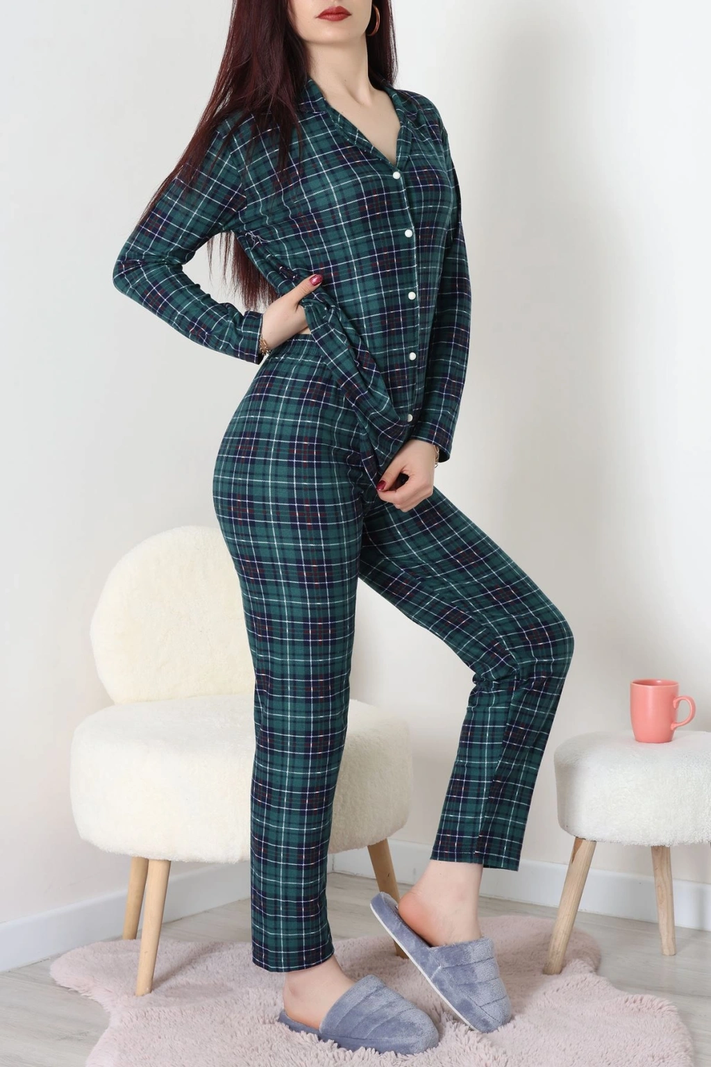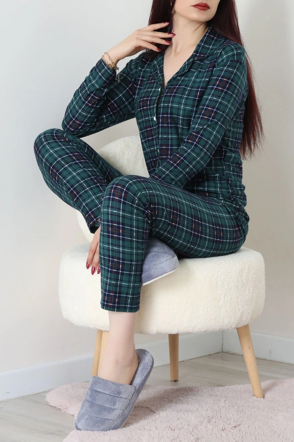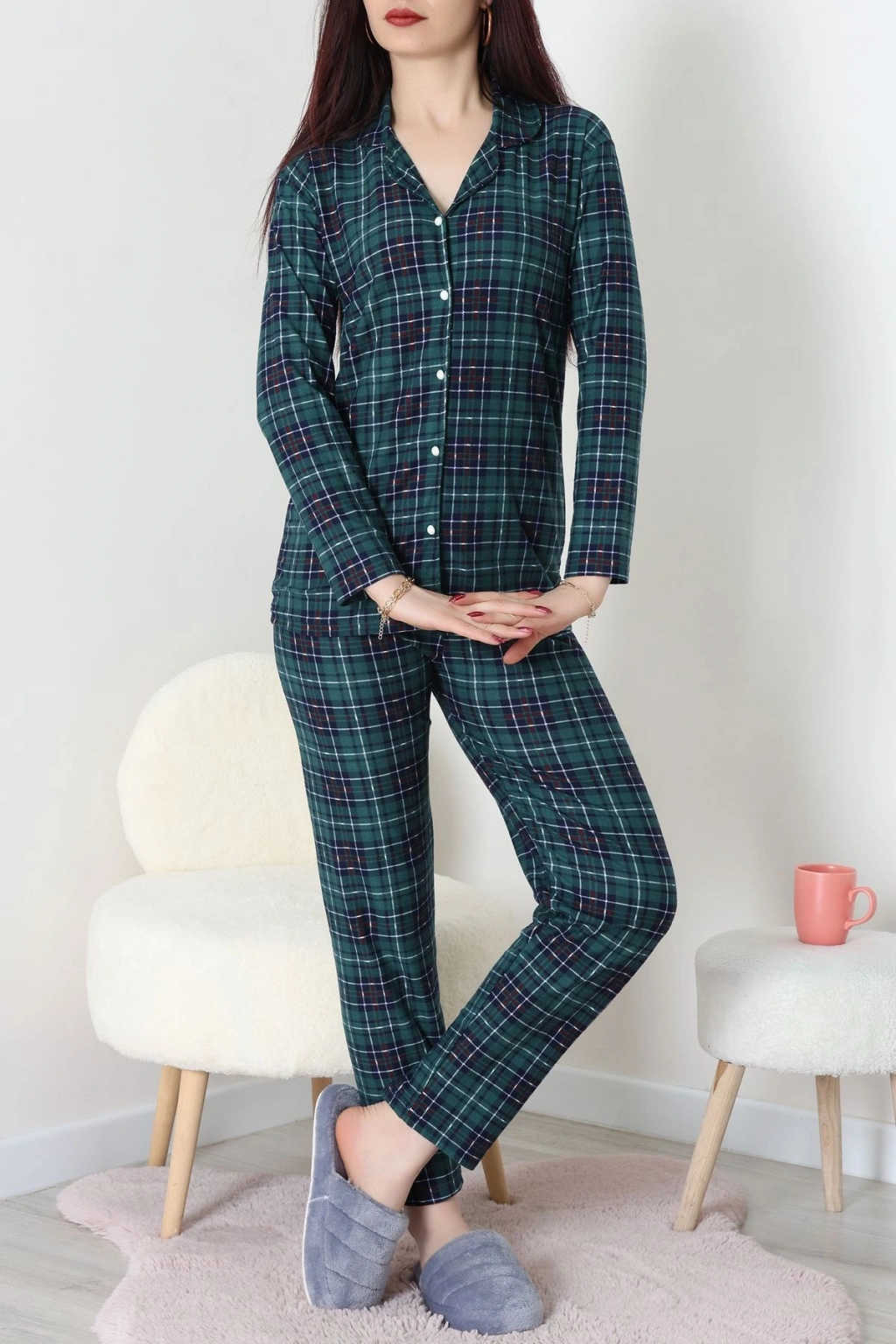 Süet Düğmeli Pijama Takımı Zümrütekose - 55014.1048.