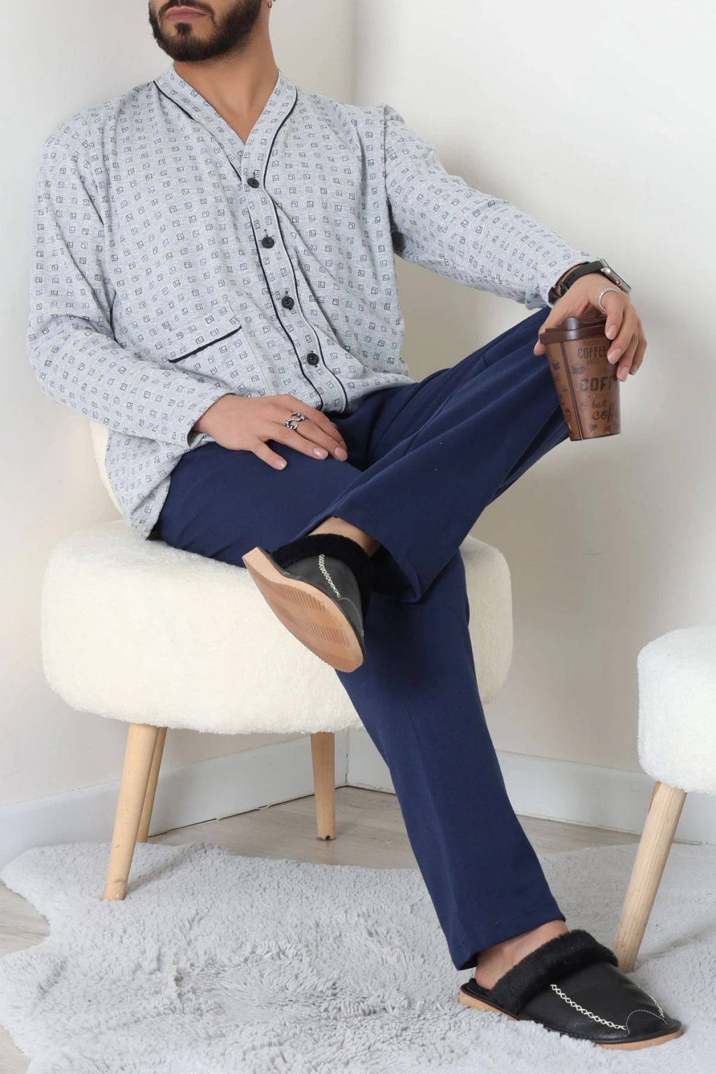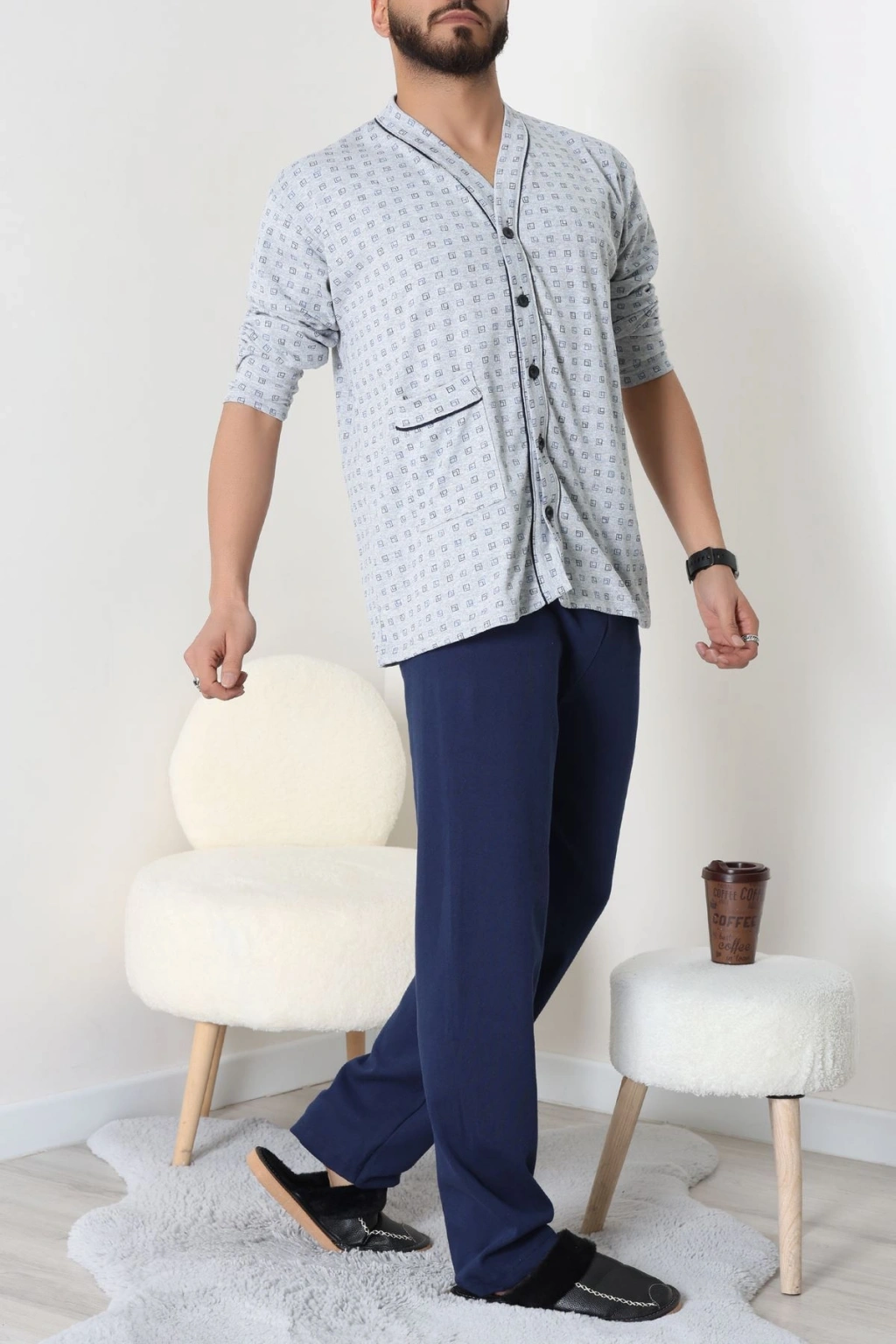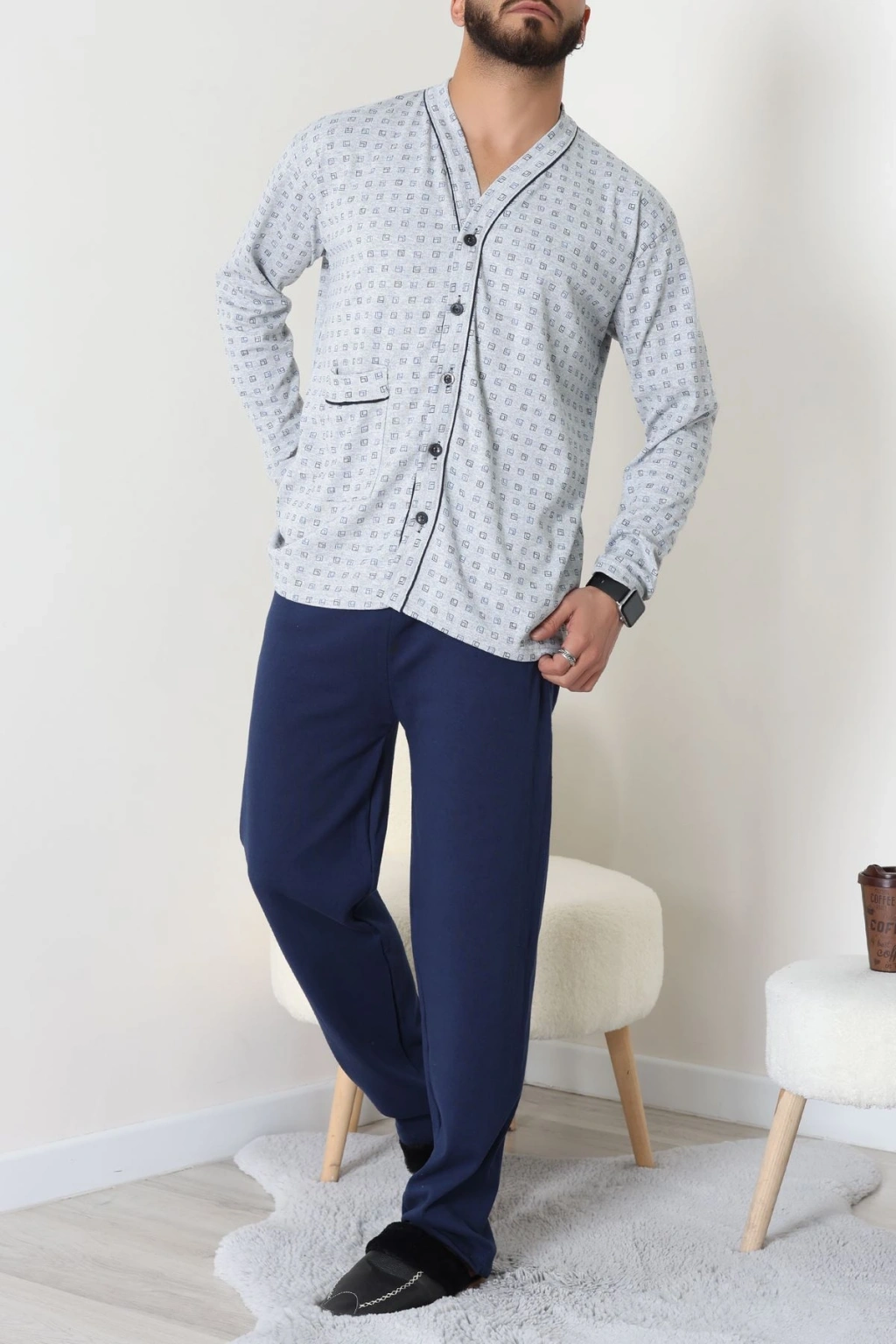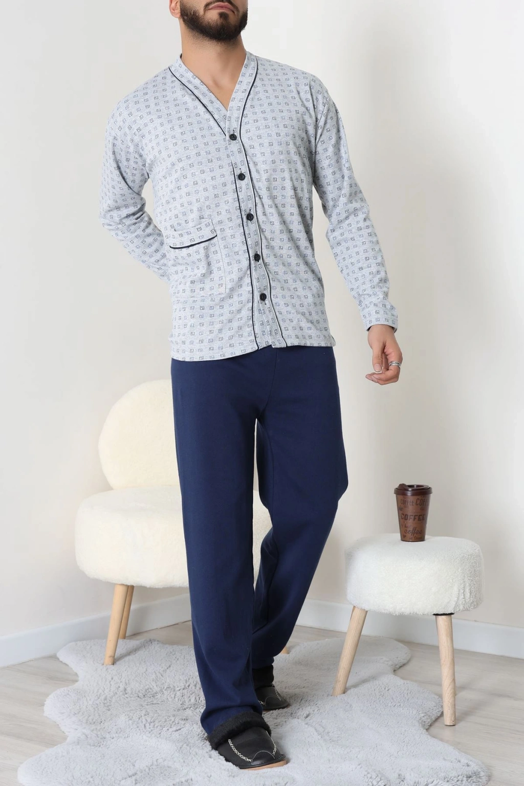 Süprem Boydan Düğmeli Erkek Pijama Takımı Grilaci - 70887.1838.