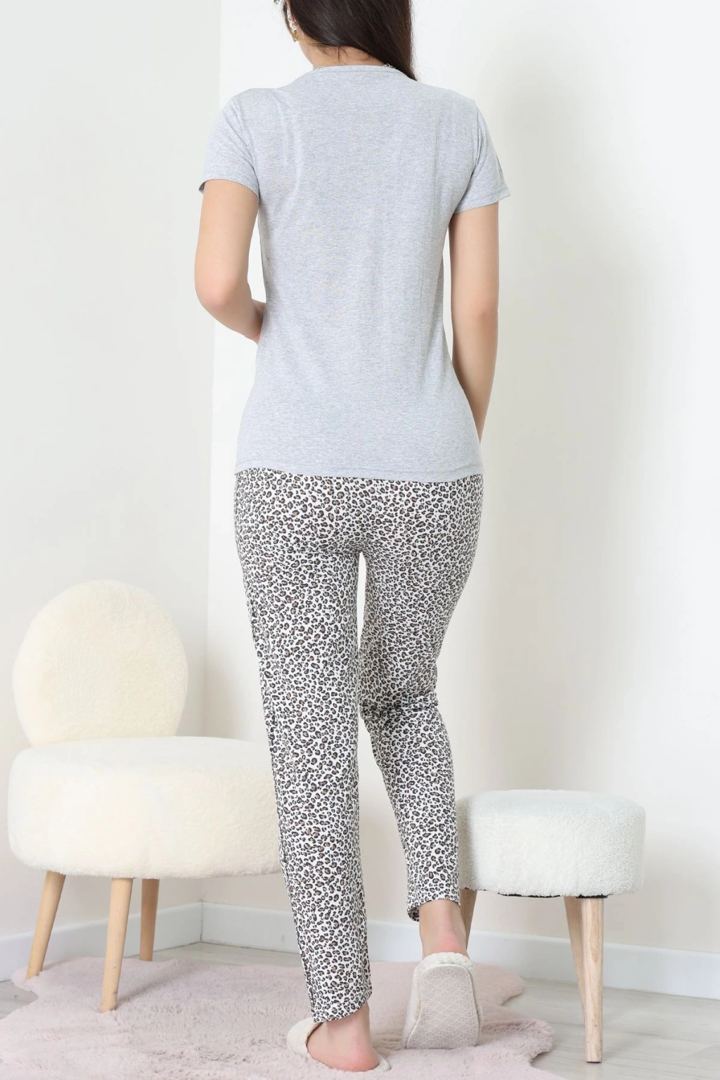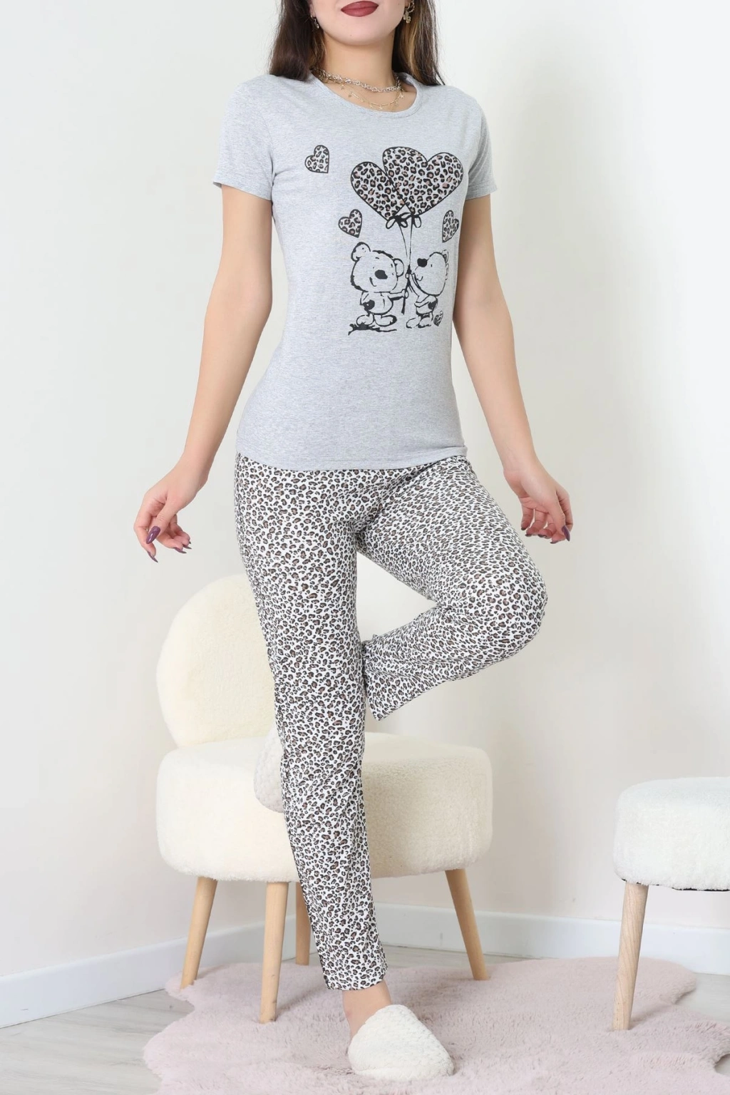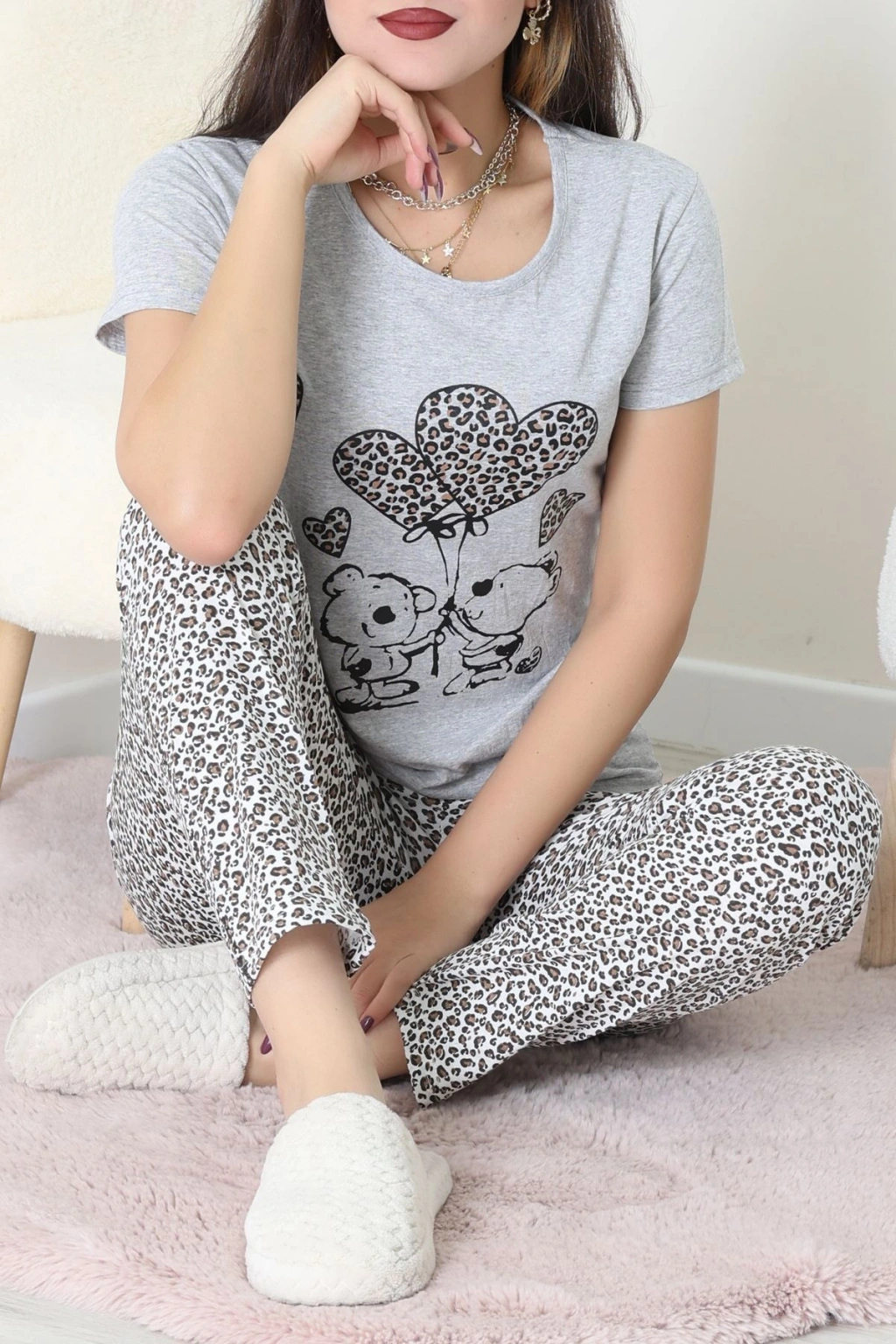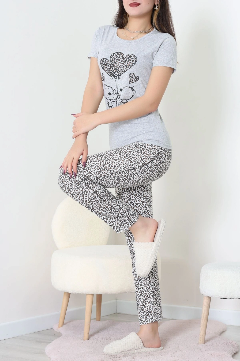 Süet Düğmeli Pijama Takımı Leopar - 31876.1049.