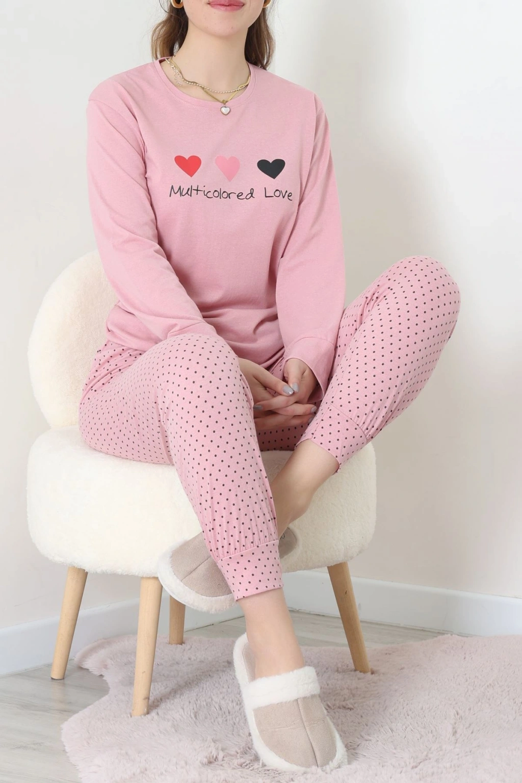 Süet Düğmeli Pijama Takımı Pembe - 31876.1049.