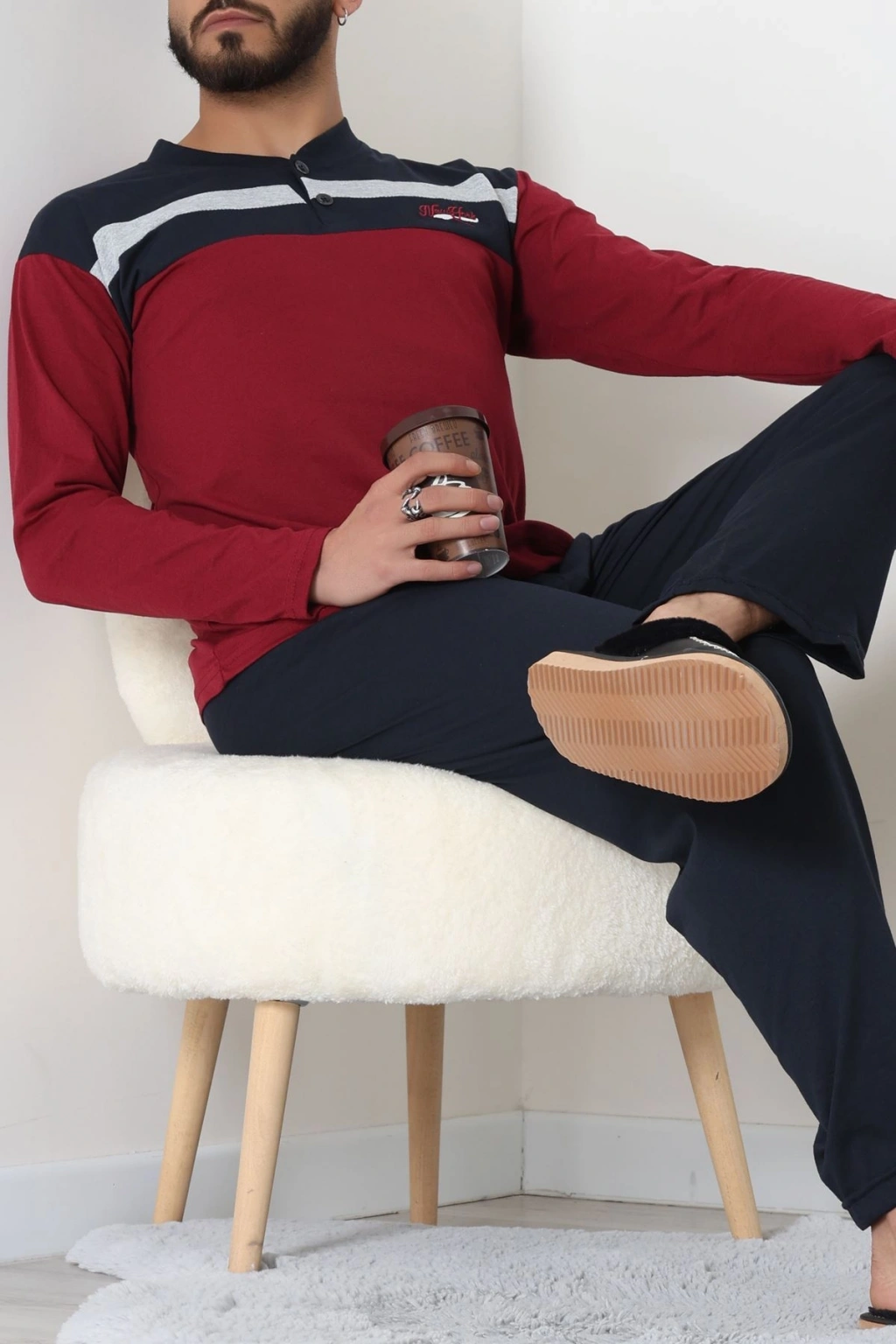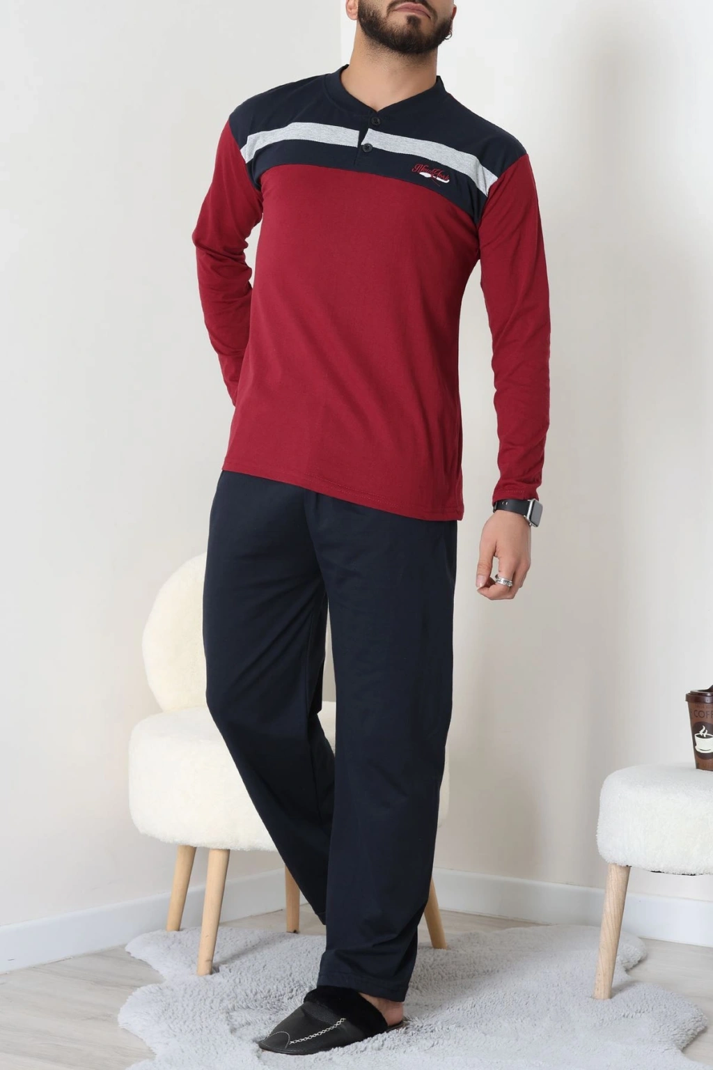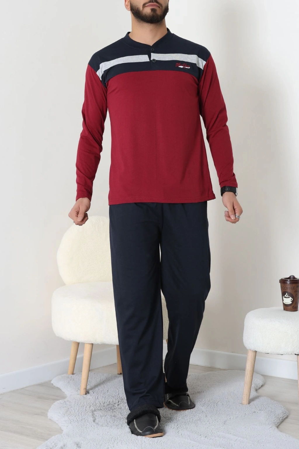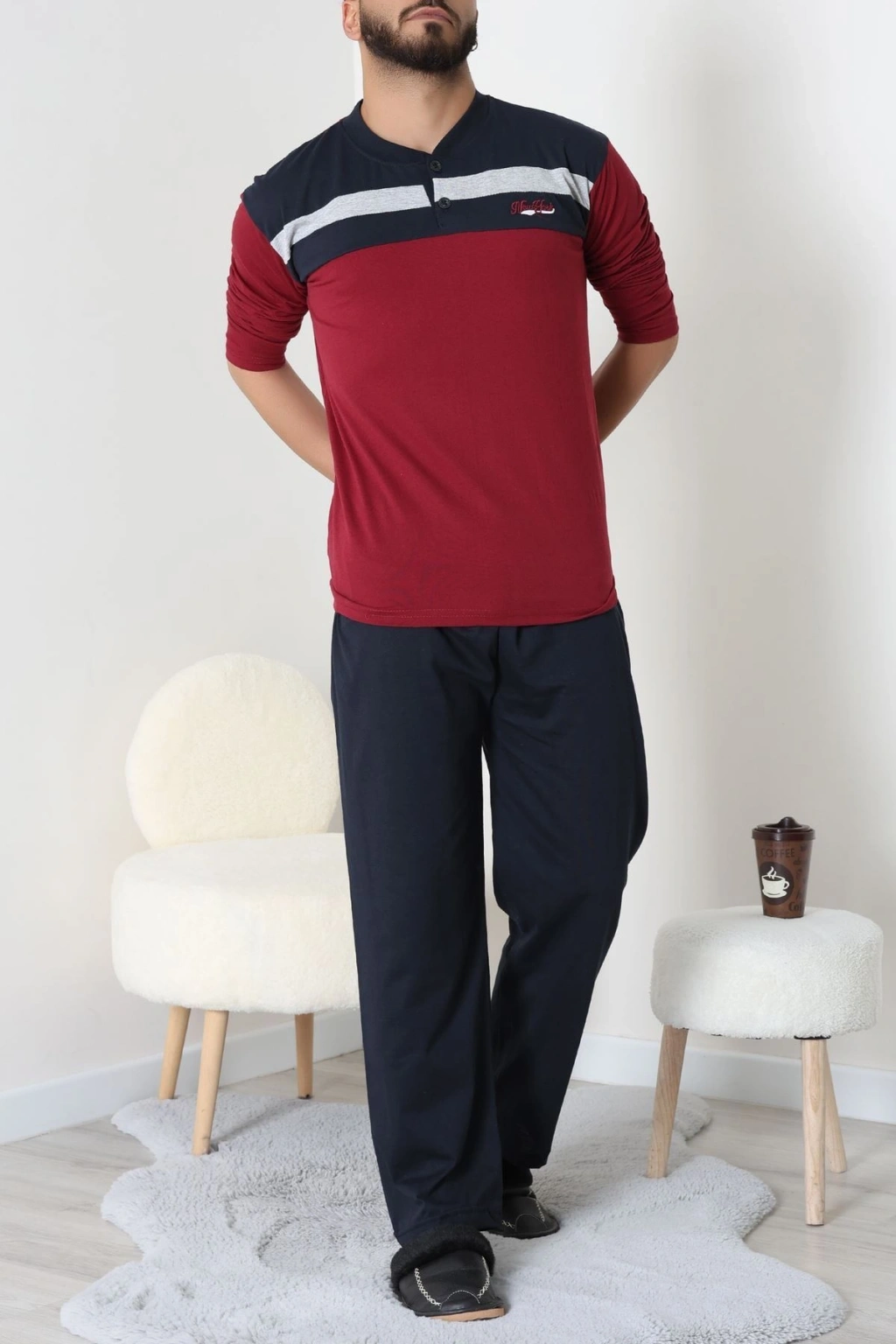 Süprem Patlı Baskılı Erkek Pijama Takımı Bordolaci - 70885.1838.