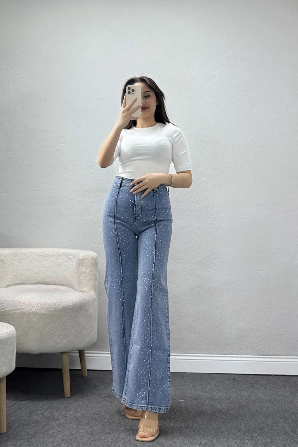 # Çımalı Kot Pantolon Buzmavi ## Taşlı Detaylar ve Modern Kesim Modern silüetiyle öne çıkan bu **çımalı kot pantolon**, buzmavi tonuyla ferah bir görünüm sunarken bacak boyunu daha uzun gösteren dikey dikiş detaylarına sahiptir. Bu tasarım, yüzeyindeki ışıltılı taş işlemeleri sayesinde klasik denim estetiğine zarif bir dokunuş katar. Sert olmayan dokusu hareket özgürlüğü tanıyarak gün boyu konfor sağlar. Kaliteli kumaş yapısı ve **buzmavi kot** renginin canlılığı uzun süreli kullanımda formunu başarıyla korur. Özellikle **taşlı kot pantolon arayanlar için** şık bir alternatif oluşturan bu parça, kesimiyle modern bir duruş sergiler. Modelimiz, ön kısmındaki dikey çıma dikişleri sayesinde daha ince ve fit bir görünüm elde etmenize yardımcı olur. Bel bölgesine tam oturan kalıbı ve genişleyen paça yapısı, bu **çımalı kot pantolon** tasarımını hem estetik hem de işlevsel kılar. Pantolonun üzerindeki küçük taş detayları, ışığı yansıtarak sade bir denimden daha fazlasını vaat eder. Pamuk ağırlıklı dokusu cildin nefes almasını sağlar ve gün boyu süren bir rahatlık deneyimi sunar. Şıklığı ve dayanıklılığı bir arada barındıran bu tasarım, bütçe dostu fiyatıyla öne çıkan bir ekonomik seçenek olarak dikkat çeker. Satın almak için hemen sepete ekleyin.