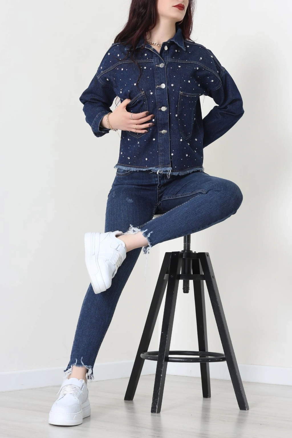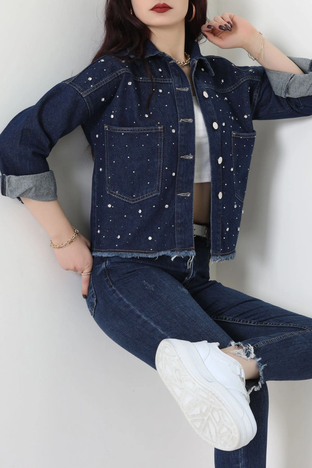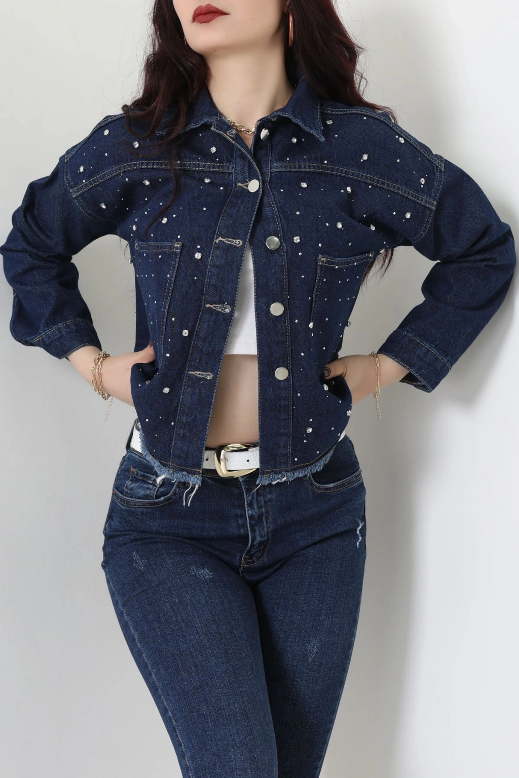 Taşlı Kot Ceket Lacivert - 001.2059.