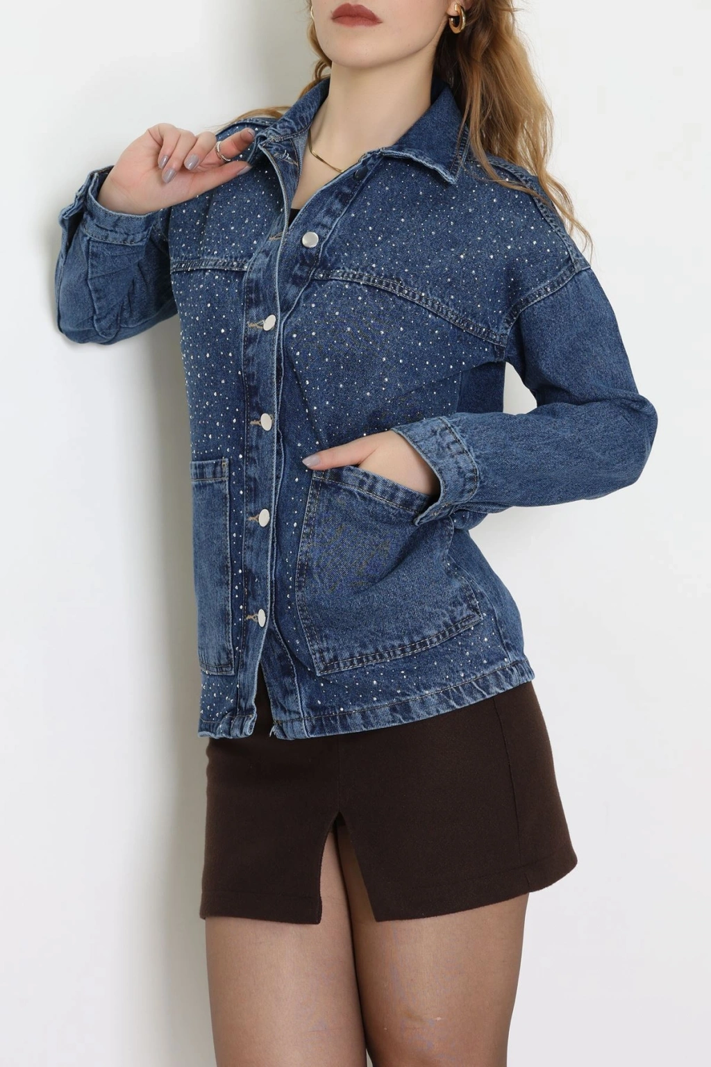 Taşlı Kot Ceket Mavi - 31871.2059.
