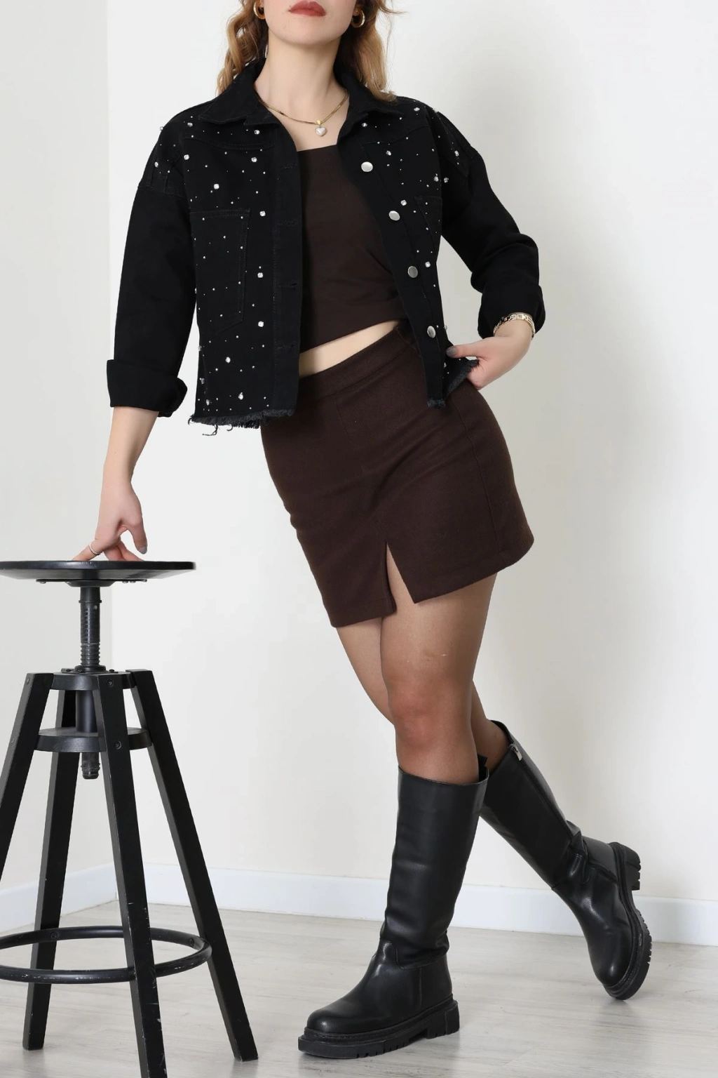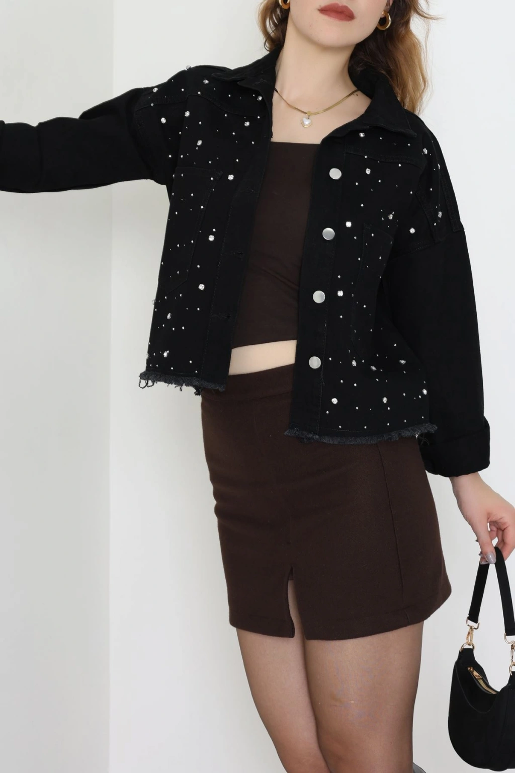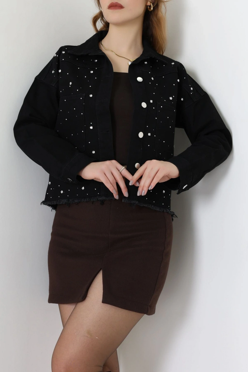 Taşlı Kot Ceket Siyah - 001.2059.