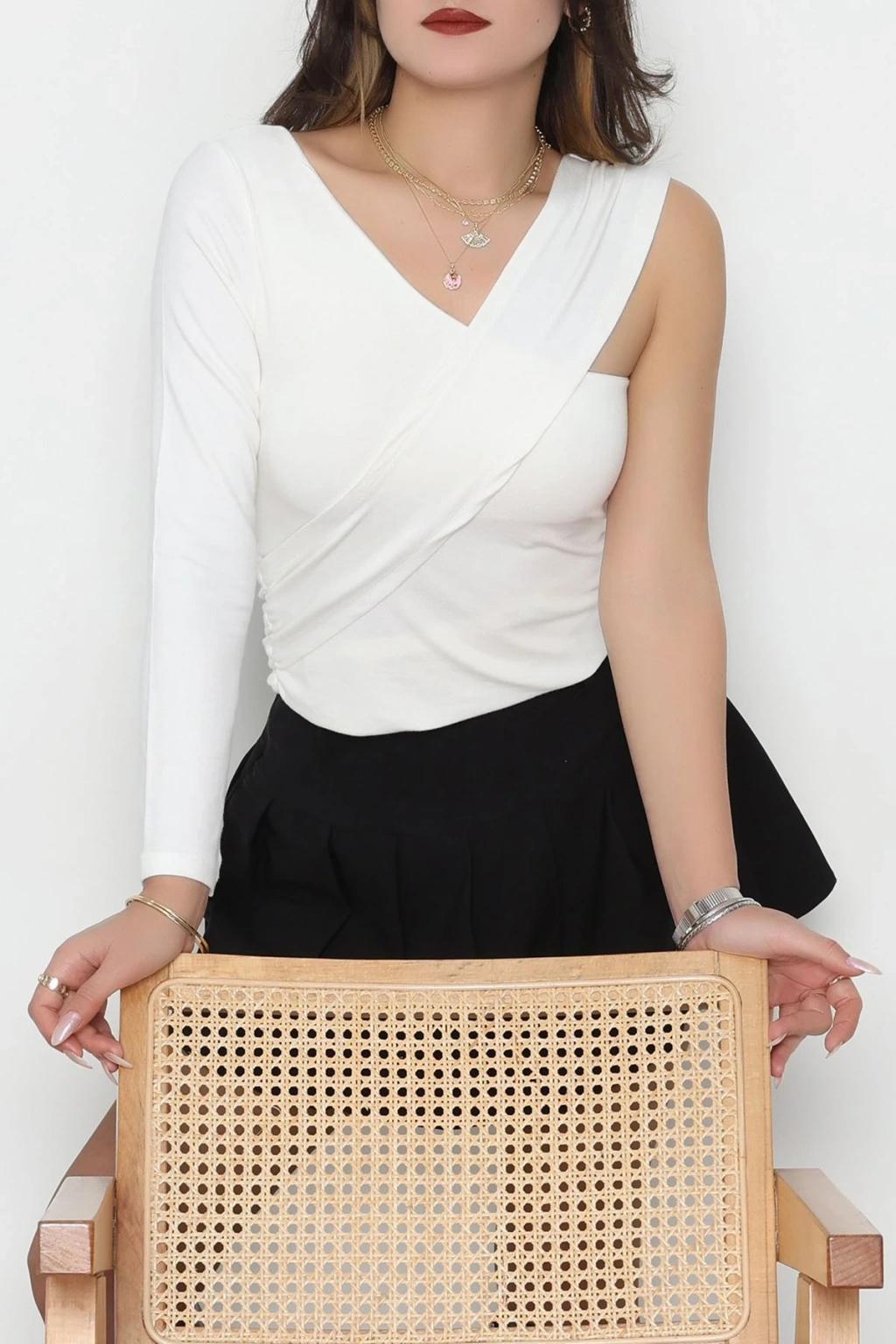 Buzzy Kumaş Tek Omuz Toka Detaylı Bluz Ekru - 1052.2119.