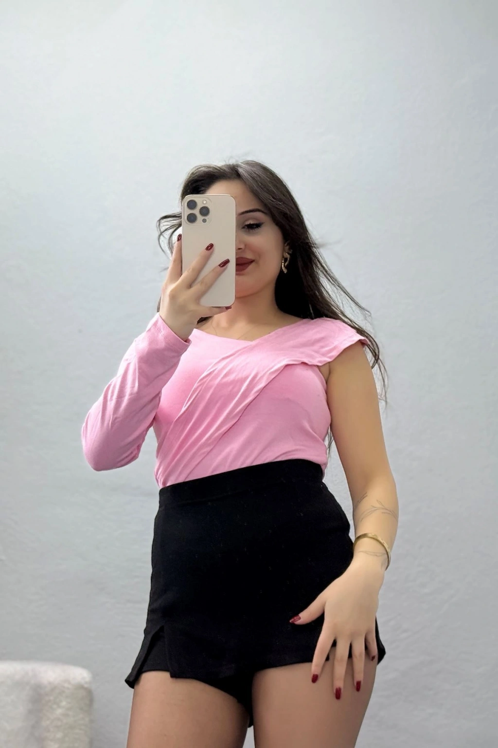 # Tek Omuz Pembe Bluz ## Özgün Tasarım ve Konfor Tarzınıza modern bir dokunuş katacak bu **tek omuz pembe bluz**, asimetrik kesimiyle dikkat çekiyor ve ilk bakışta fark yaratıyor. V yaka görünümlü çapraz detay, boyun çizgisini zarifçe vurgularken, tek uzun kol detayı modele eşsiz bir hava katıyor. Yüksek kaliteli likralı triko kumaş içeriği (%55 Polyester, %35 Viskon, %10 Lycra) sayesinde hem esneklik hem de konfor sunan bu tasarım, dar kalıbıyla vücuda kusursuzca oturur. Cildinize nazik bir dokunuş vadeden bu pembe triko, gün boyu rahat bir kullanım sağlar ve hareket özgürlüğünüzü kısıtlamaz. Özellikle özgün ve stil sahibi bir **şık bluz** arayanlar için ideal olan bu parça, gündüzden geceye kolayca adapte olur. Çarpıcı detaylarıyla ön plana çıkan bu model, gardırobunuza modern ve fiyat performans odaklı bir dokunuş katıyor. Hemen sepete ekleyin.