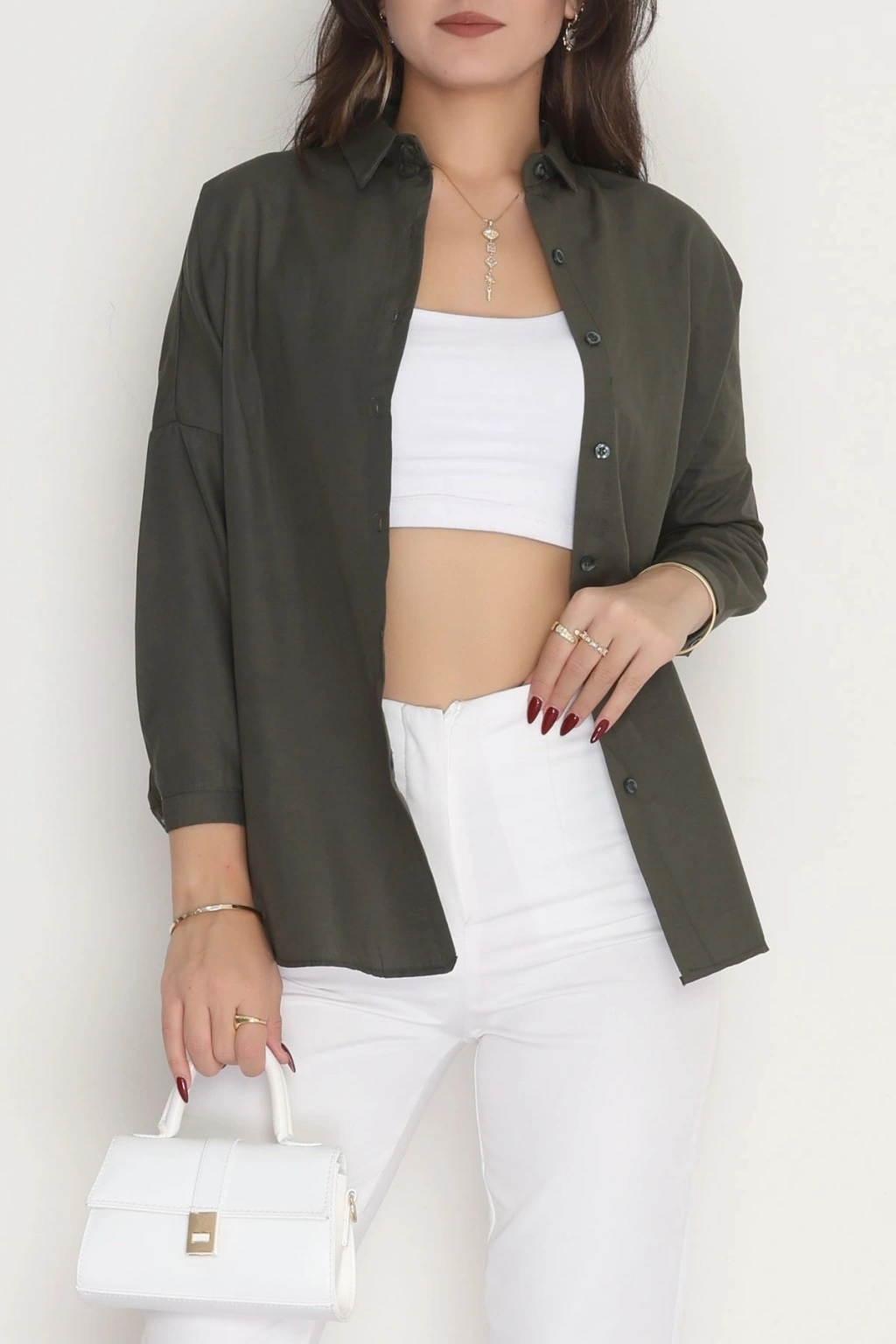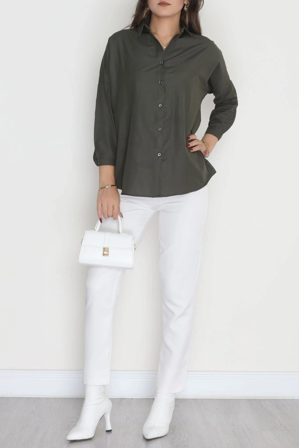 # Haki Oversize Gömlek ## Gün Boyu Rahatlık ve Şık Görünüm Gün boyu konfor sunan **haki oversize gömlek**, hafif terikoton kumaşıyla öne çıkıyor. Rahat kesimi sayesinde modern ve ferah bir tarz arayanlar için ideal bu model, yalın tasarımıyla dikkat çeker. Polyester içeriği sayesinde kırışmaya karşı dayanıklıdır ve kolay bakımıyla pratik bir kullanım vadeder. Yumuşak dokulu bu **kadın gömlek**, dökümlü yapısıyla hareket özgürlüğü sağlarken, özel haki rengi sayesinde zarif bir görünüm sunar. Önündeki klasik düğmeli kapama ve düz yaka kesimi, tasarıma şık bir sadelik katıyor. Uzun ömürlü ve zamansız bir parça arayanlar için bu **rahat kesim gömlek**, oldukça uygun fiyatlı bir alternatiftir. Hemen sepete ekleyin.