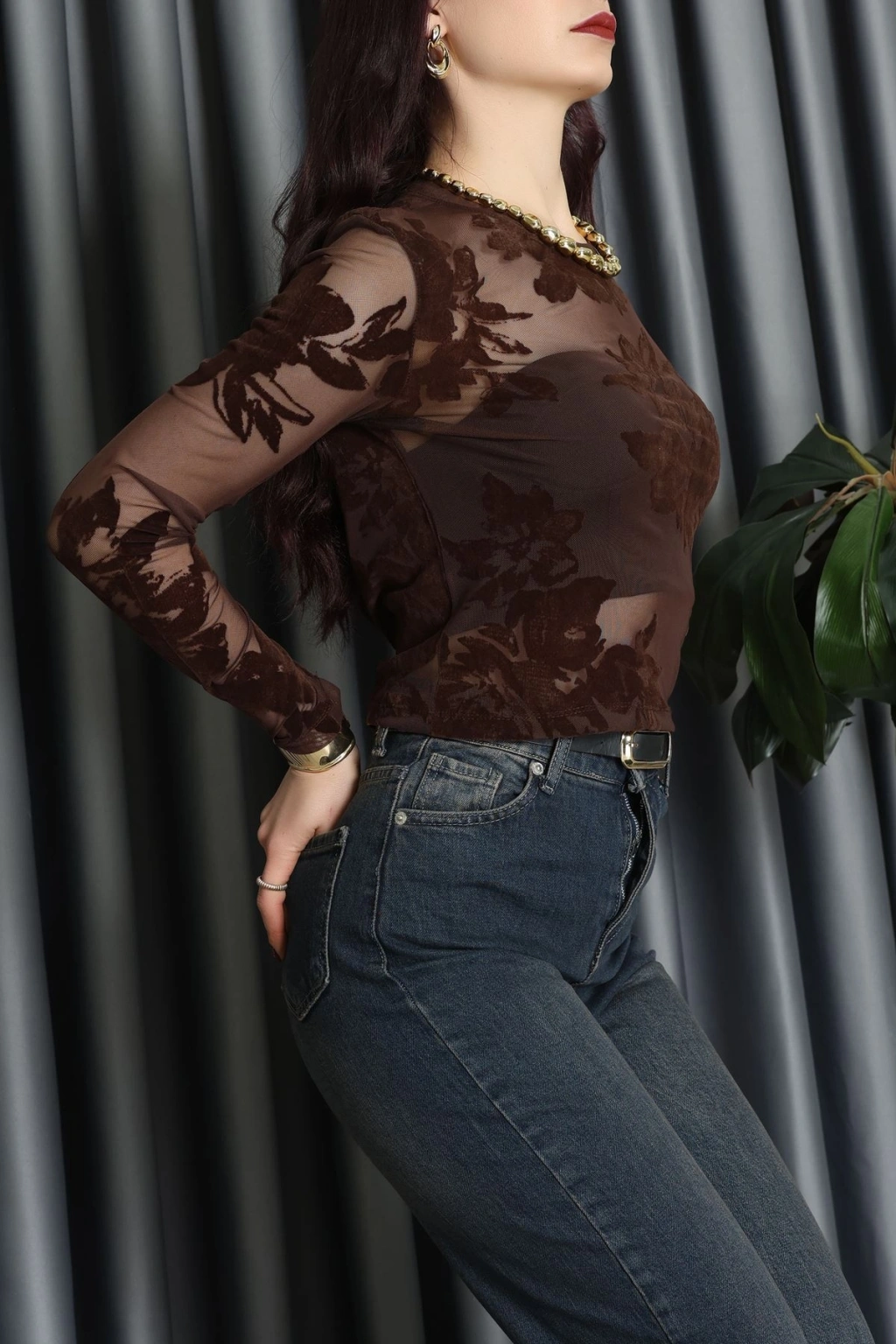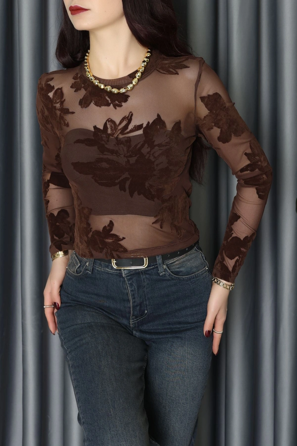 Transparan Şifon Bluz Kahve - 70848.2078.