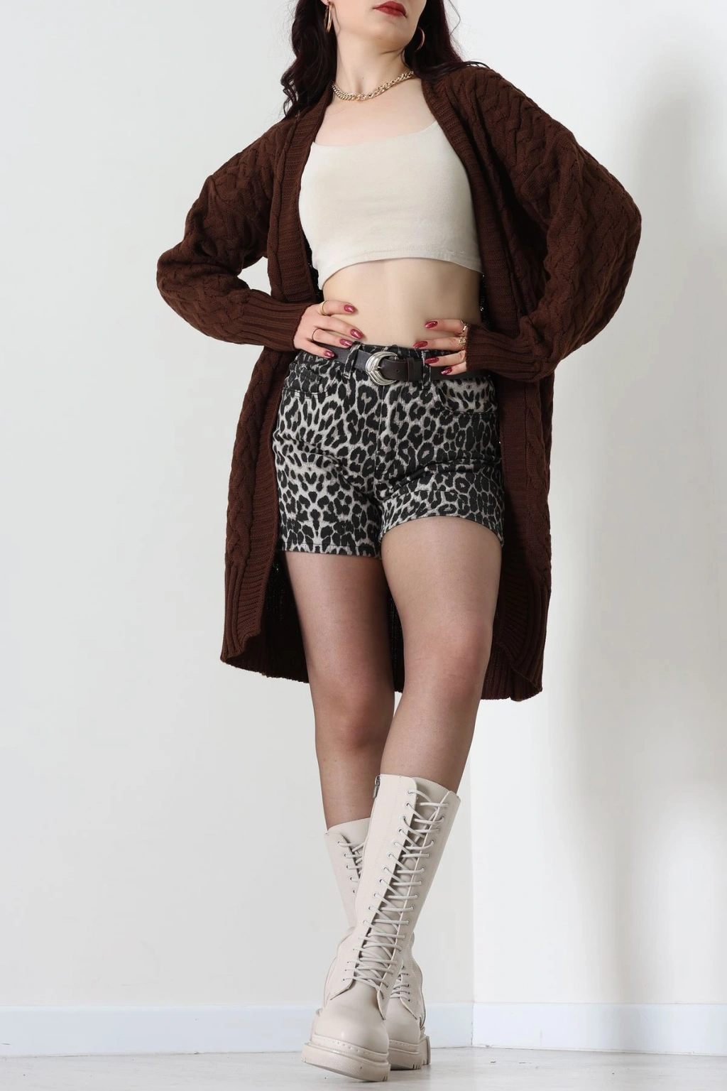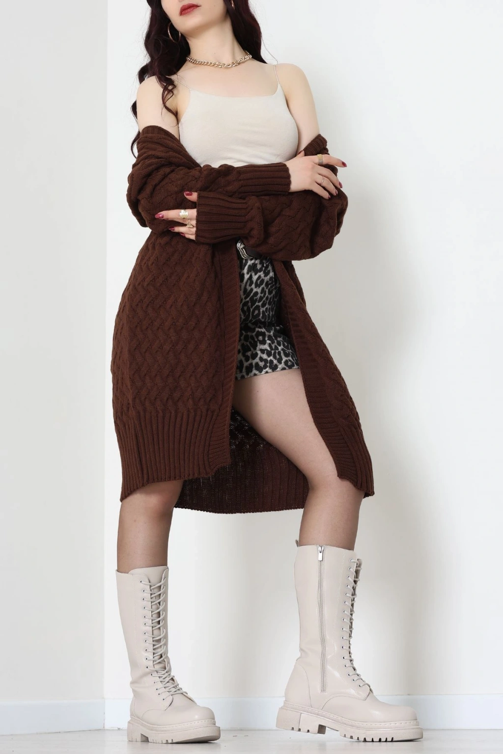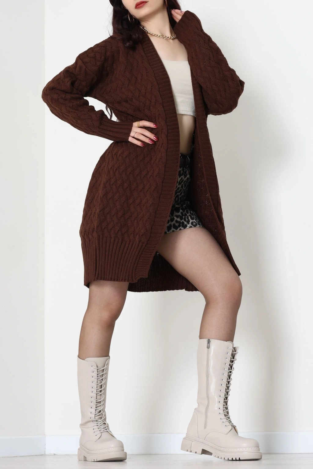 Düğmeli Hırka Kahve - 31834.2131.