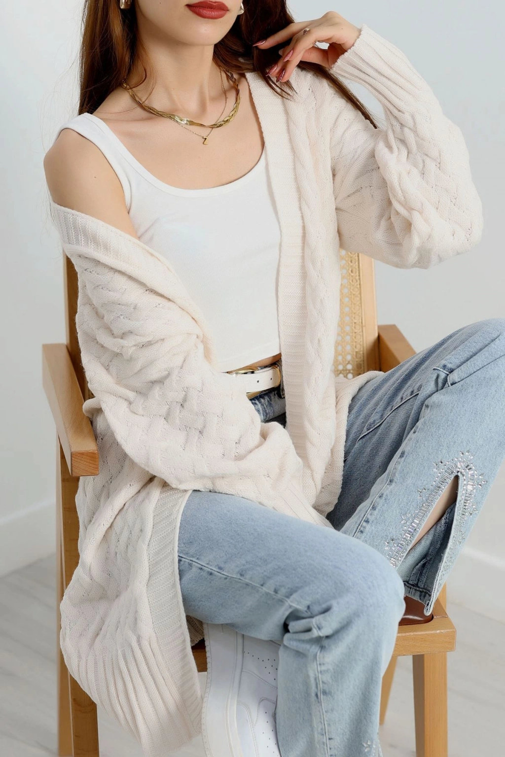 Düğmeli Hırka Beyazsiyah - 31835.2131.