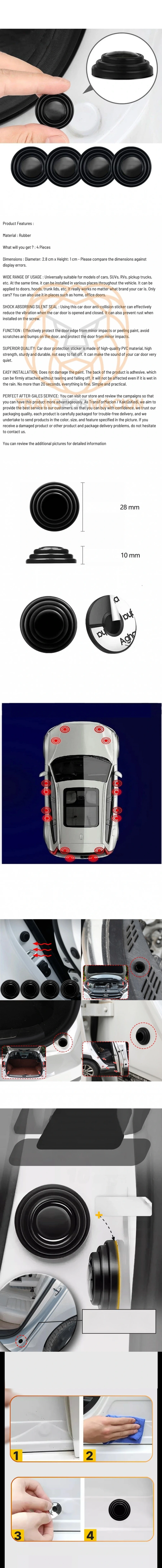 ŞOK EMİCİ SESSİZ CONTA : Bu araba kapısı çarpışma önleyici etiketini kullanmak, araba kapısı açılıp kapatıldığında titreşimi etkili bir şekilde azaltabilir. Vida üzerine takıldığında paslanmayı da önleyebilir.