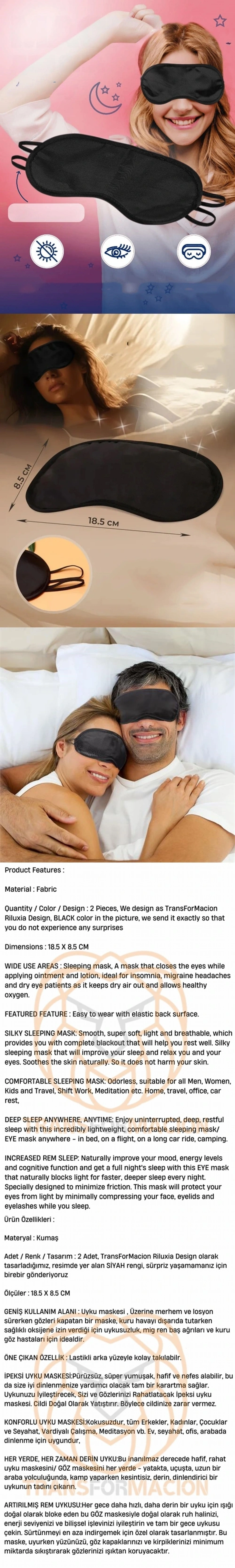 İPEKSİ UYKU MASKESİ:Pürüzsüz, süper yumuşak, hafif ve nefes alabilir, bu da size iyi dinlenmenize yardımcı olacak tam bir karartma sağlar. Uykunuzu İyileştirecek, Sizi ve Gözlerinizi Rahatlatacak İpeksi uyku maskesi. Cildi Doğal Olarak Yatıştırır. Böylece cildinize zarar vermez.