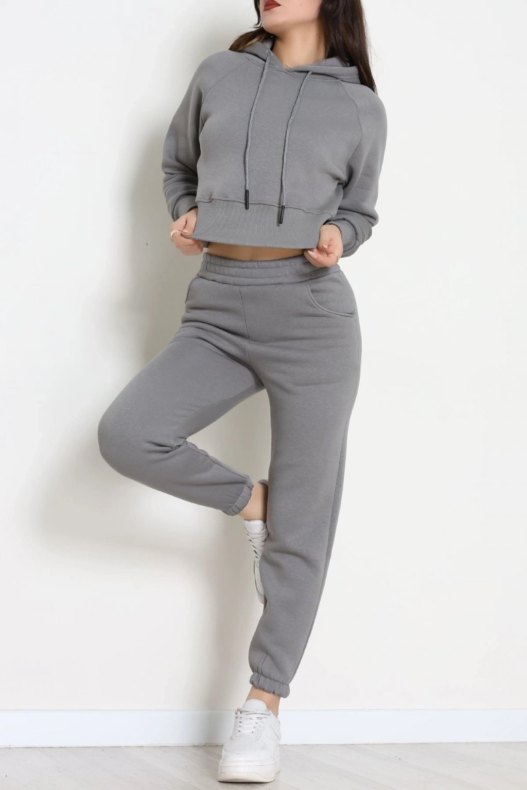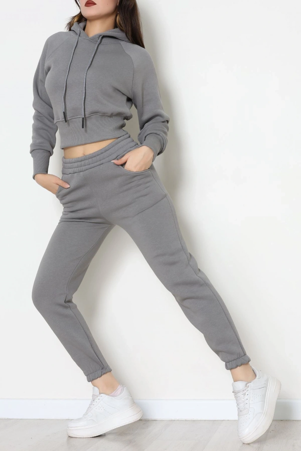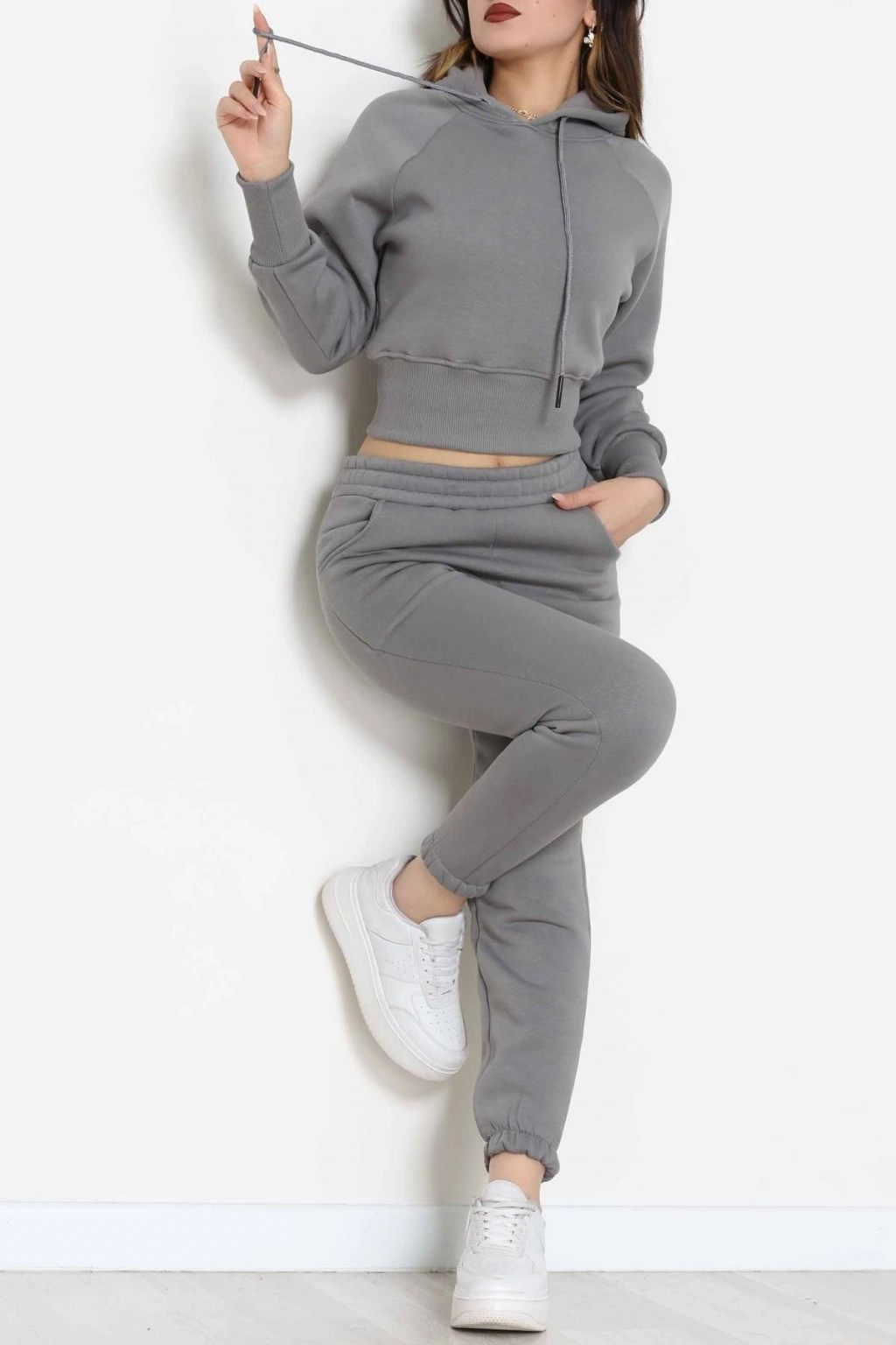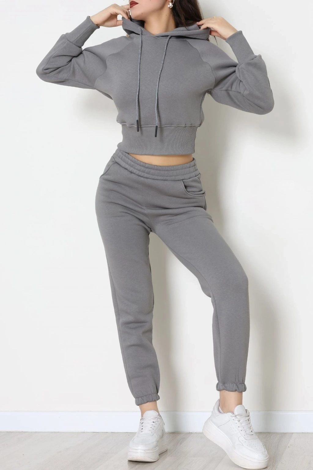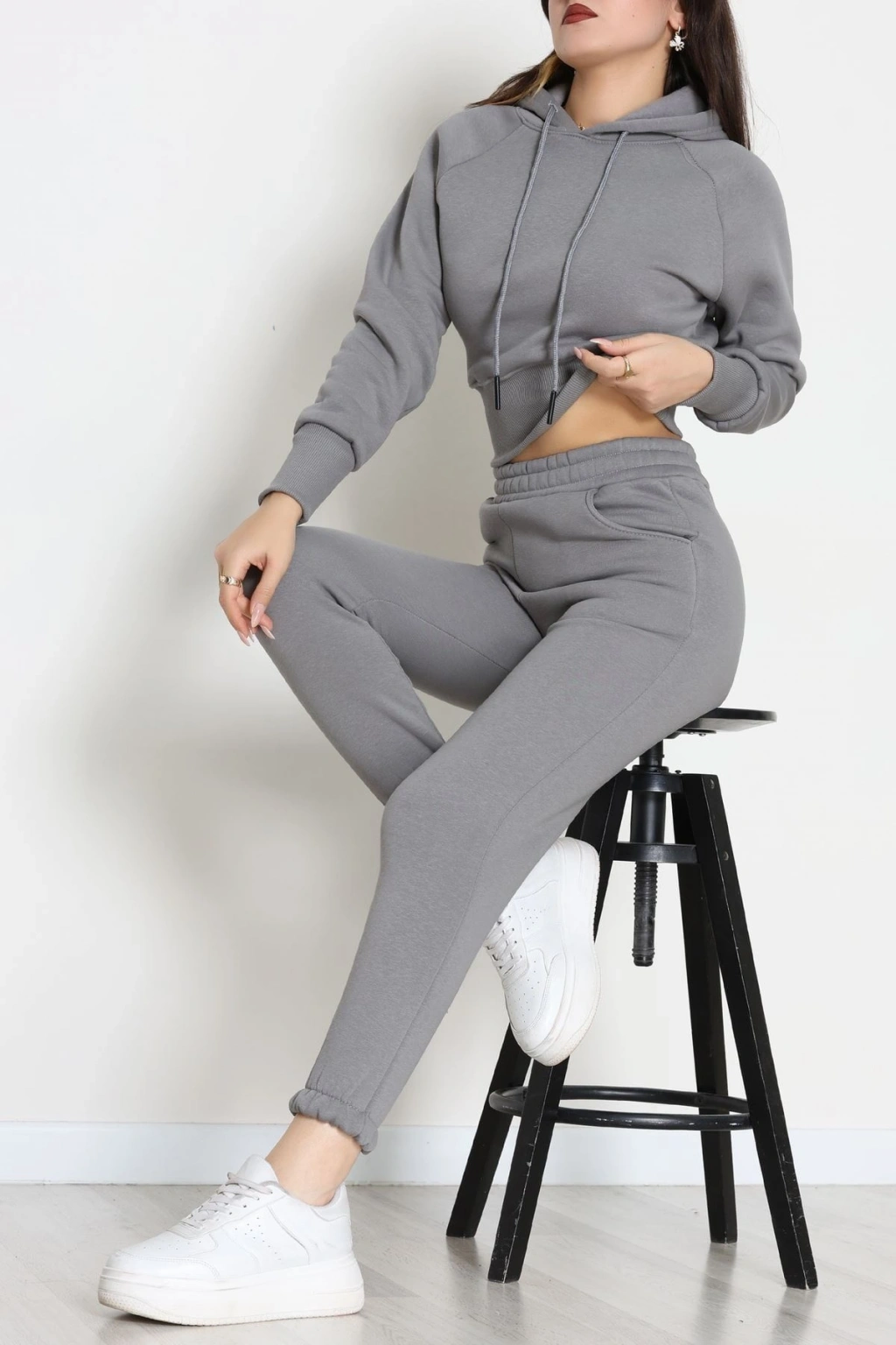 Üç İplik Crop Eşofman Takımı Antrasit - 70778.1878.