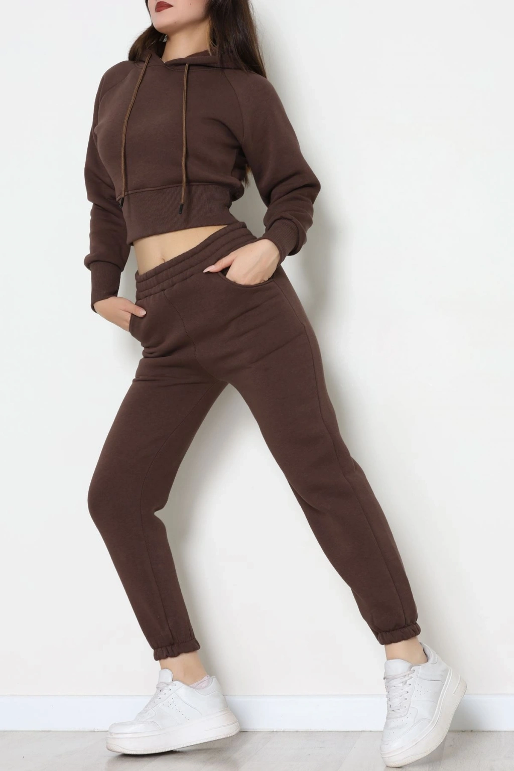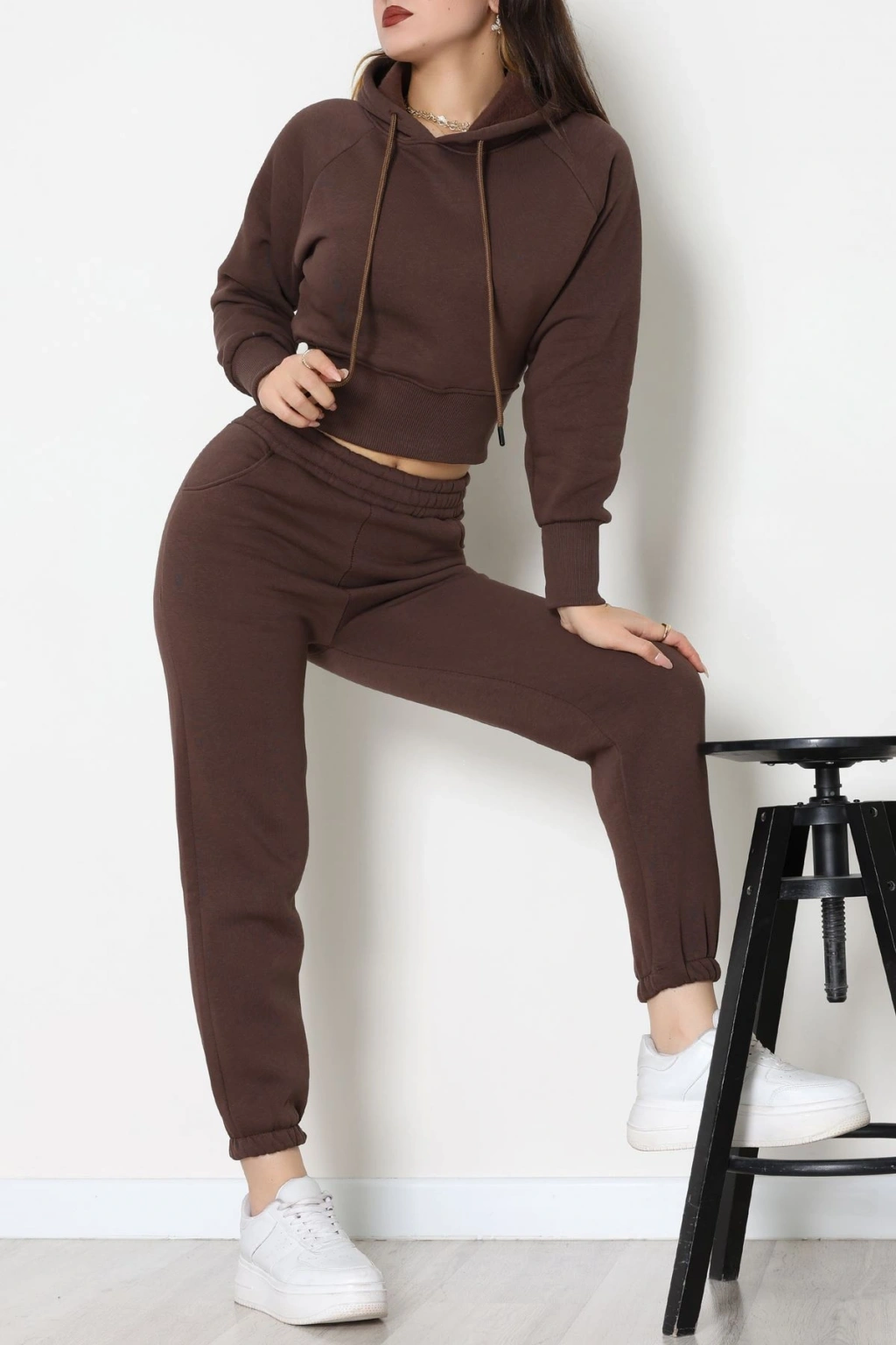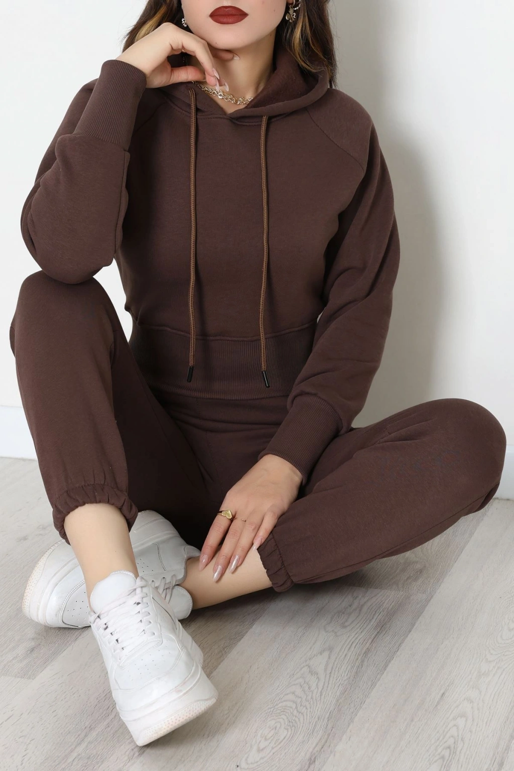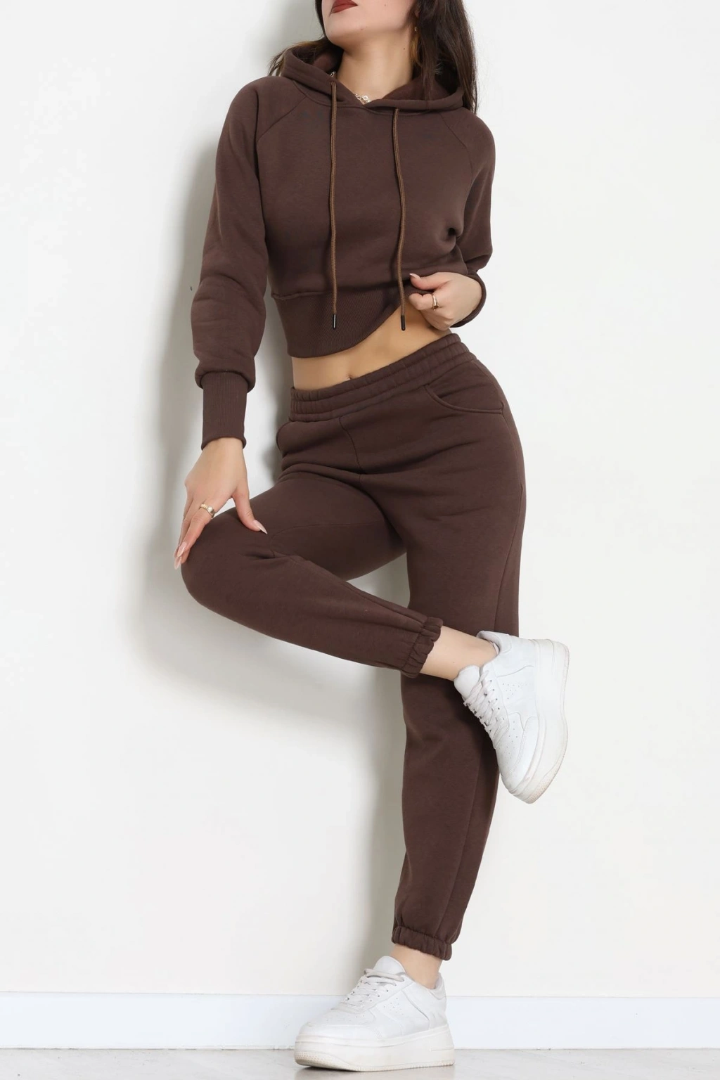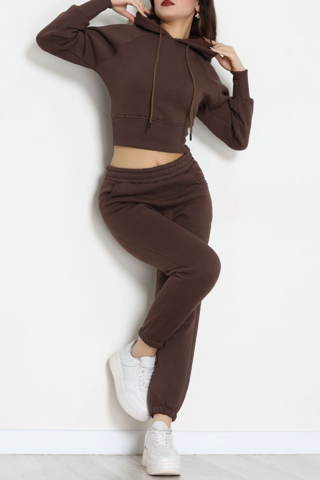 Üç İplik Crop Eşofman Takımı Kahve - 70778.1878.