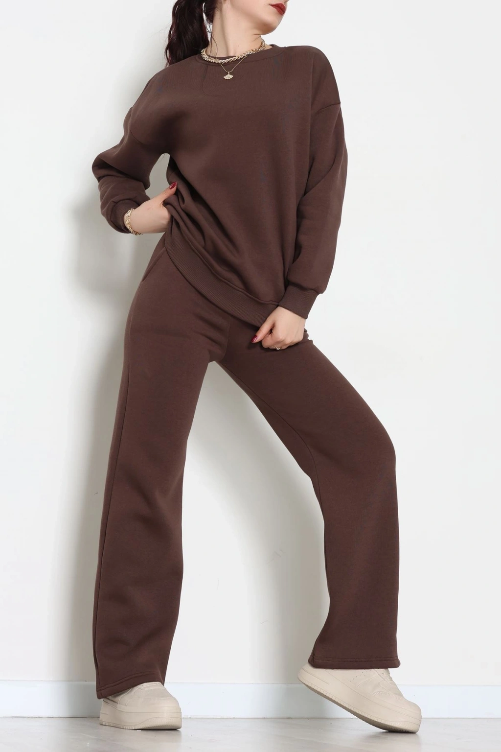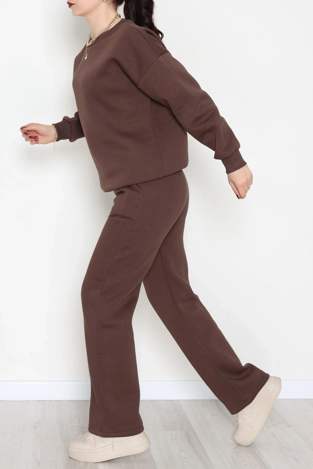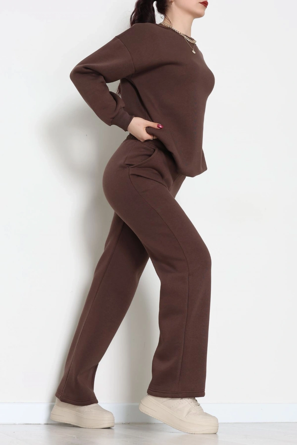 Üç İplik Crop Eşofman Takımı Kahve - 70778.1878.