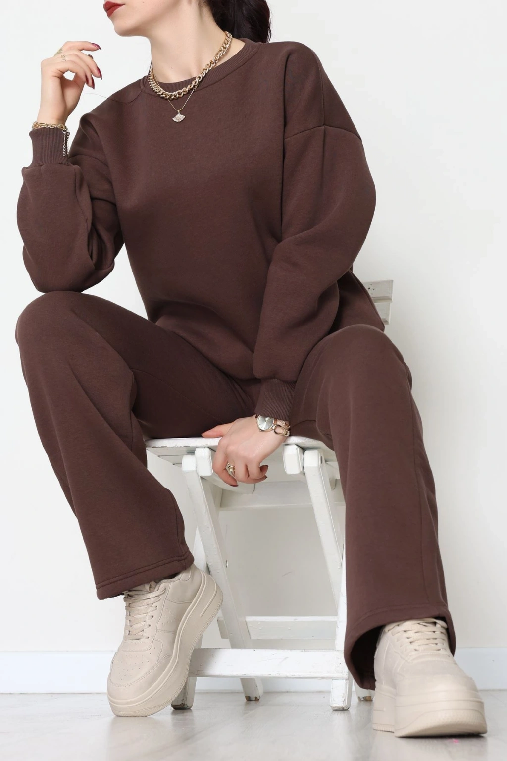 Üç İplik Eşofman Takımı Acıkahve - 70779.1878.
