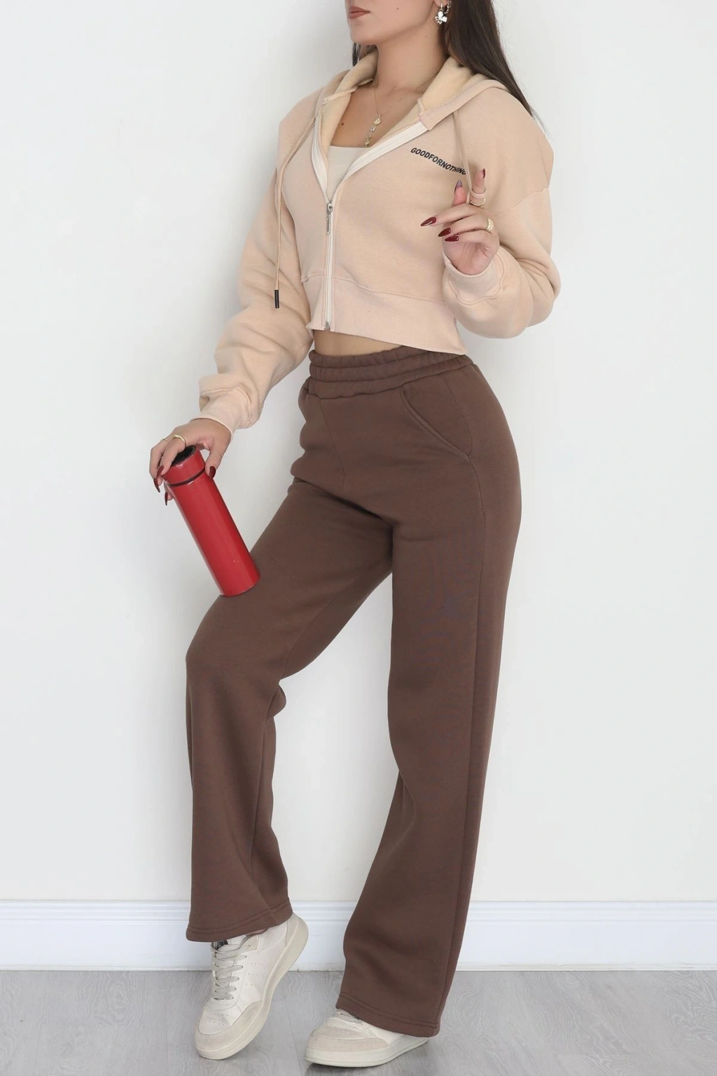 Üç İplik Palazzo Eşofman Altı Açıkkahve - 20970.1878.