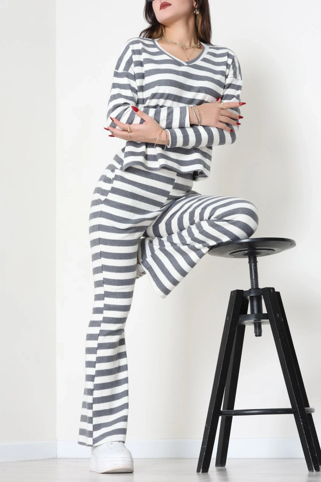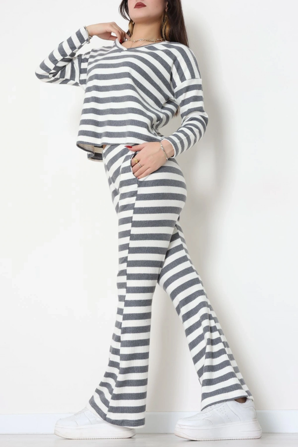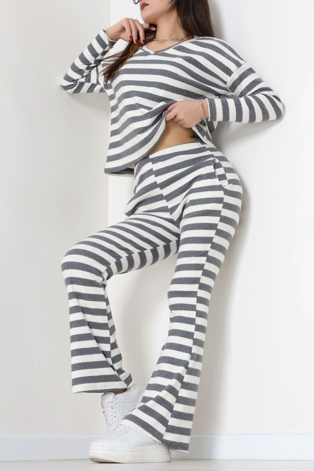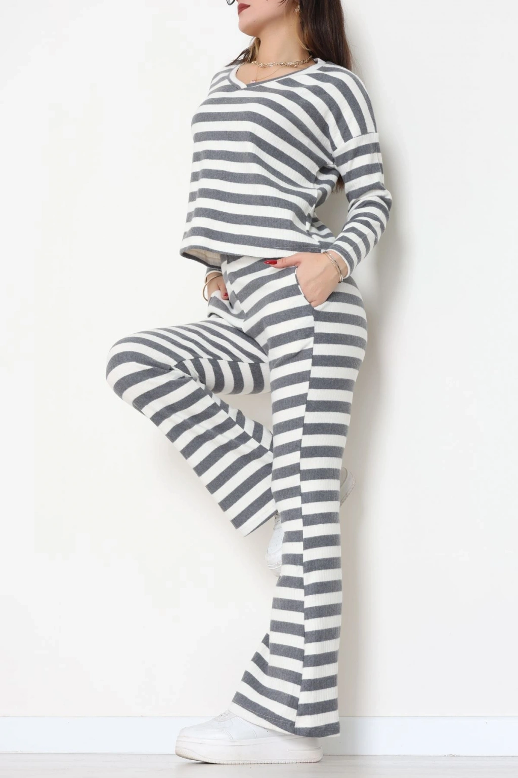 V Yaka Çizgi Takım Füme - 55032.1567.