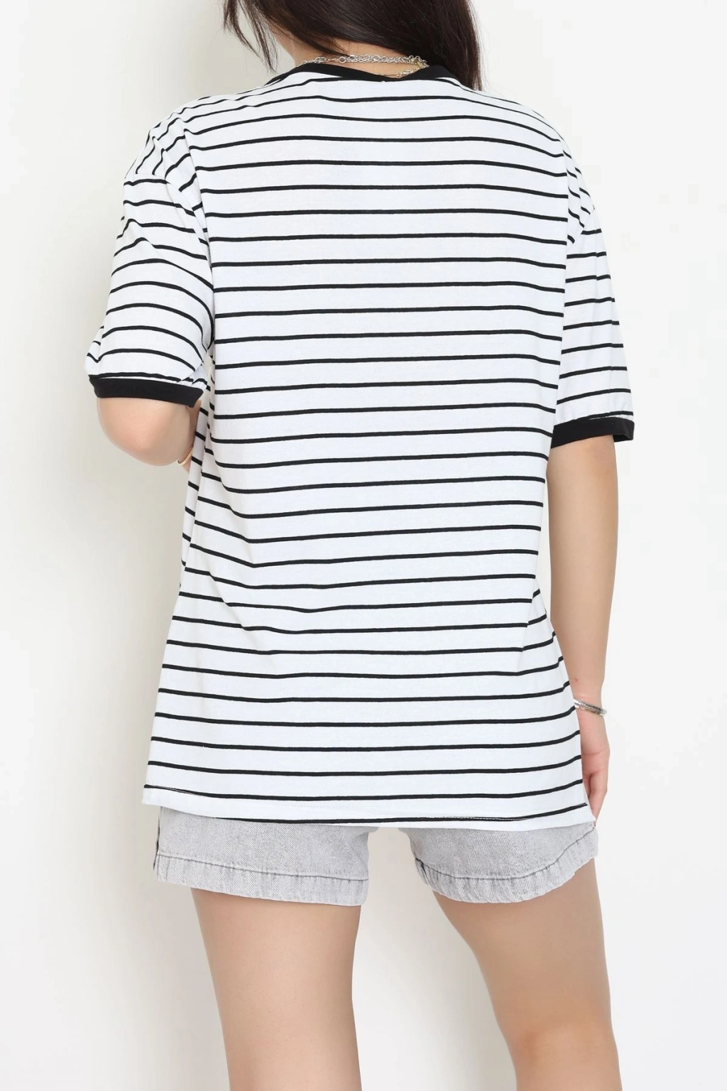 Bisiklet Yaka Çizgili Rejenere Süprem Tişört Beyazsaks - 601.1567.