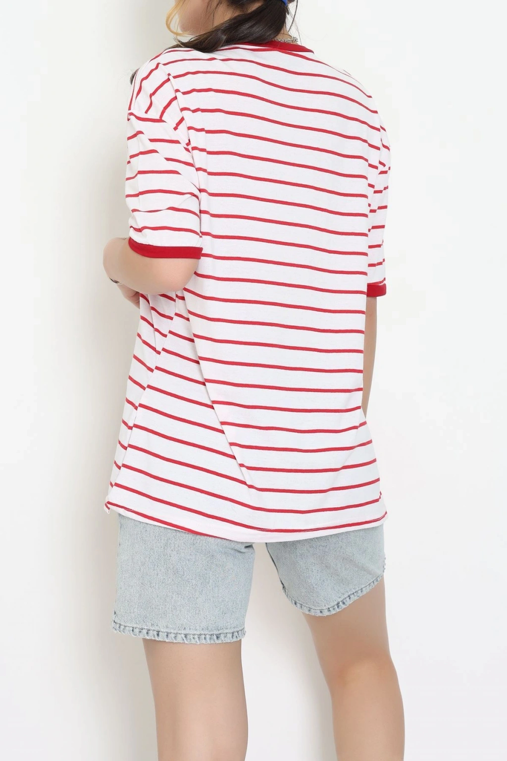 Bisiklet Yaka Çizgili Rejenere Süprem Tişört Ekrukırmızı - 601.1567.