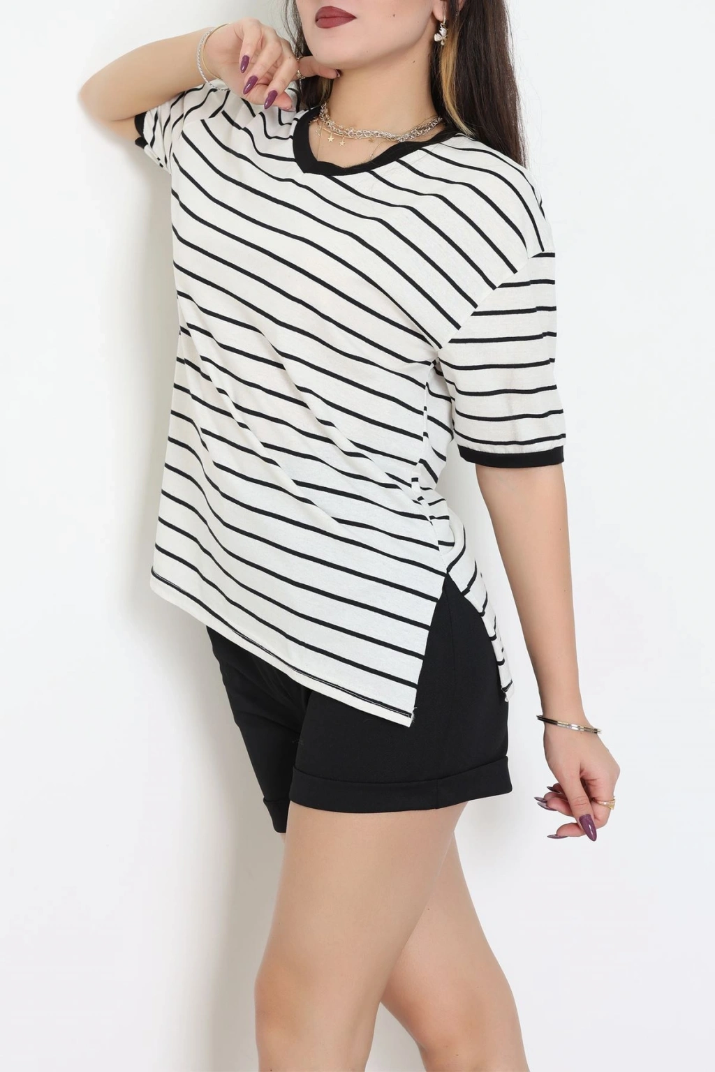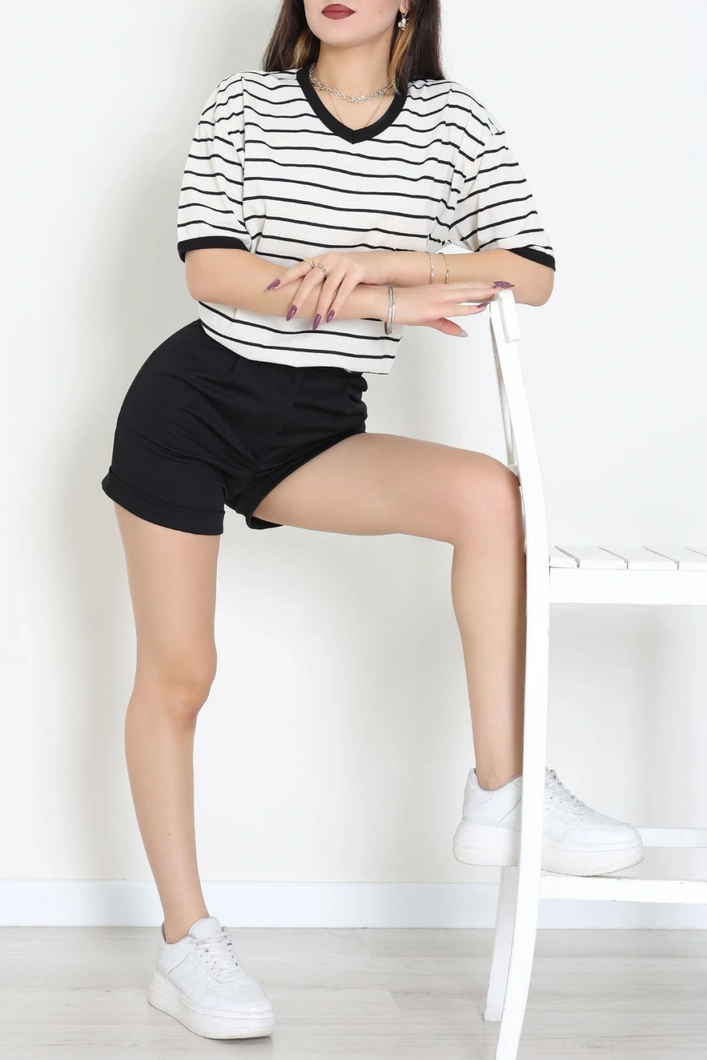V Yaka Çizgili Rejenere Süprem Tişört Ekrusiyah - 602.1567.