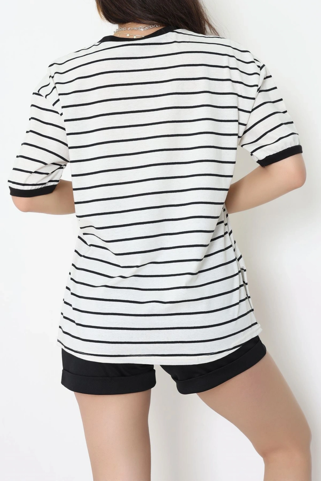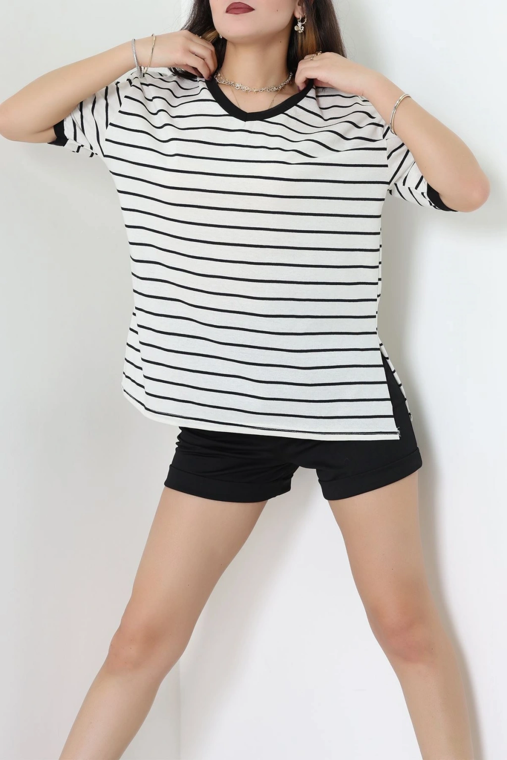 Bisiklet Yaka Çizgili Rejenere Süprem Tişört Beyazsaks - 601.1567.