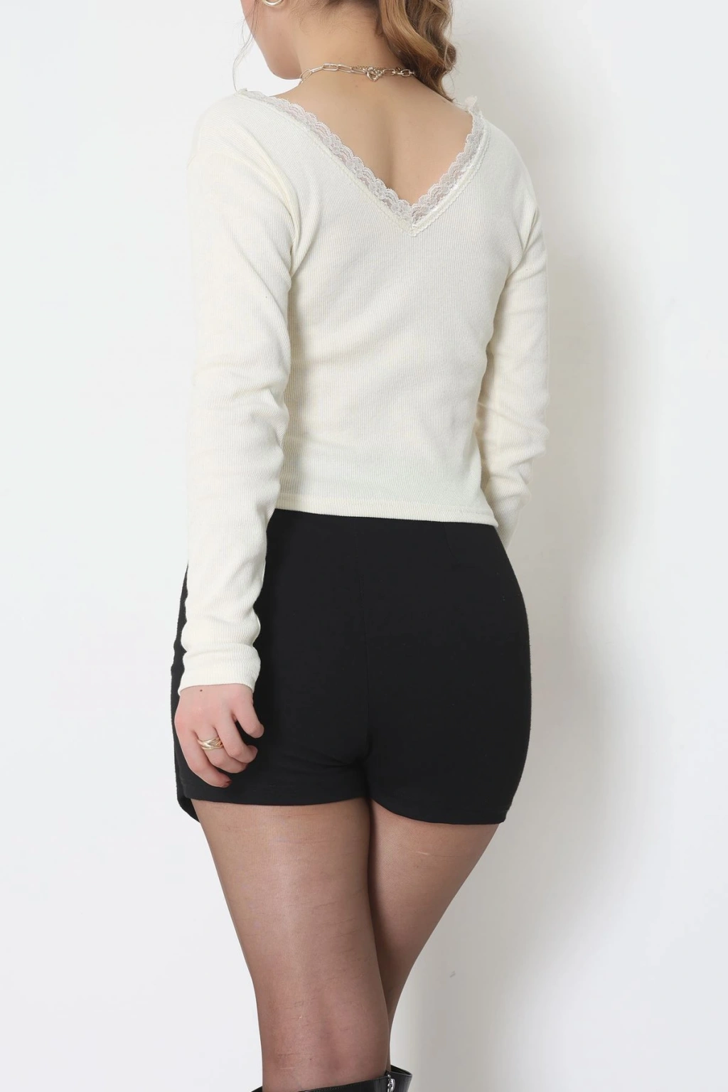 V Yaka Dantelli Kaşkorse Body Krem - 70788.599.