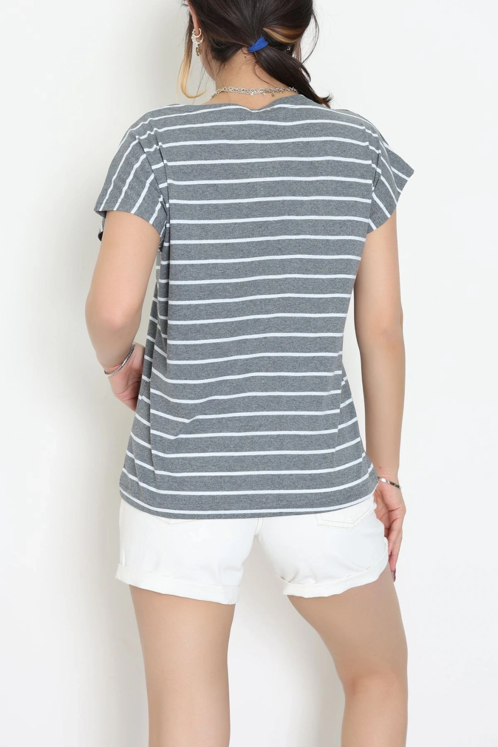 Bisiklet Yaka Çizgili Rejenere Süprem Tişört Antrasitbeyaz - 601.1567.