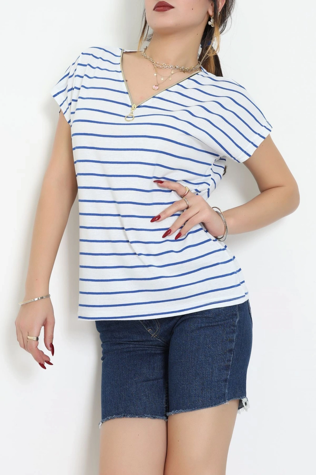 V Yaka Fermuarlı Rejenere Süprem Tişört Beyazsaks - 600.1567.