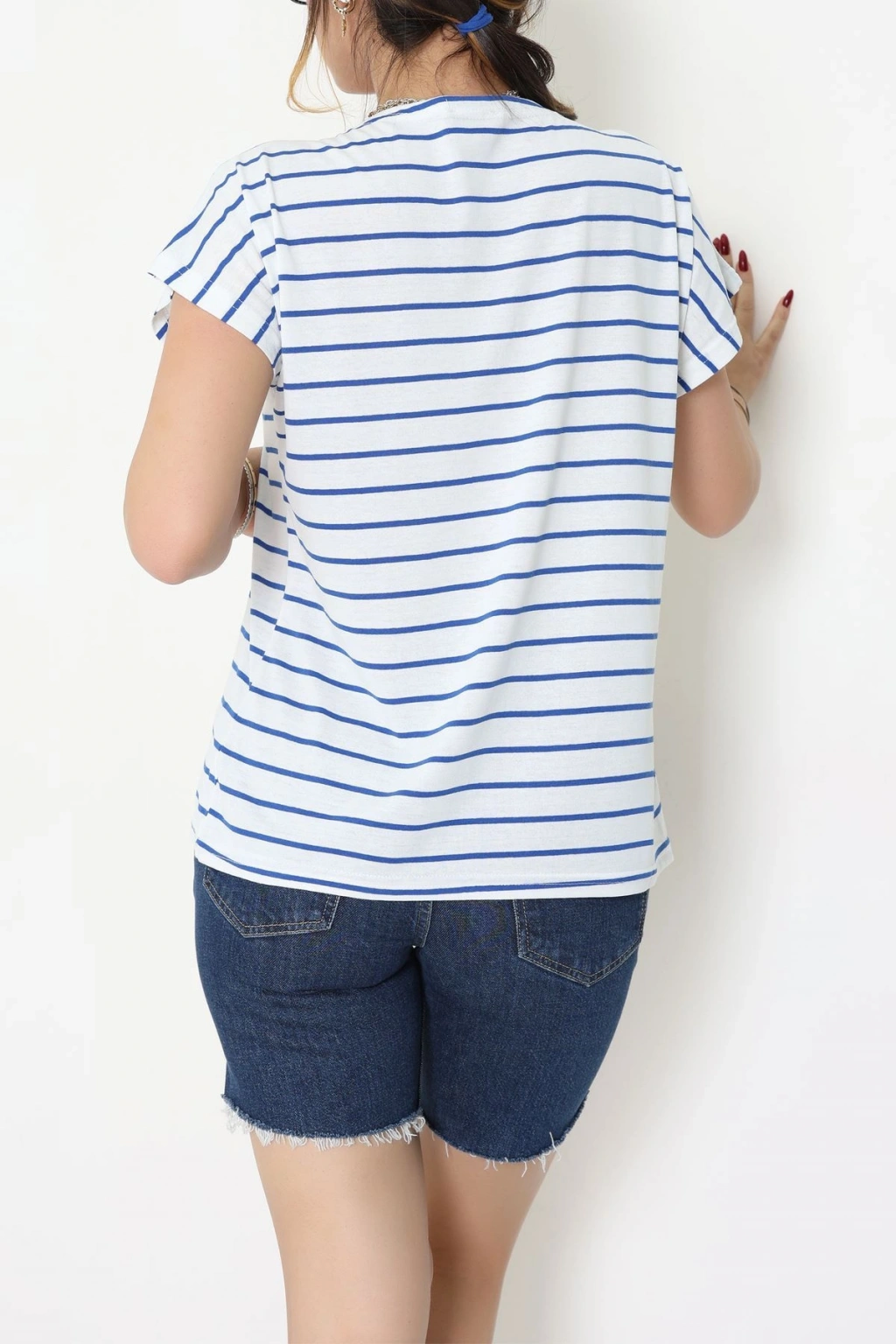 Bisiklet Yaka Çizgili Rejenere Süprem Tişört Lilabeyaz - 601.1567.