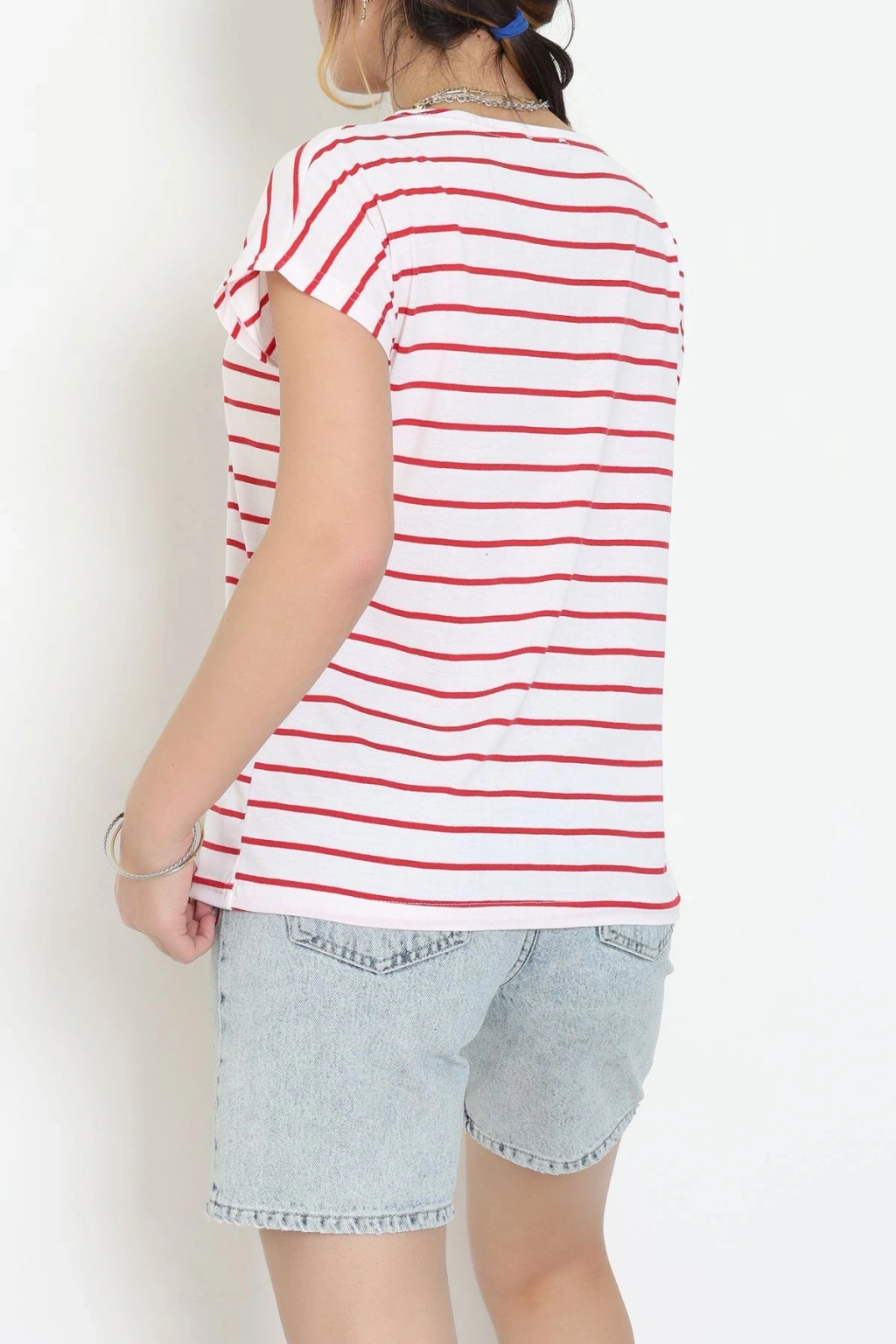 Bisiklet Yaka Çizgili Rejenere Süprem Tişört Ekrukırmızı - 601.1567.