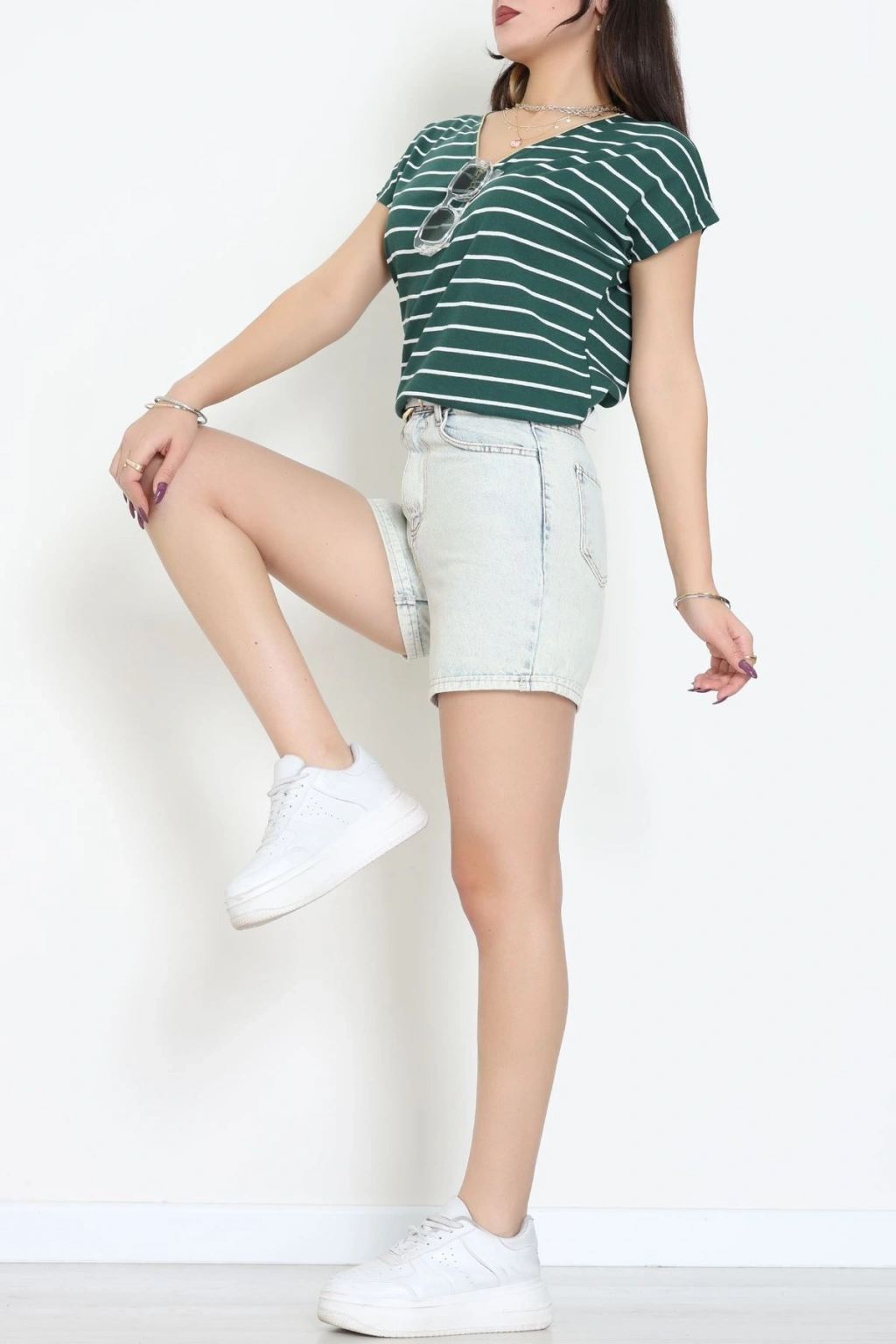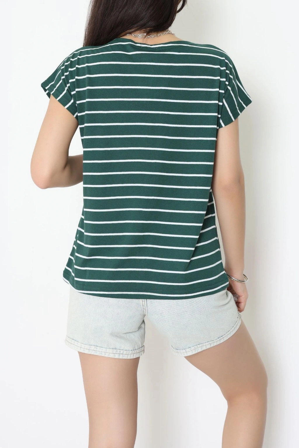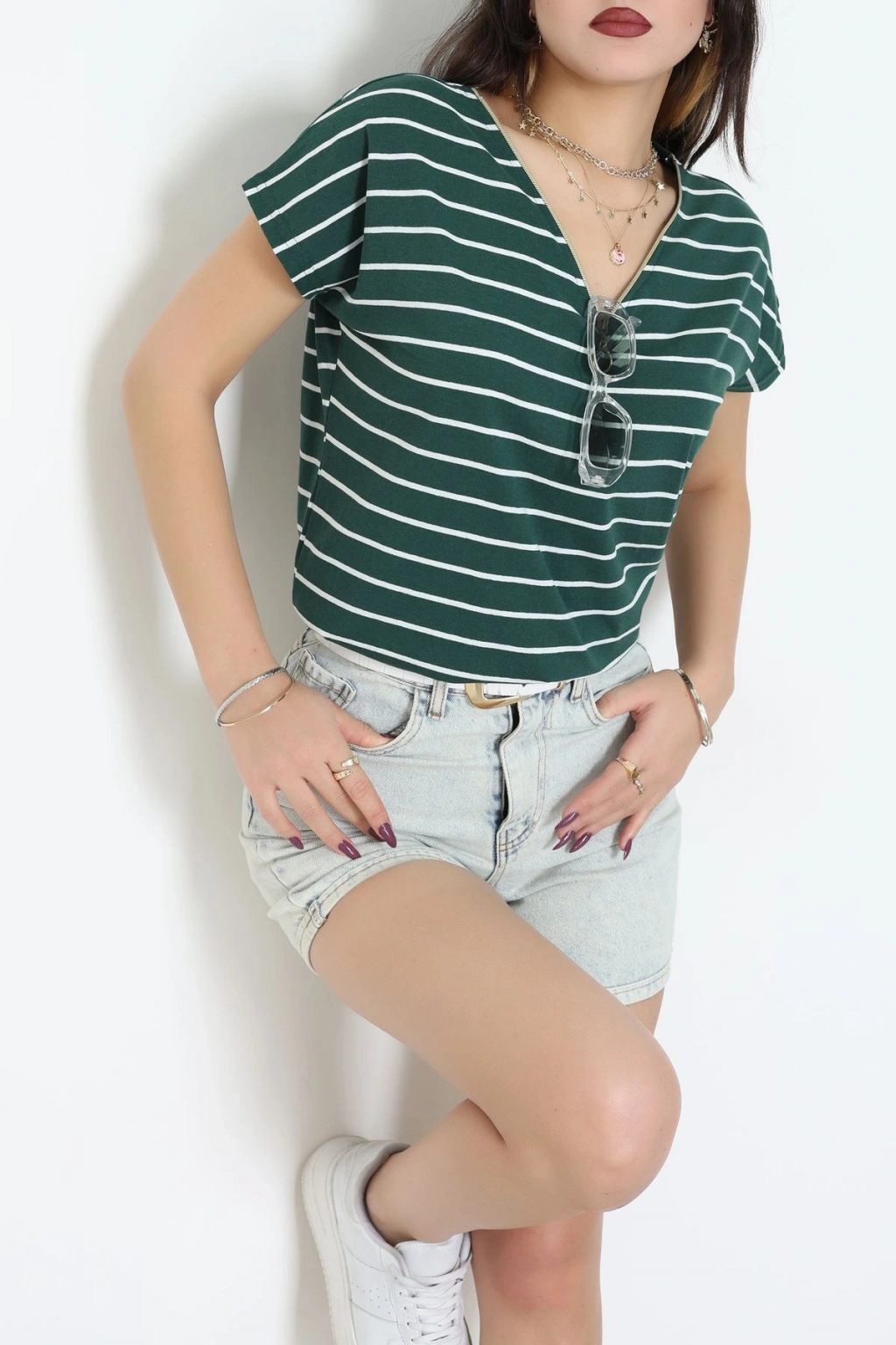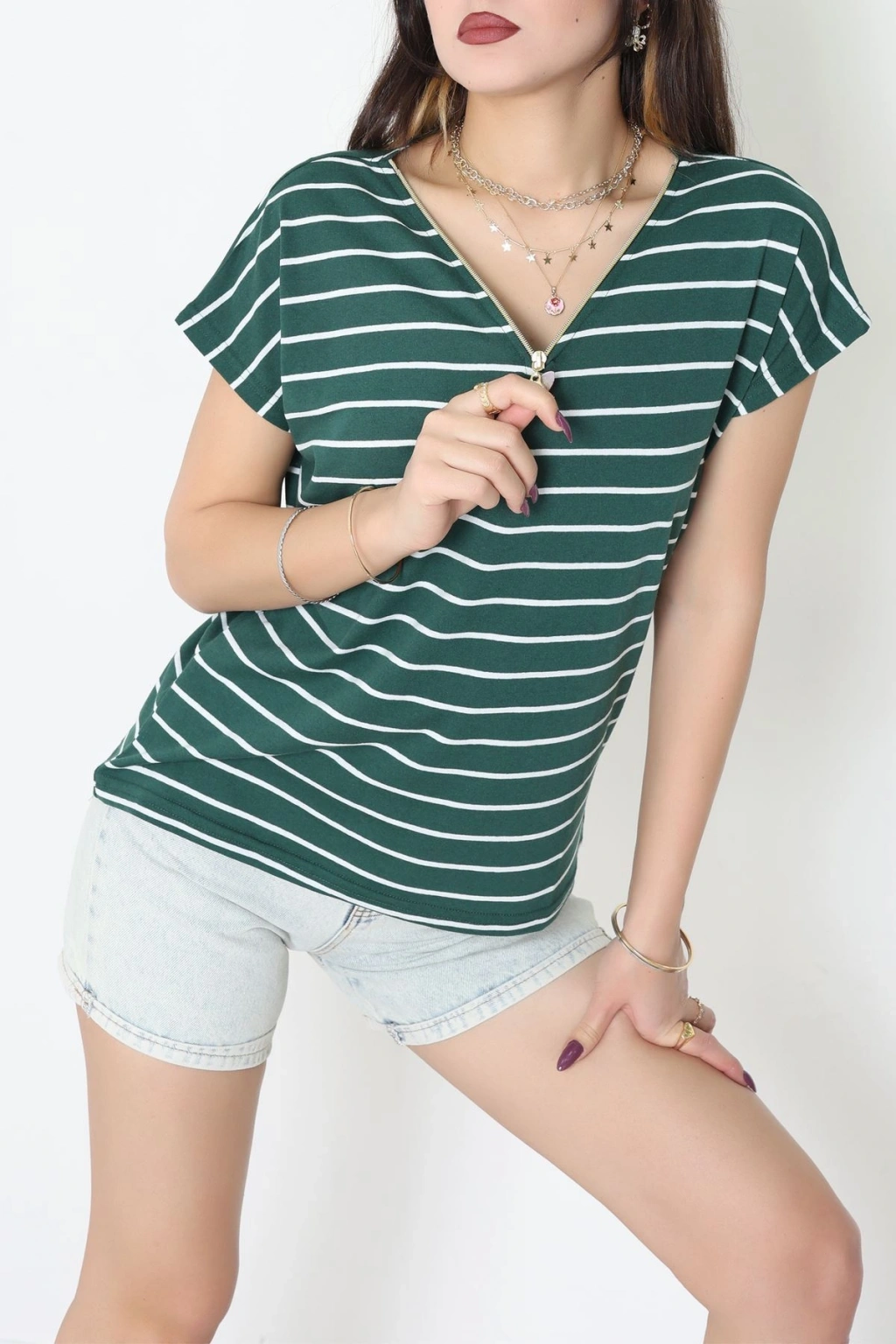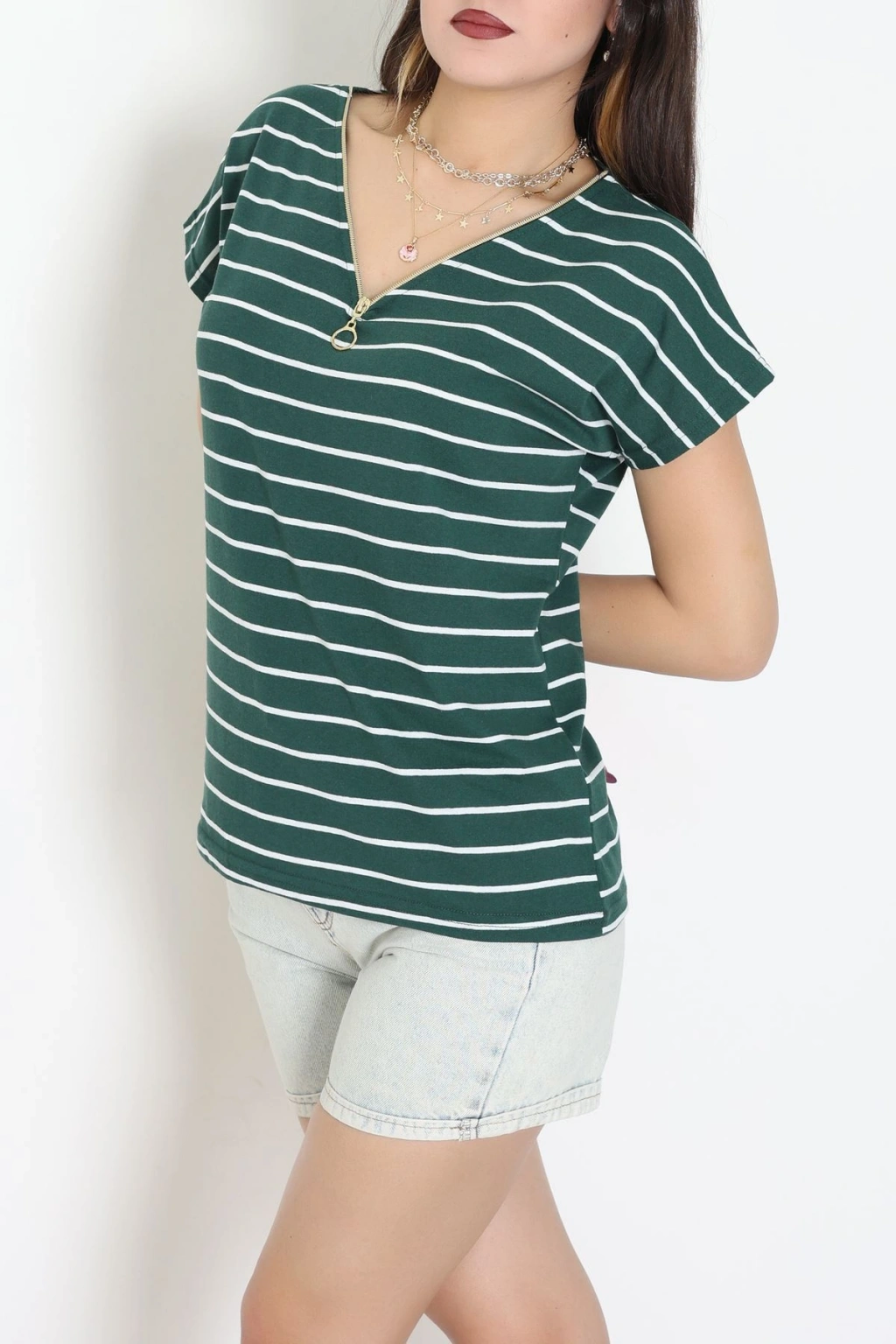 V Yaka Fermuarlı Rejenere Süprem Tişört Zümrütbeyaz - 600.1567.