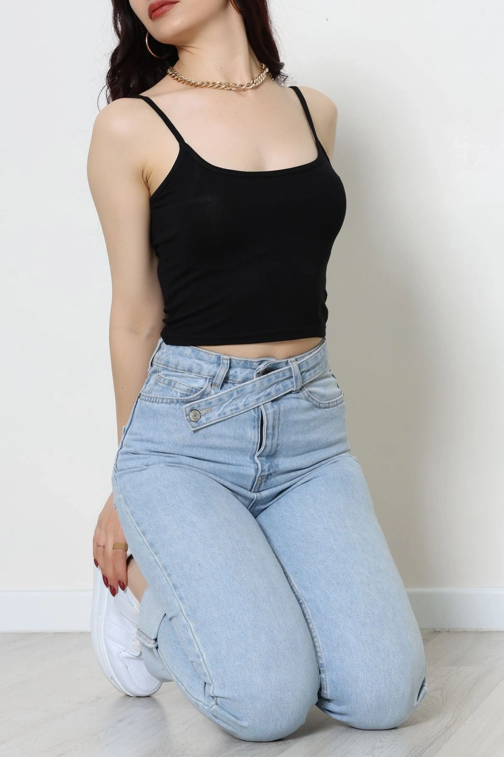 Viskon İp Askılı Çıtçıtlı Atlet Siyah - 3500.2127.