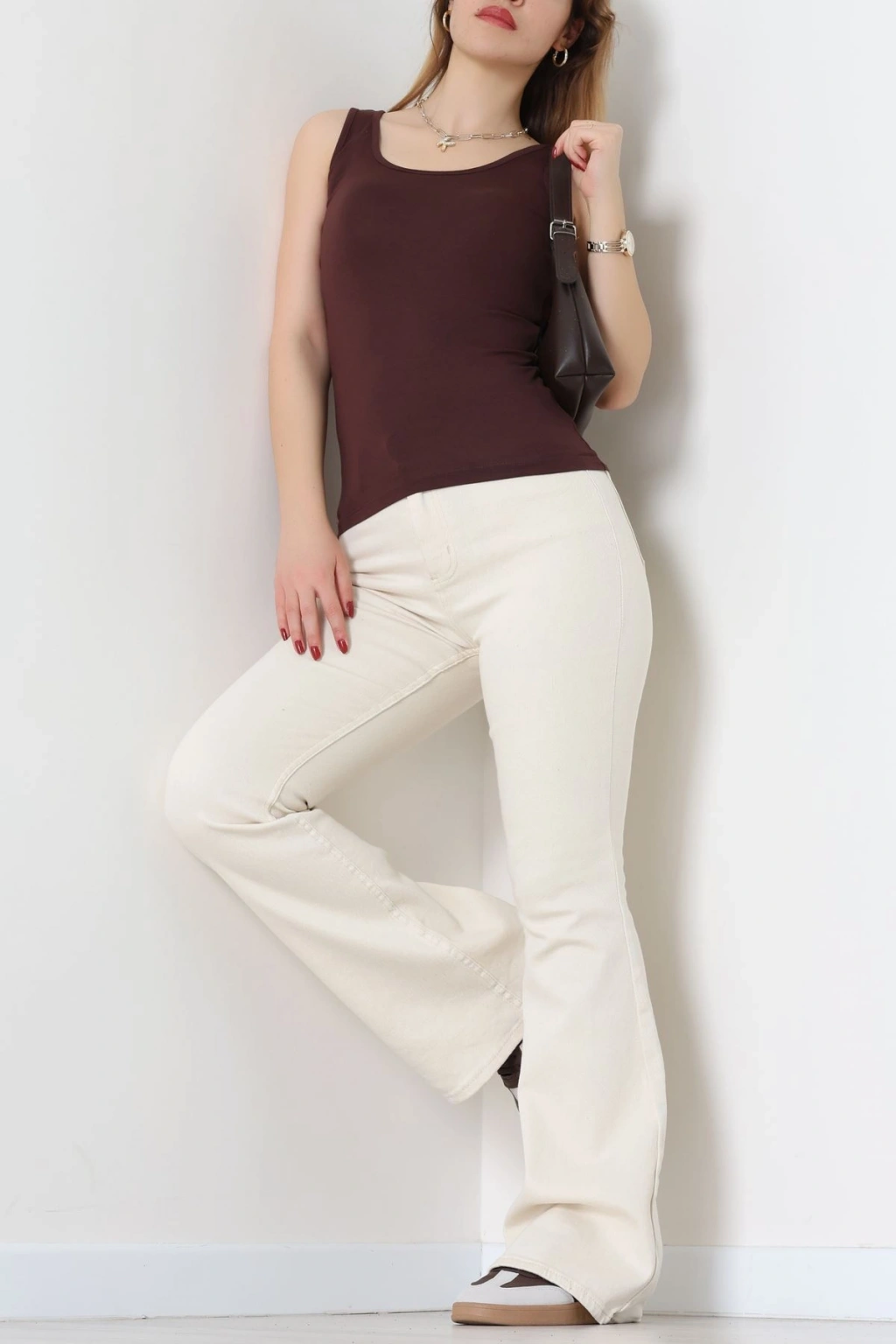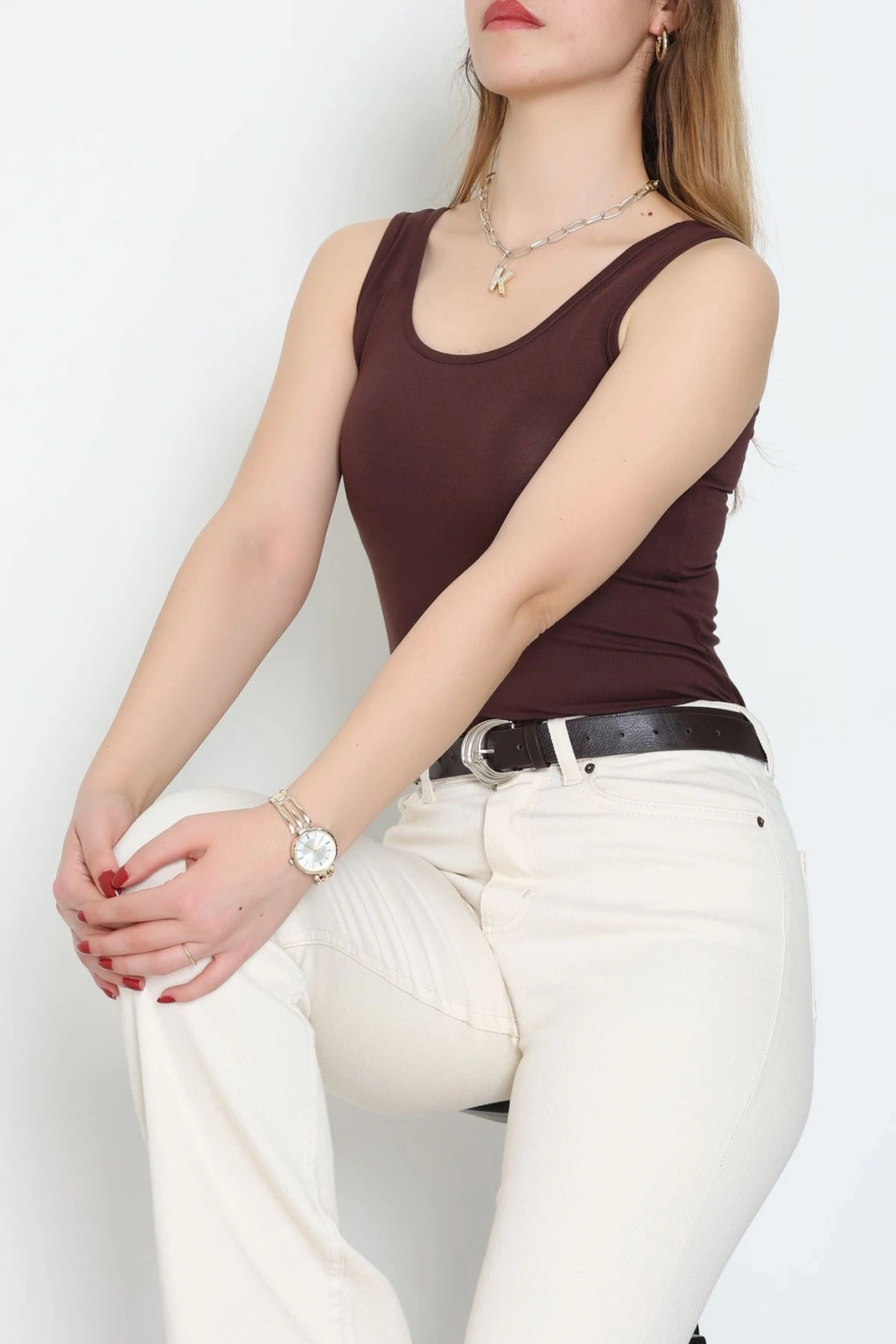 Viskon İp Asklı Atlet Kahverengi - 7000.2127.