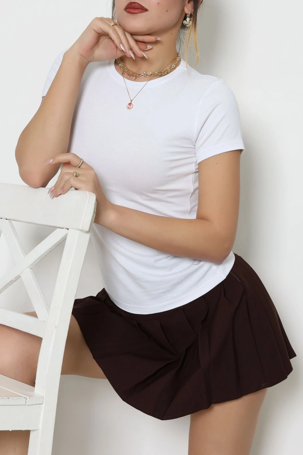 Dantel Detaylı Madonna Yaka Viskon Body Kahve - 5506.599.