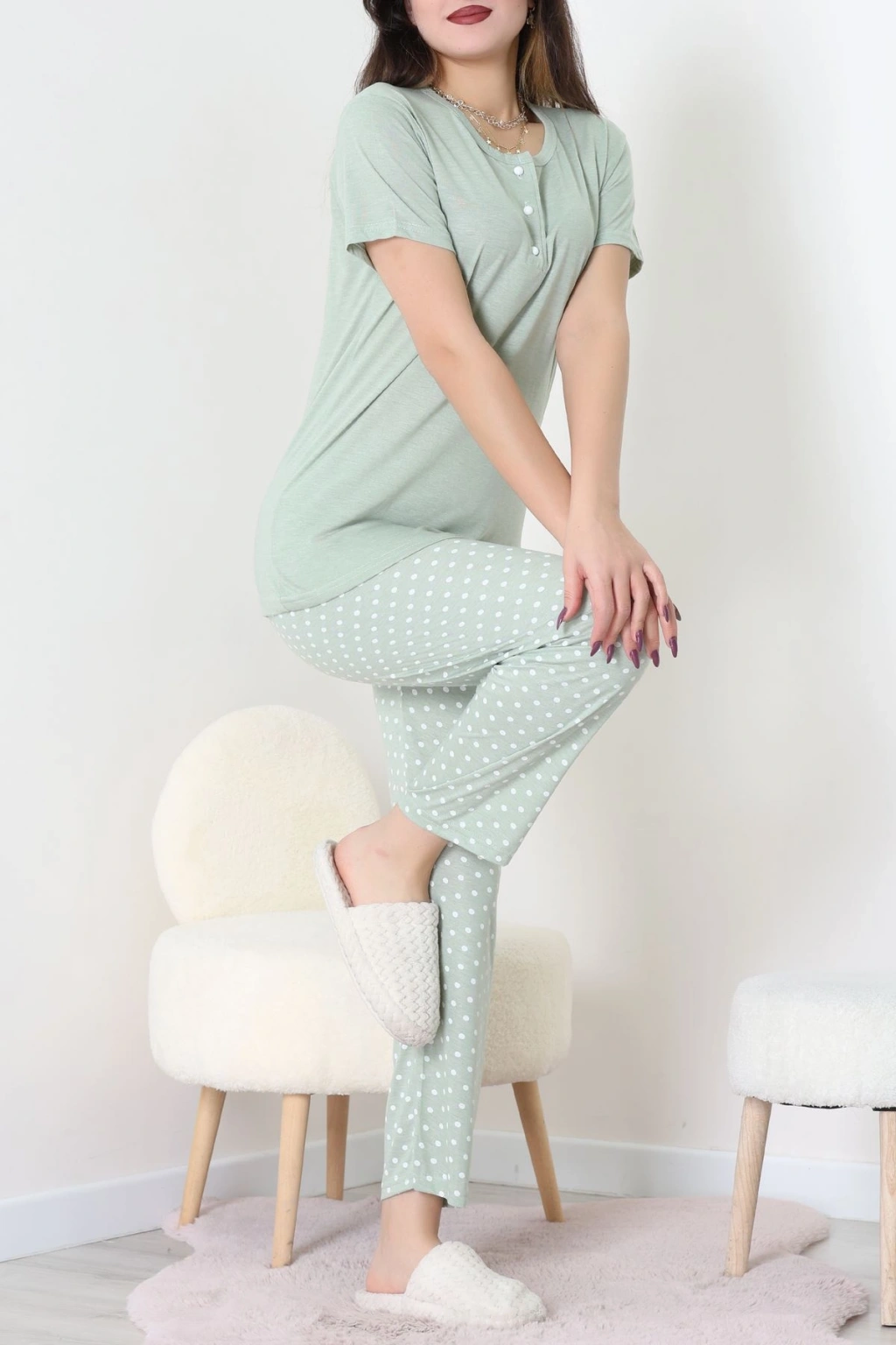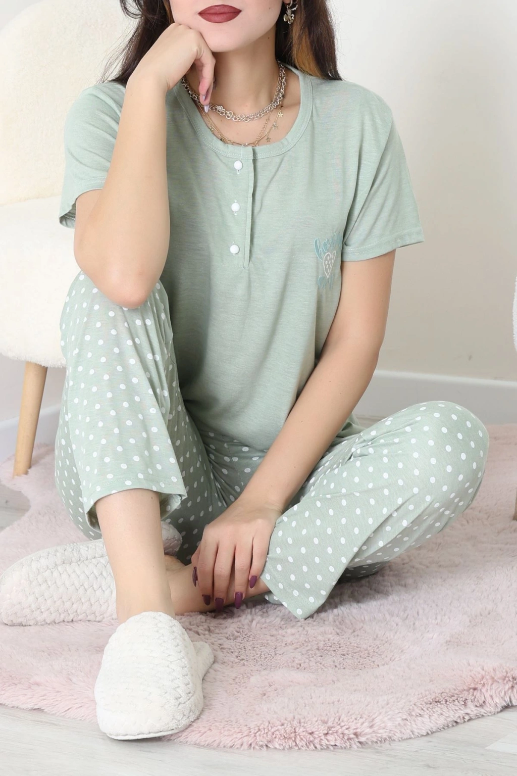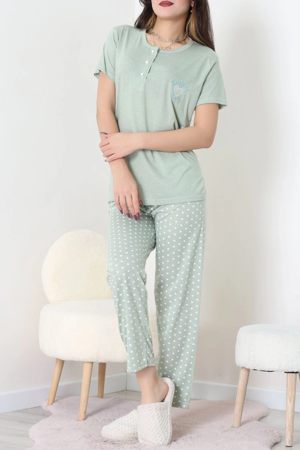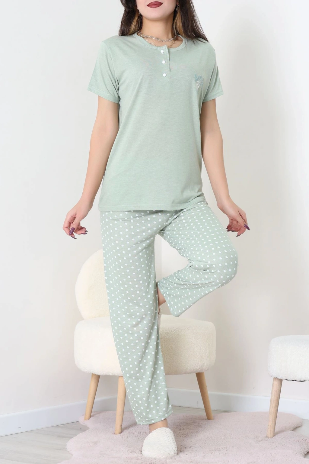 Viskon Kumaş Kısa Kol Pijama Takımı Mint - 31859.2123.