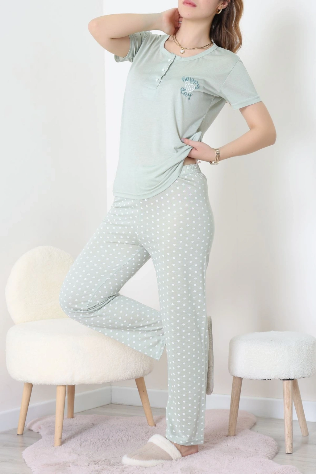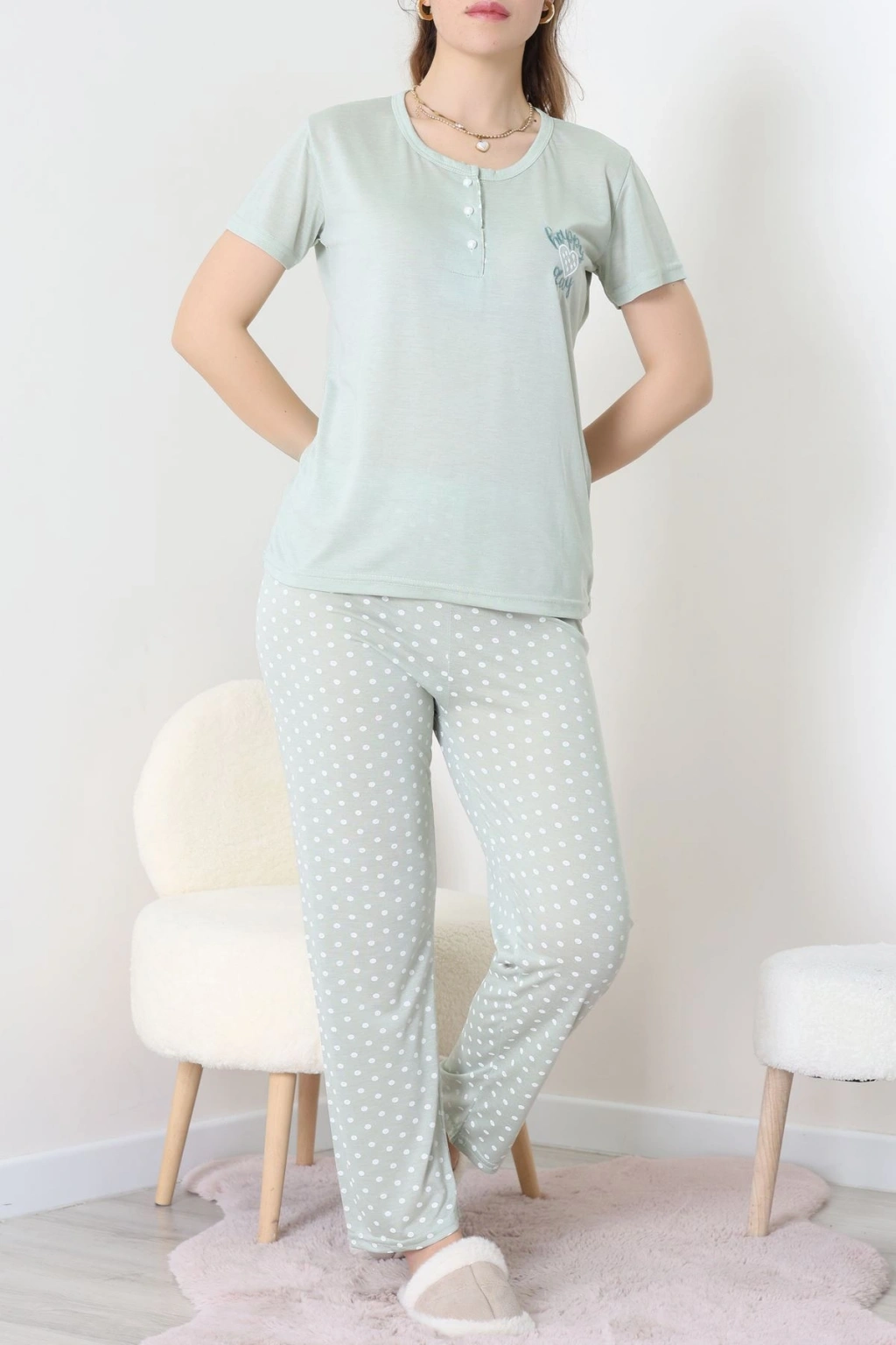 Viskon Kumaş Kısa Kol Pijama Takımı Mint1 - 31859.2123.